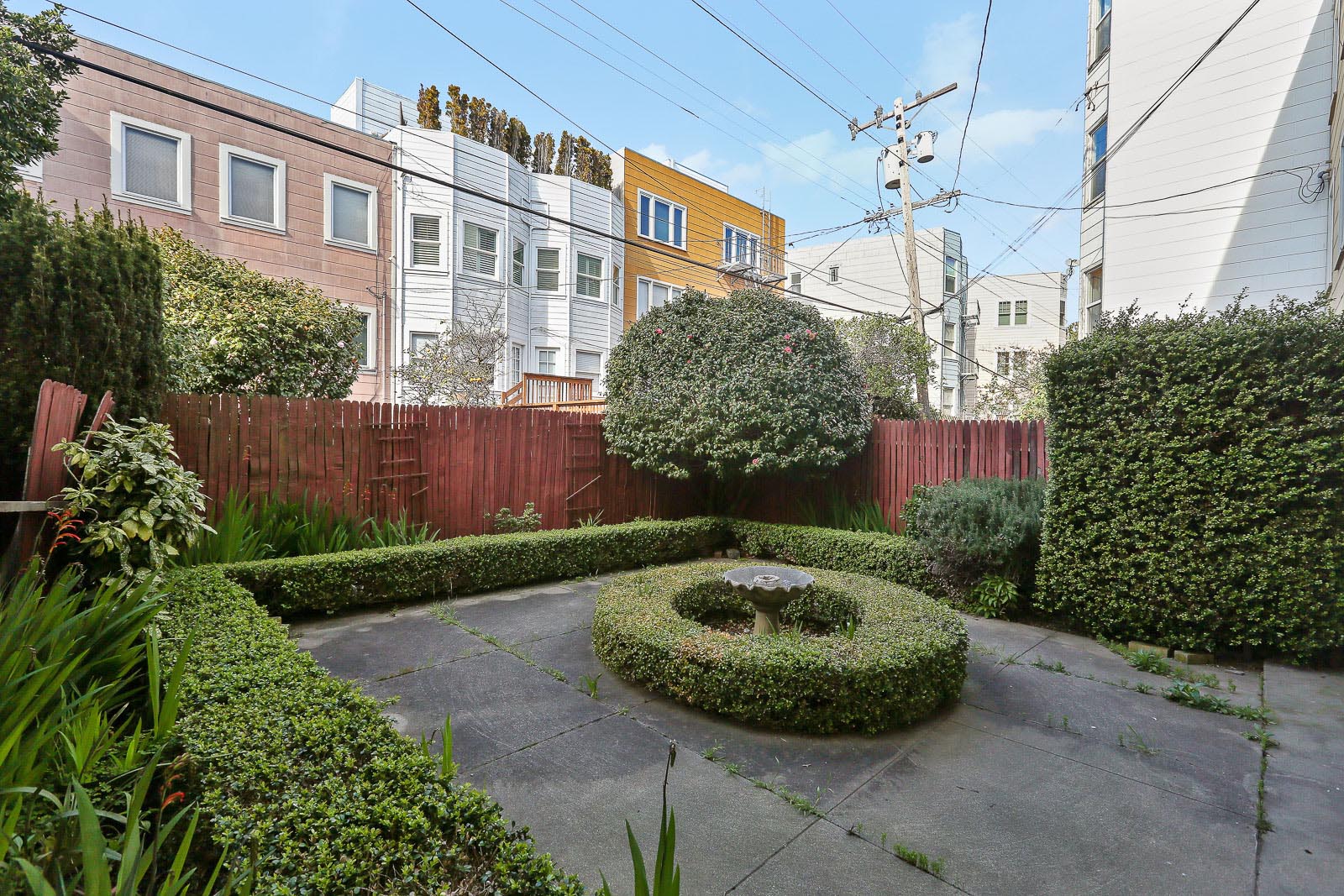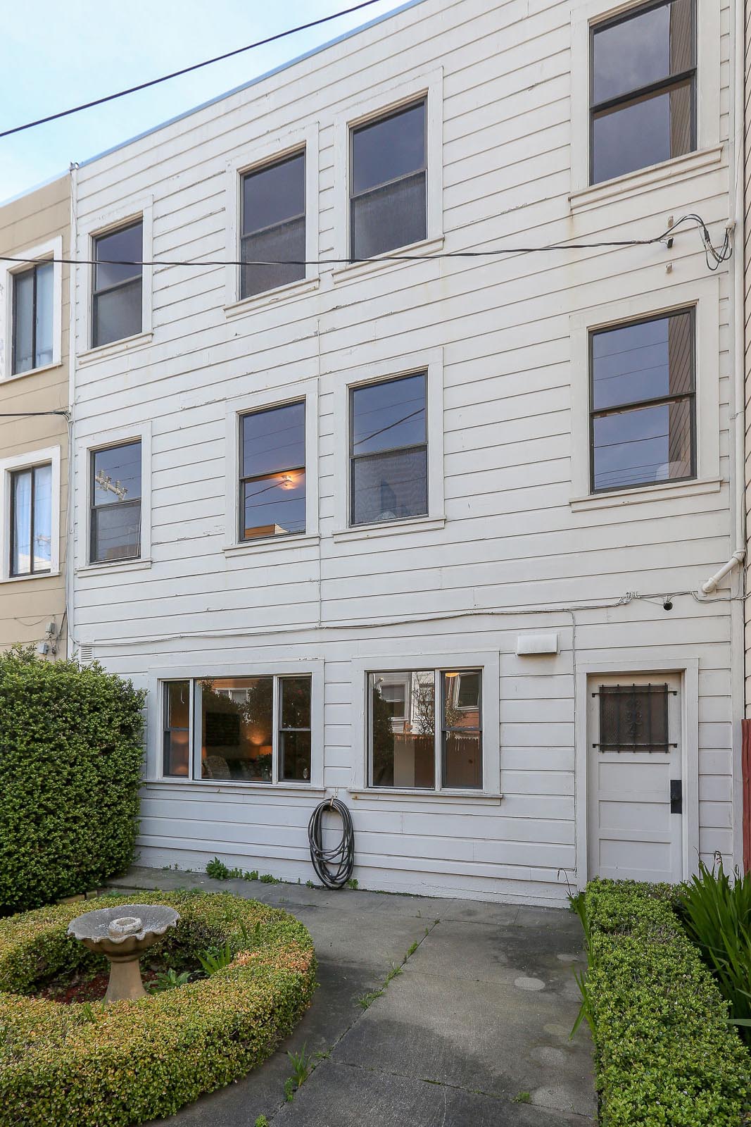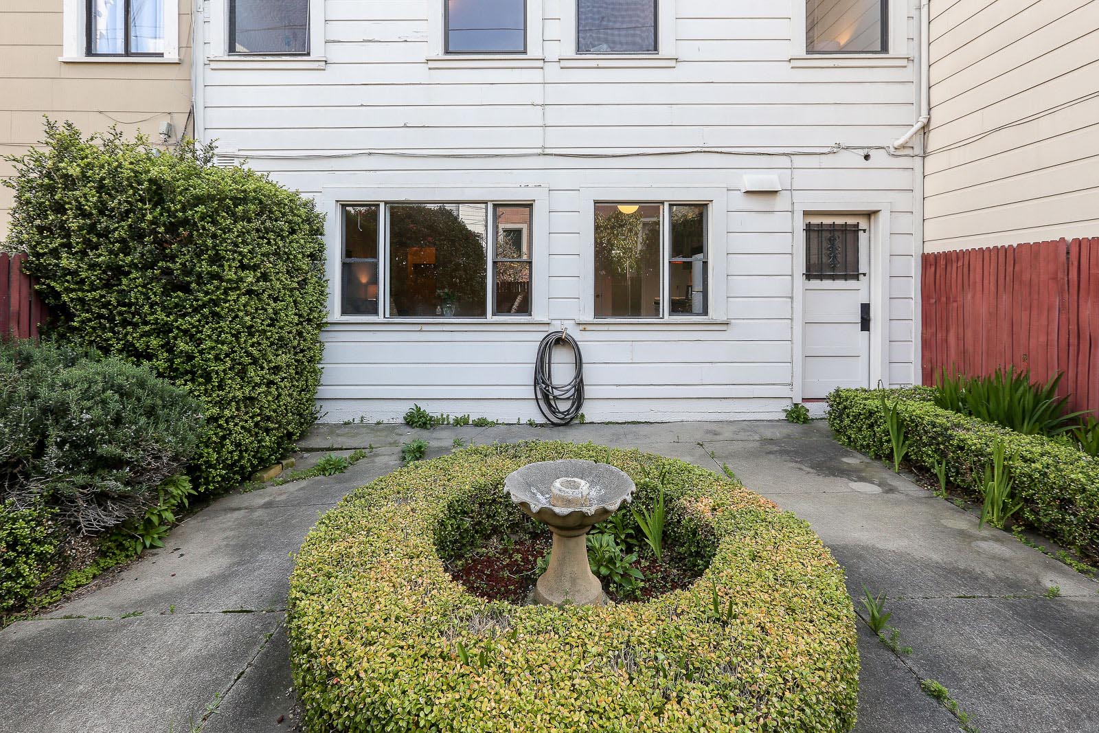 3537 Fillmore Street has an elegant front entry gate forged of wrought iron;and a welcoming entry area. Additionally, the property has a three-car garage, a laundry area, storage, an interior stairwell and an elevator, and a charming garden with a patio. The front windows feature delicate wrought iron garden balconies, adding to the overall charm of the property.