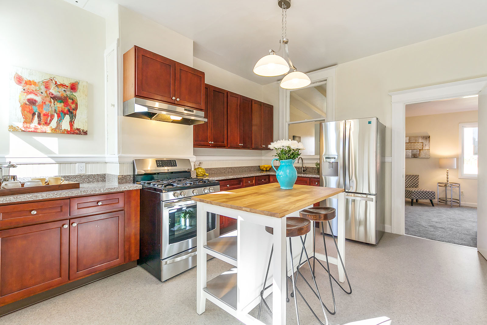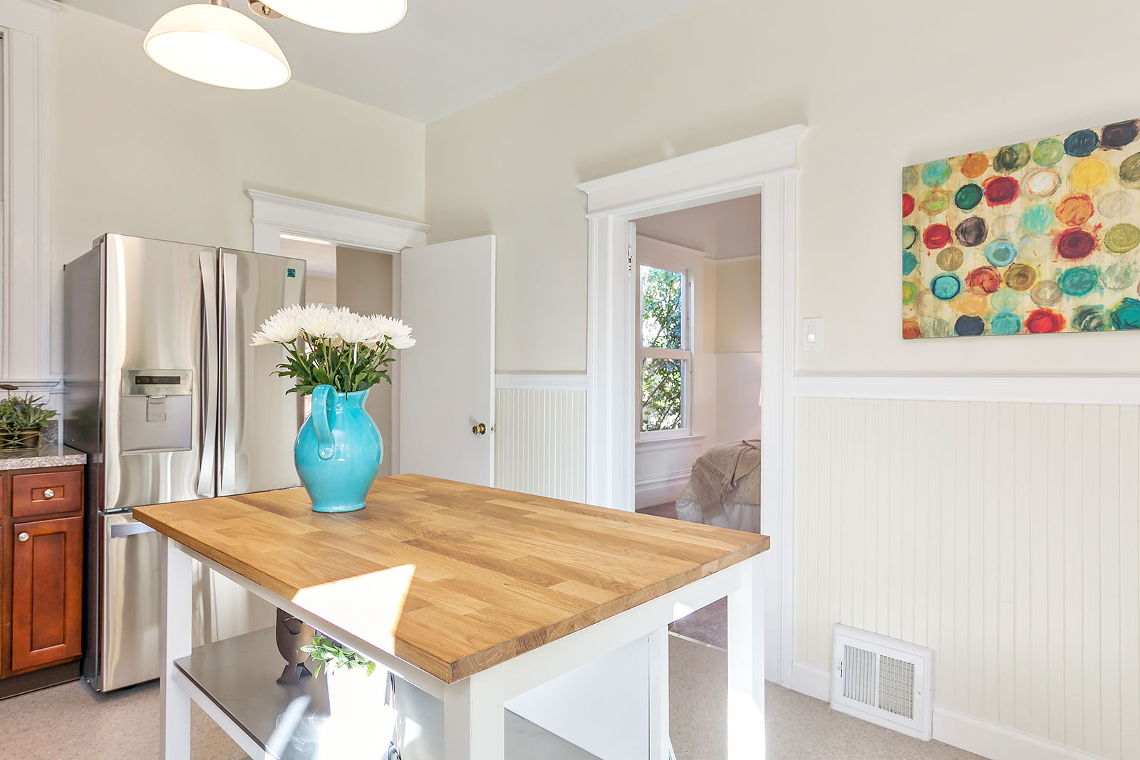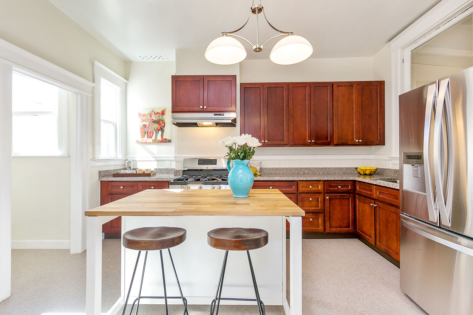 Upon entering, the bright and inviting living room features a fine decorative fireplace and beautiful bay windows looking out upon Richland Avenue. The dining room makes way for casual or formal entertaining, and the kitchen boasts new stainless steel appliances, rich wooden cabinetry, time-period wainscoting, and a pantry. Completing the main living level are three generously sized bedrooms, a full bath, and a spacious laundry room - complete with a wash-sink. Off the laundry room, an exterior stairway leads down to a large patio and private fenced garden. At the lower level, you will find an expansive lounge romper room with lots of versatility and added storage. There is a single car garage accessed from the street.