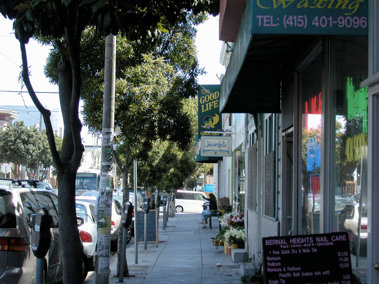 MUNI bus service out of Bernal toward downtown is easy to find on Mission street, which delineates the western edge of Bernal. You are also walking distance from the BART at 24th and Mission.