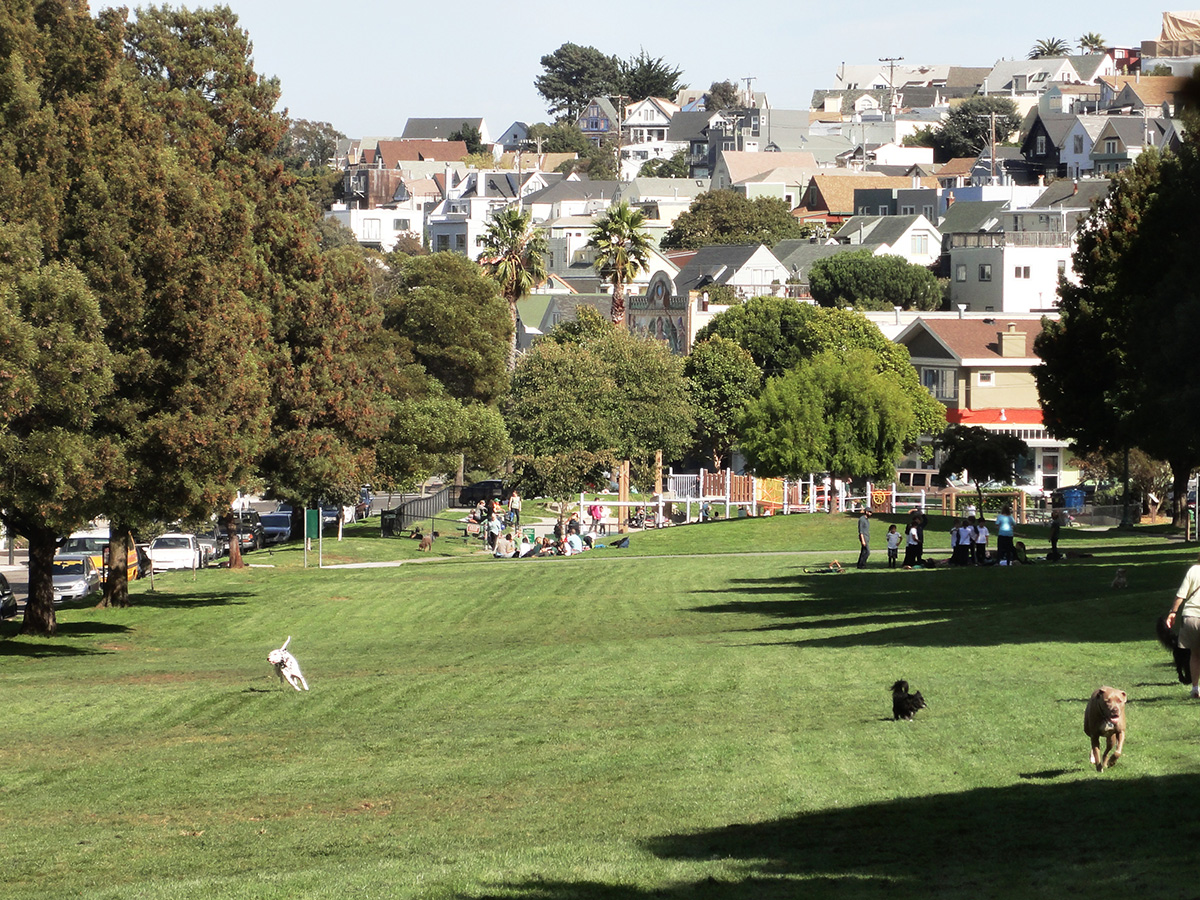 Home to two great parks, this community is beloved by dog owners and hikers alike. The largest park, called Bernal Heights, occupies the crest of the hill and is a breezy respite for area residents who enjoy fresh air and pristine views of downtown San Francisco and the bay. The second, Precita Park resides at the bottom of Bernal and is a favorite for young children and families, who find the playground and expansive lawns to be a perfect afternoon setting.