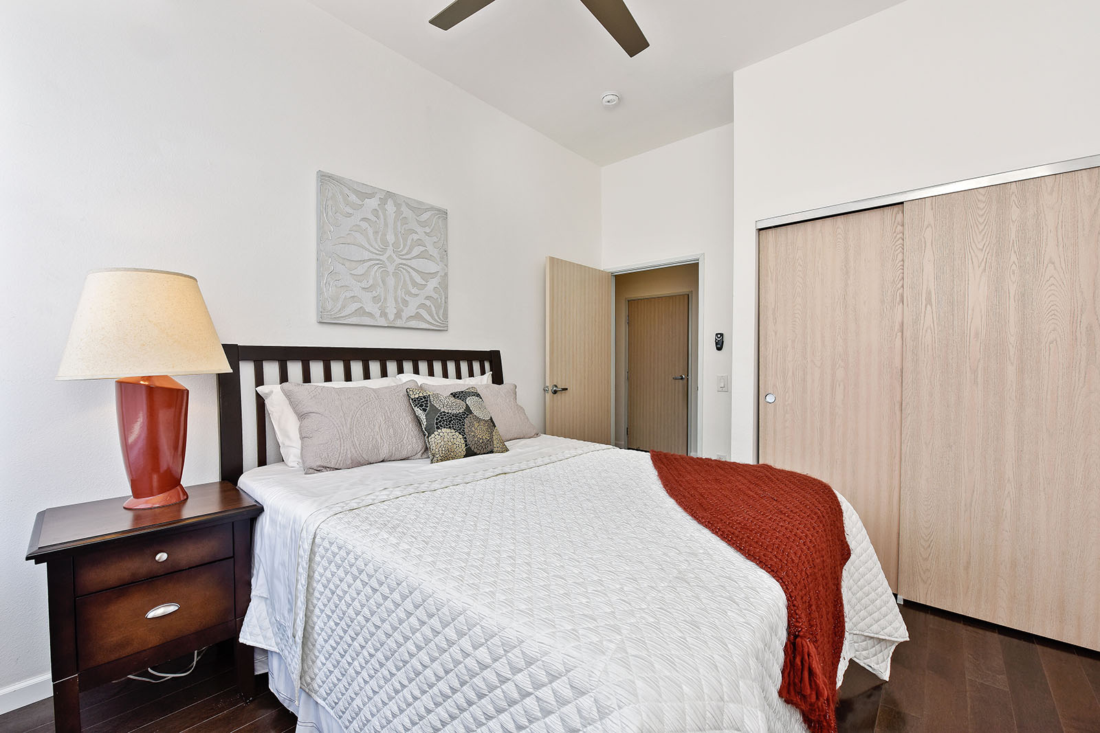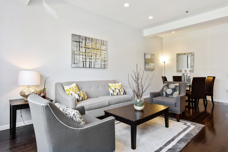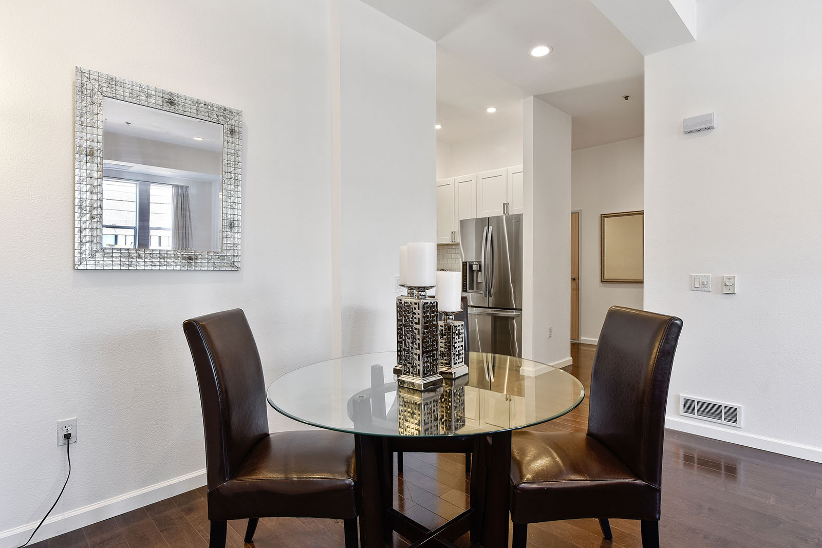 This stylish condo offers refined modern living in the sought-after trendy neighborhood of SOMA near Hayes Valley, San Francisco. The newly modernized interior boasts vaulted ceilings, rich espresso toned floors, and striking kitchen and bath amenities.