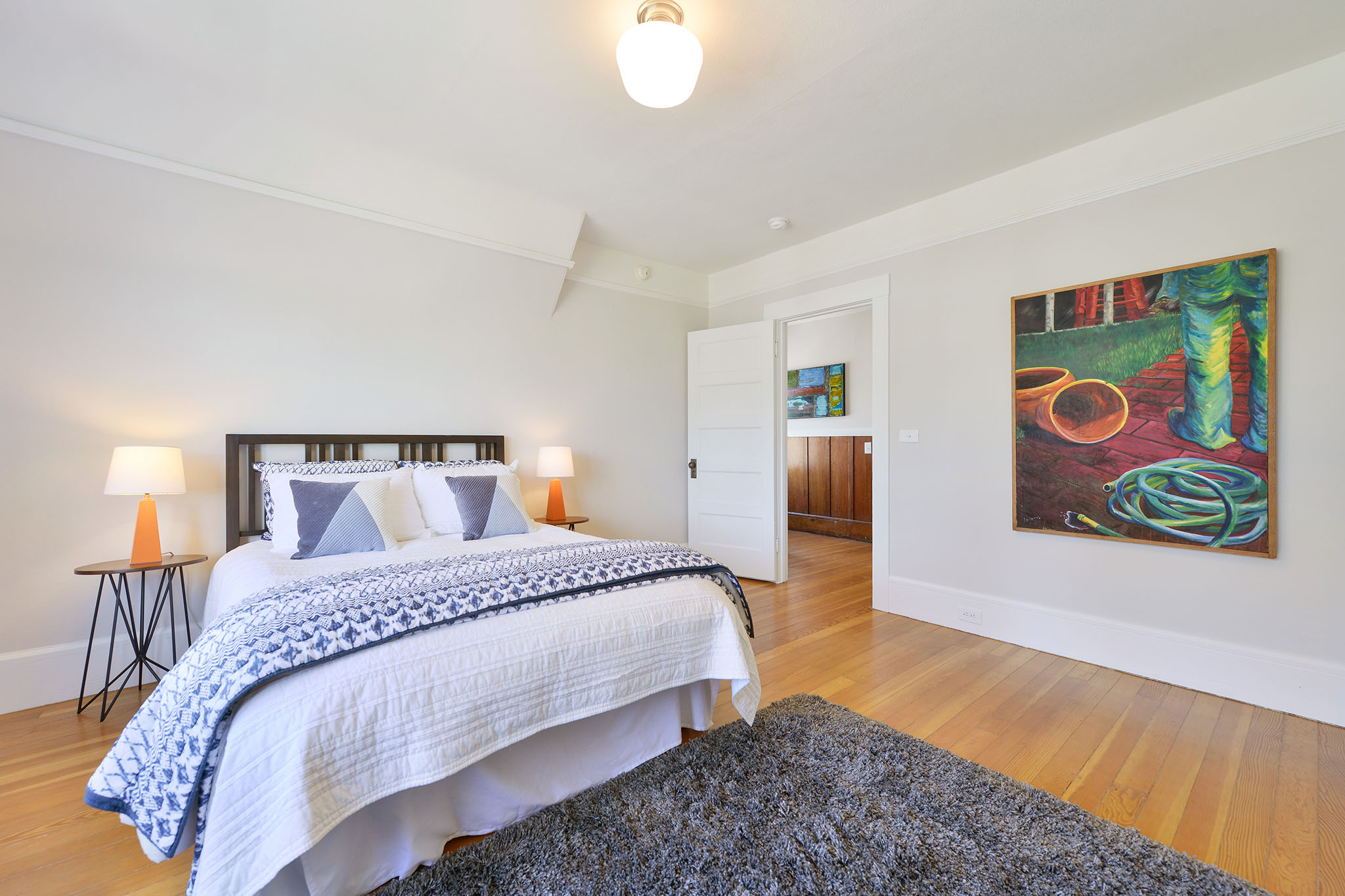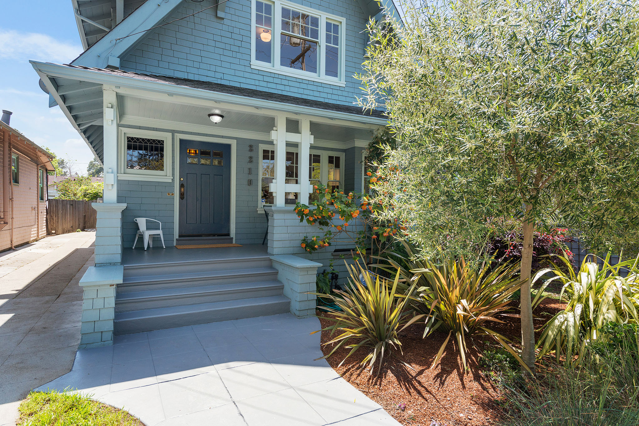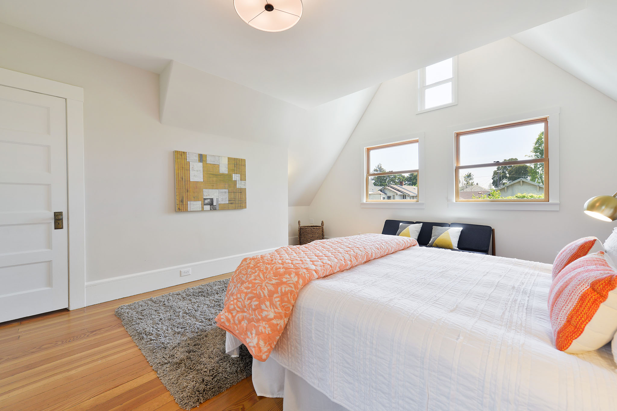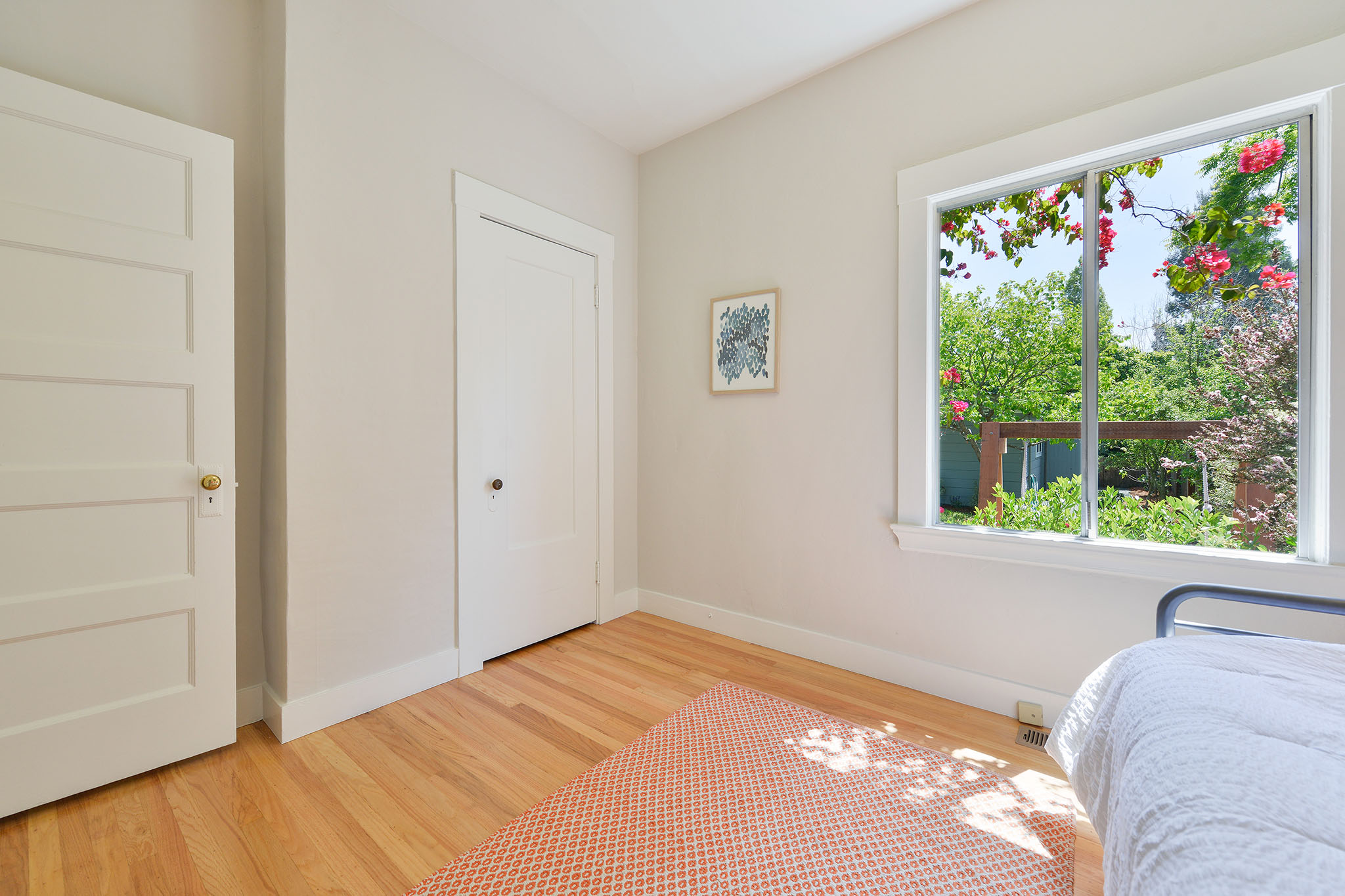 Up the artisan staircase, on the 2nd;floor, are three light-filled bedrooms. The south facing master bedroom has a vaulted ceiling and tree views. The middle bedroom has a wonderful closet complete with a kids special “magic zone.”