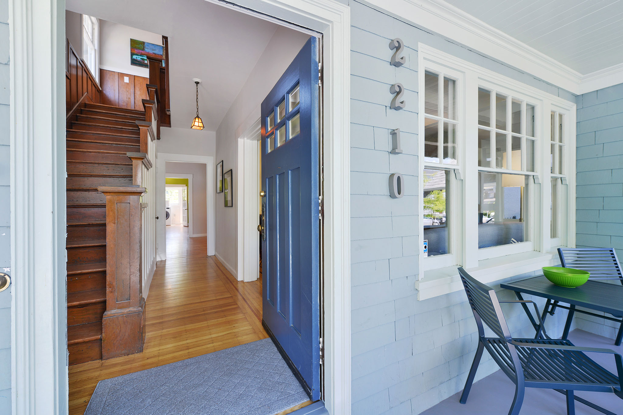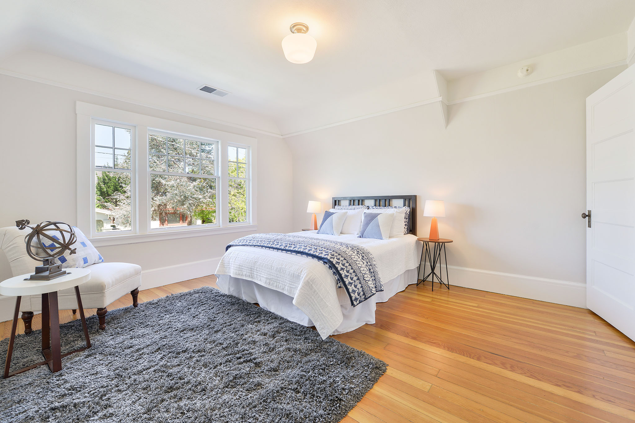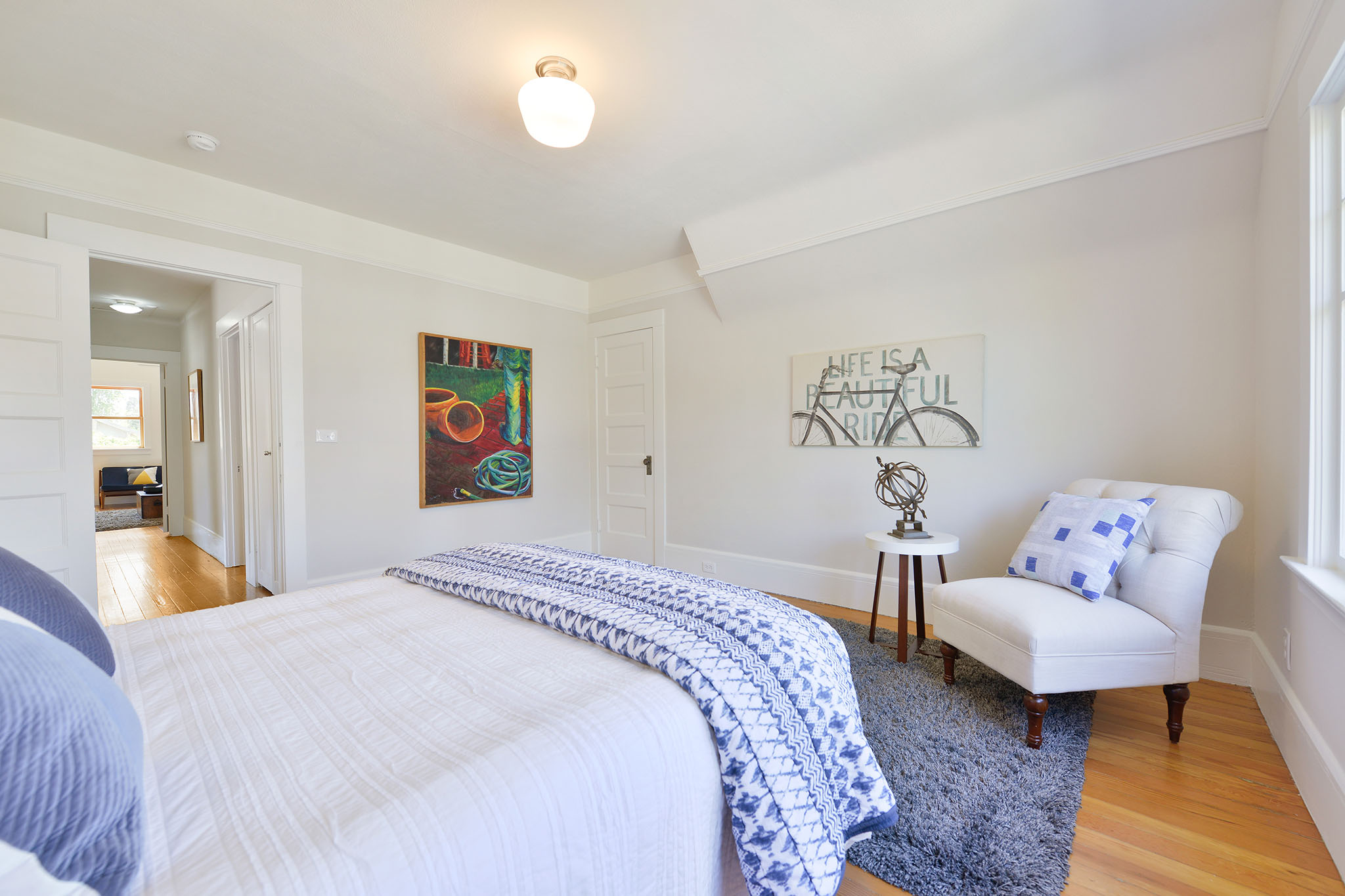 Up the artisan staircase, on the 2nd;floor, are three light-filled bedrooms. The south facing master bedroom has a vaulted ceiling and tree views. The middle bedroom has a wonderful closet complete with a kids special “magic zone.”