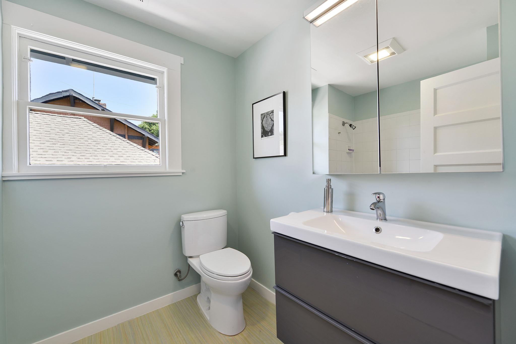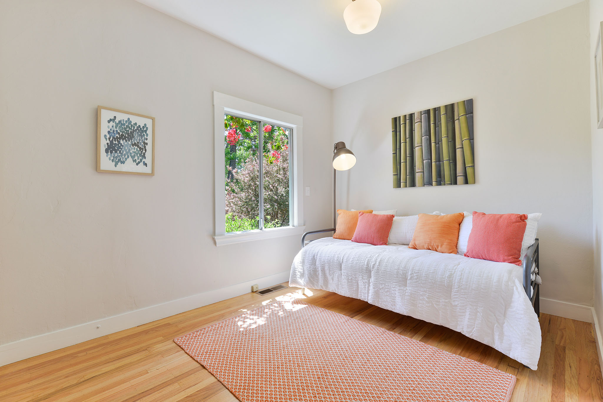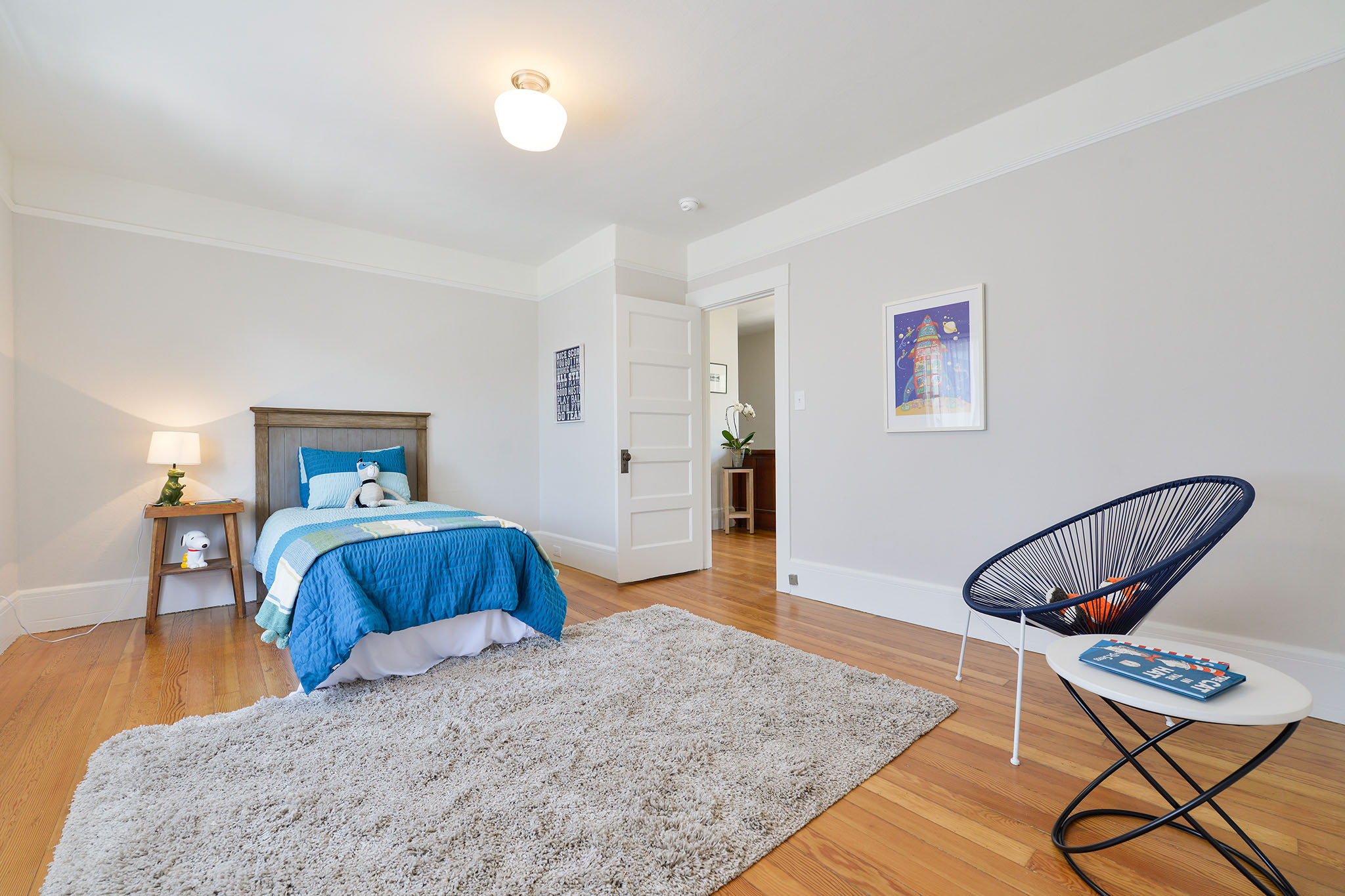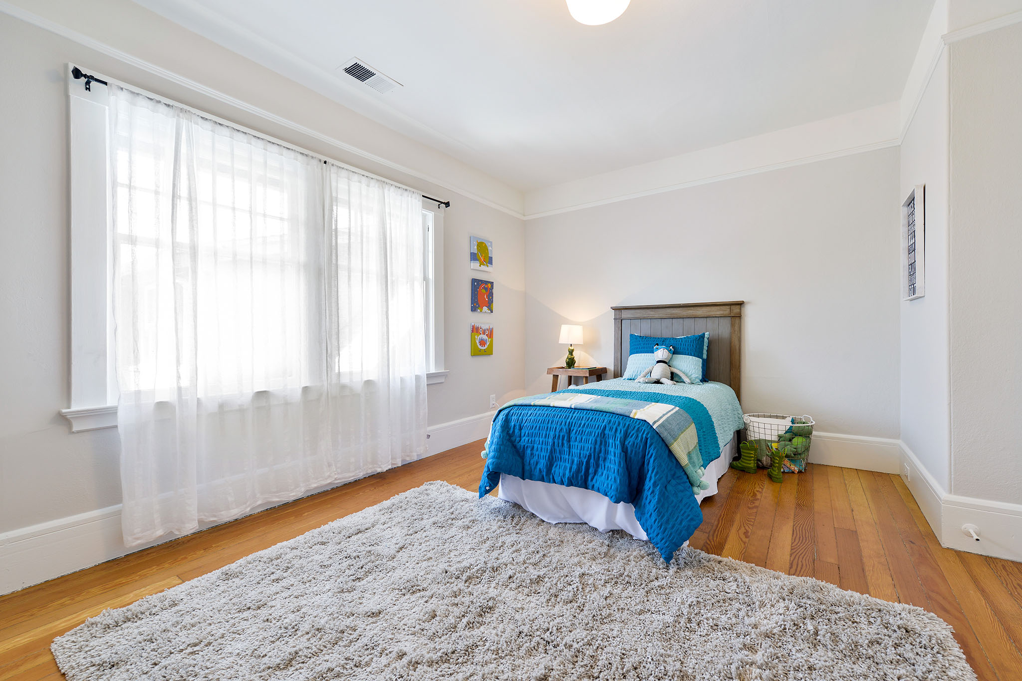 Up the artisan staircase, on the 2nd;floor, are three light-filled bedrooms. The south facing master bedroom has a vaulted ceiling and tree views. The middle bedroom has a wonderful closet complete with a kids special “magic zone.”