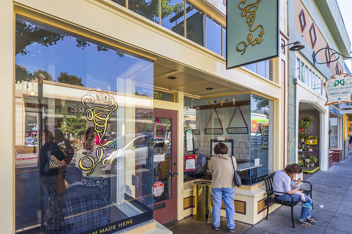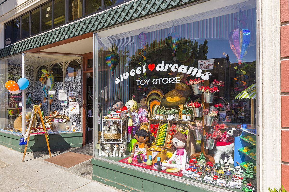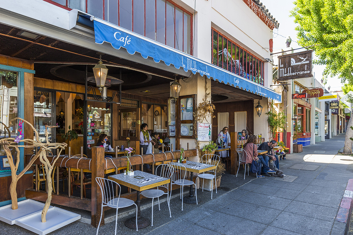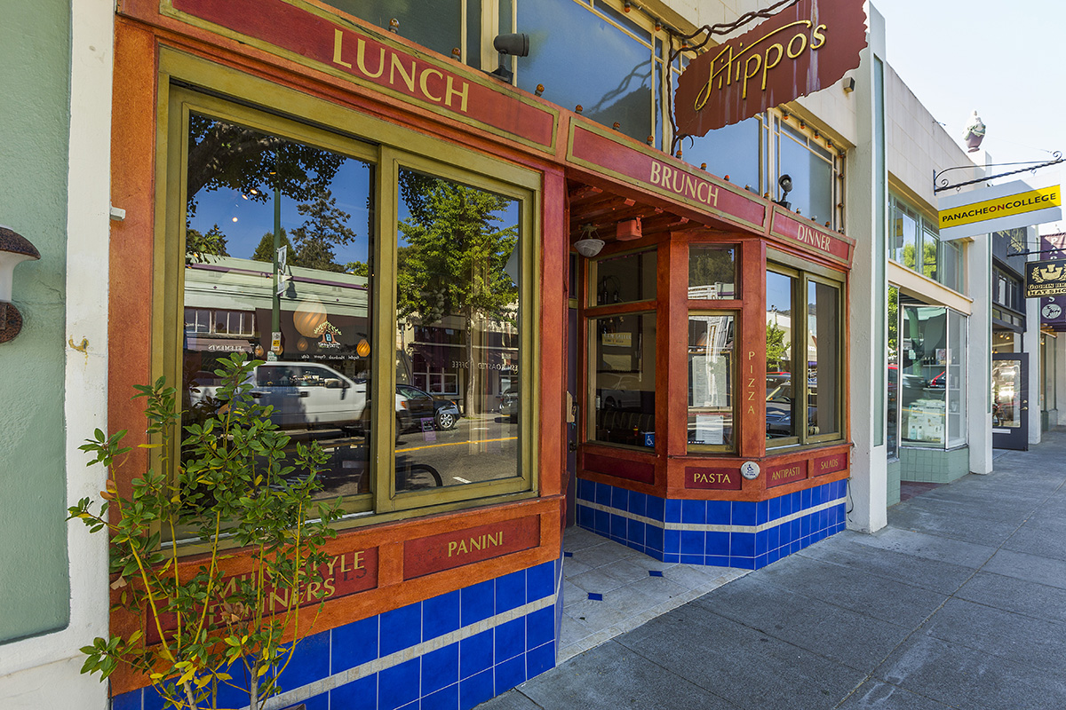It has a small commercial corridor on College Avenue, centered on the intersection of Ashby and College Avenues, that spans College Avenue about one to two blocks in each direction. The commercial corridor consists of small shops and restaurants that cater to local residents. There is also a small movie theater and a bank near the intersection. There are also a handful of businesses near the intersection of College Avenue and Derby Street.