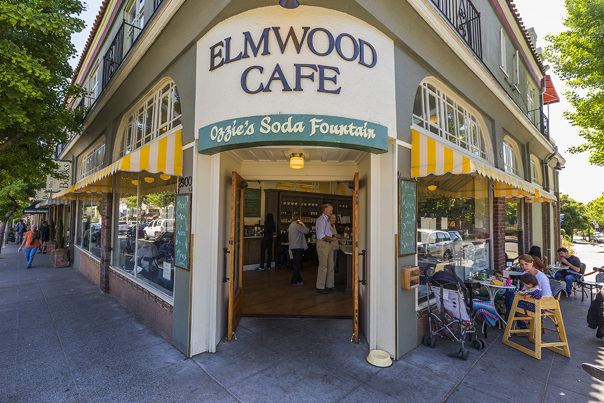 The;Elmwood District;is a neighborhood of the City of;Berkeley, California. It is primarily residential, with a small commercial area. The district does not have set lines of demarcation, but is focused around College and Ashby Avenues. The most extreme definitions of the district's boundaries do not extend past;Telegraph Avenue;to the west, Dwight Way to the north, or the;Oakland;city limit to the south. Elmwood was a streetcar suburb that was developed in the 1900s housing boom following the 1906 earthquake.[1]