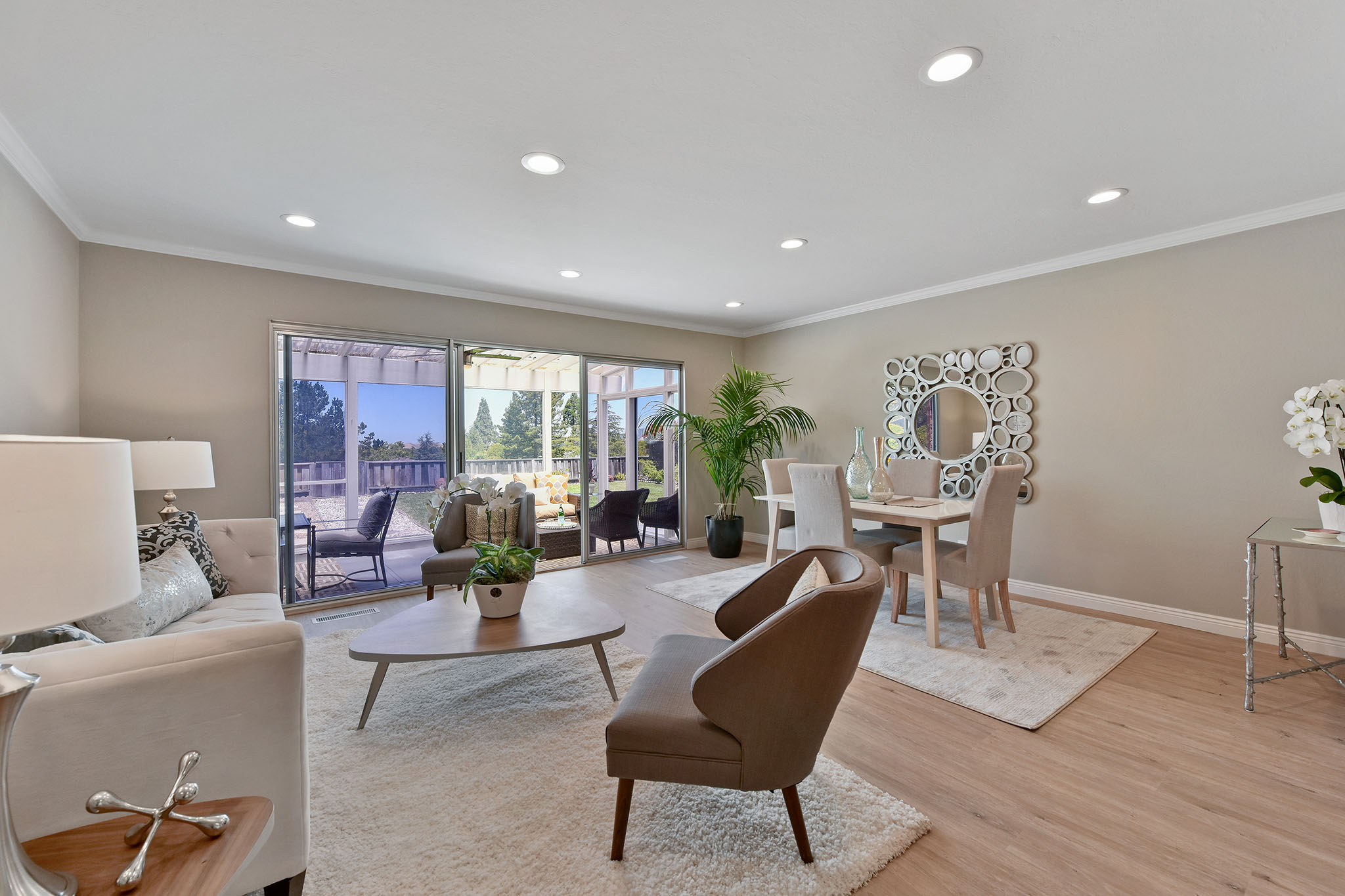 A beautifully updated midcentury home in Parkridge Estates with a spectacular view overlooking a vast stretch of Redwood and Lake Chabot regional parks