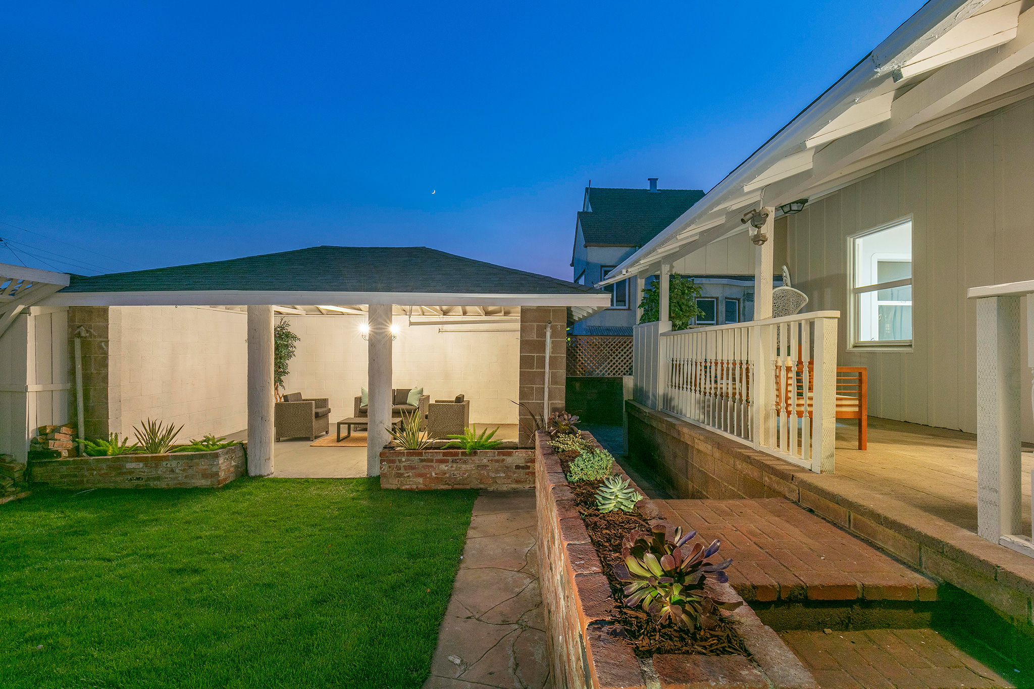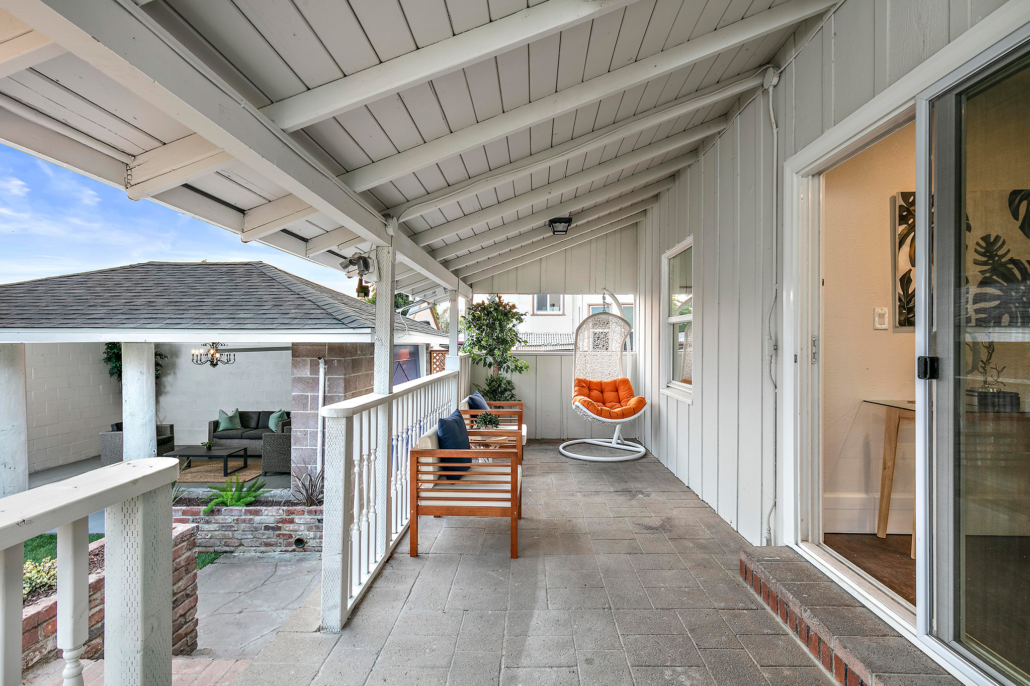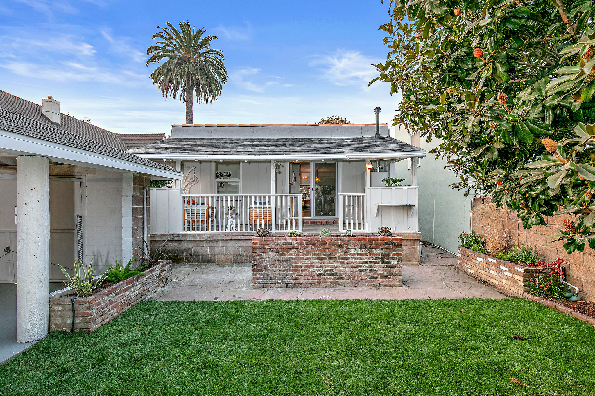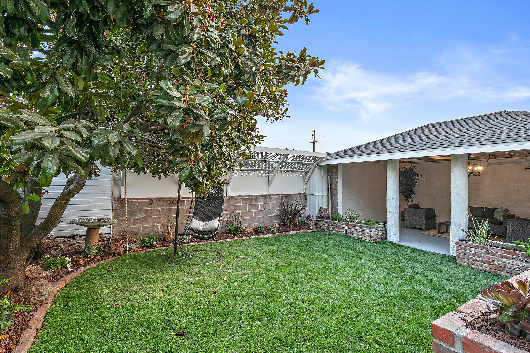 Outside, enjoy the private and well-appointed backyard which has been newly landscaped with grass. The detached one-car garage has a unique open-architectural feel where parties and gatherings seem almost necessary. The long driveway, accented with original stone work, is partially covered with a refurbished carport allowing off-street parking.