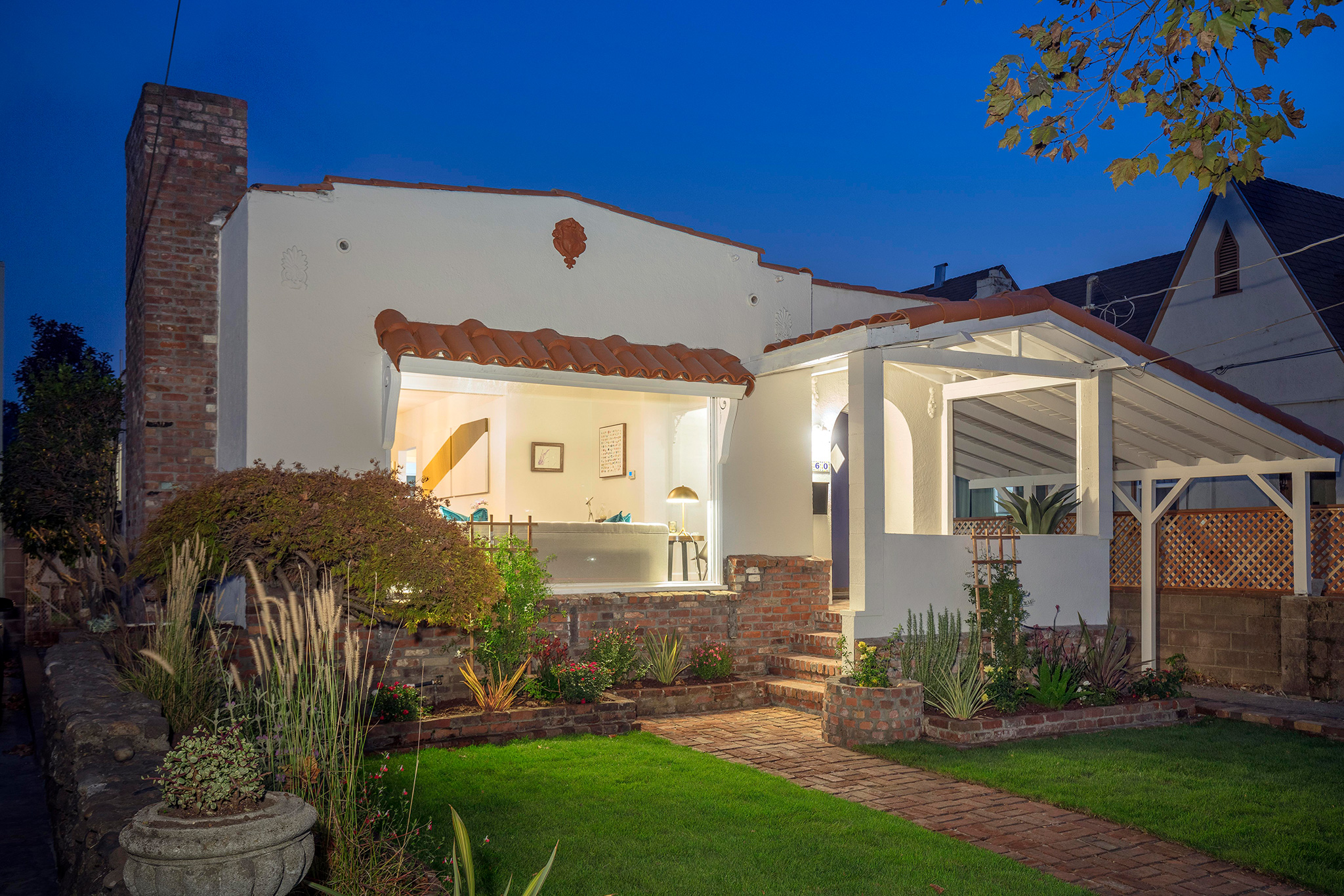 Tidy landscape and ornate brick walkway welcome you to this sweet bungalow located on a tree-lined street in Oakland’s historical Havenscourt District.