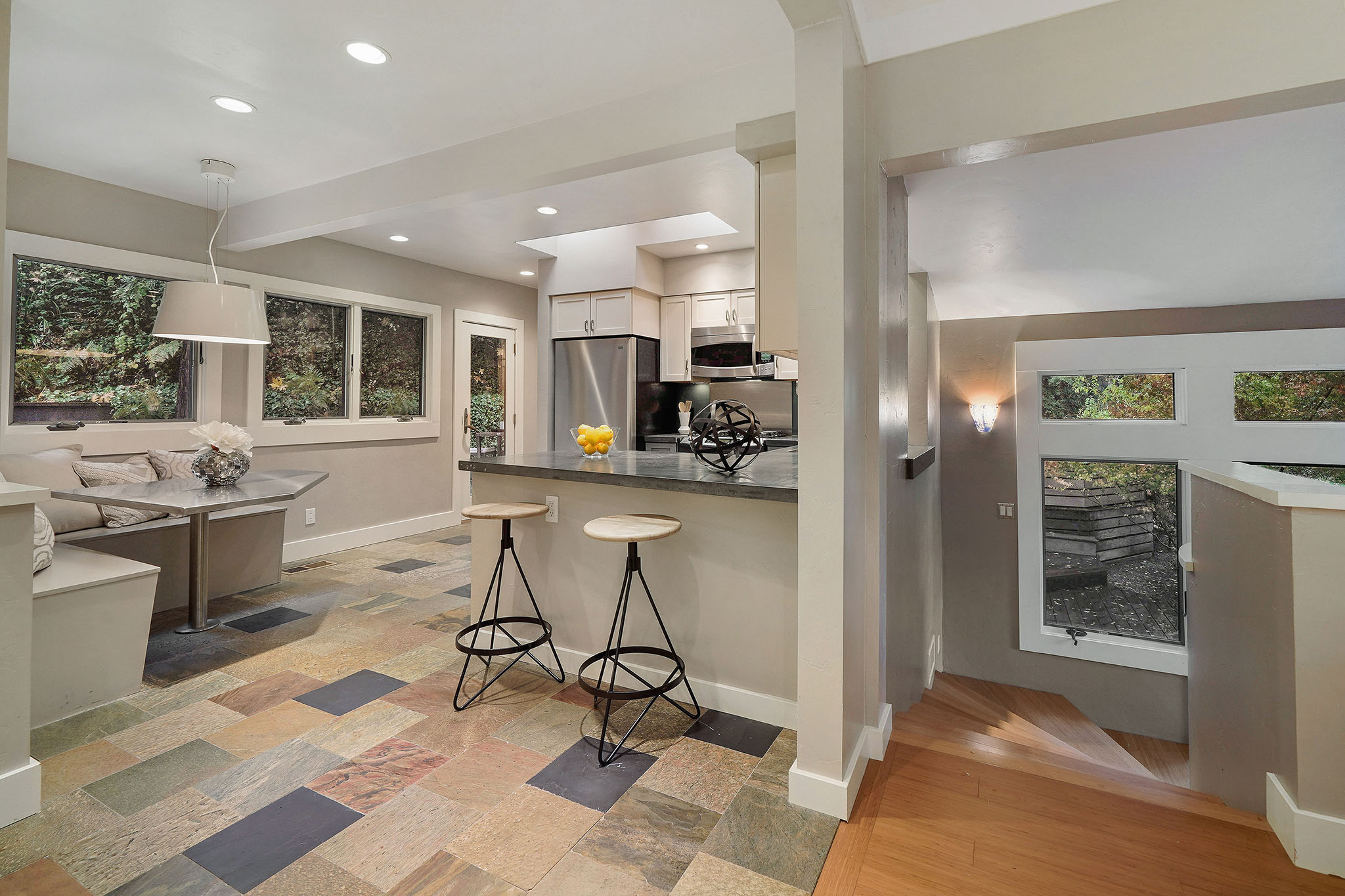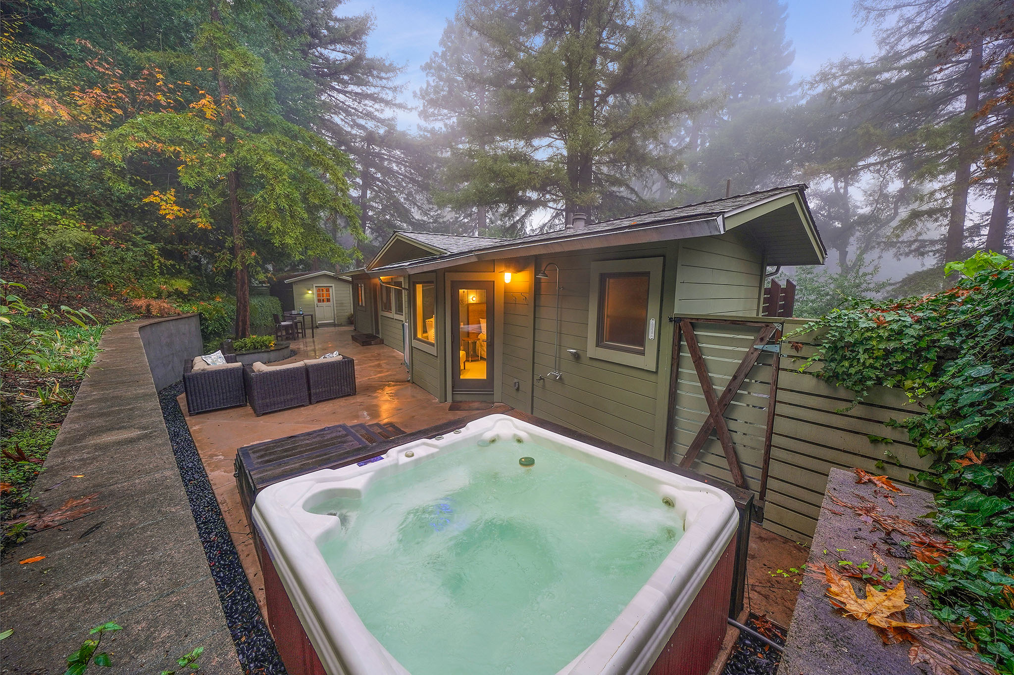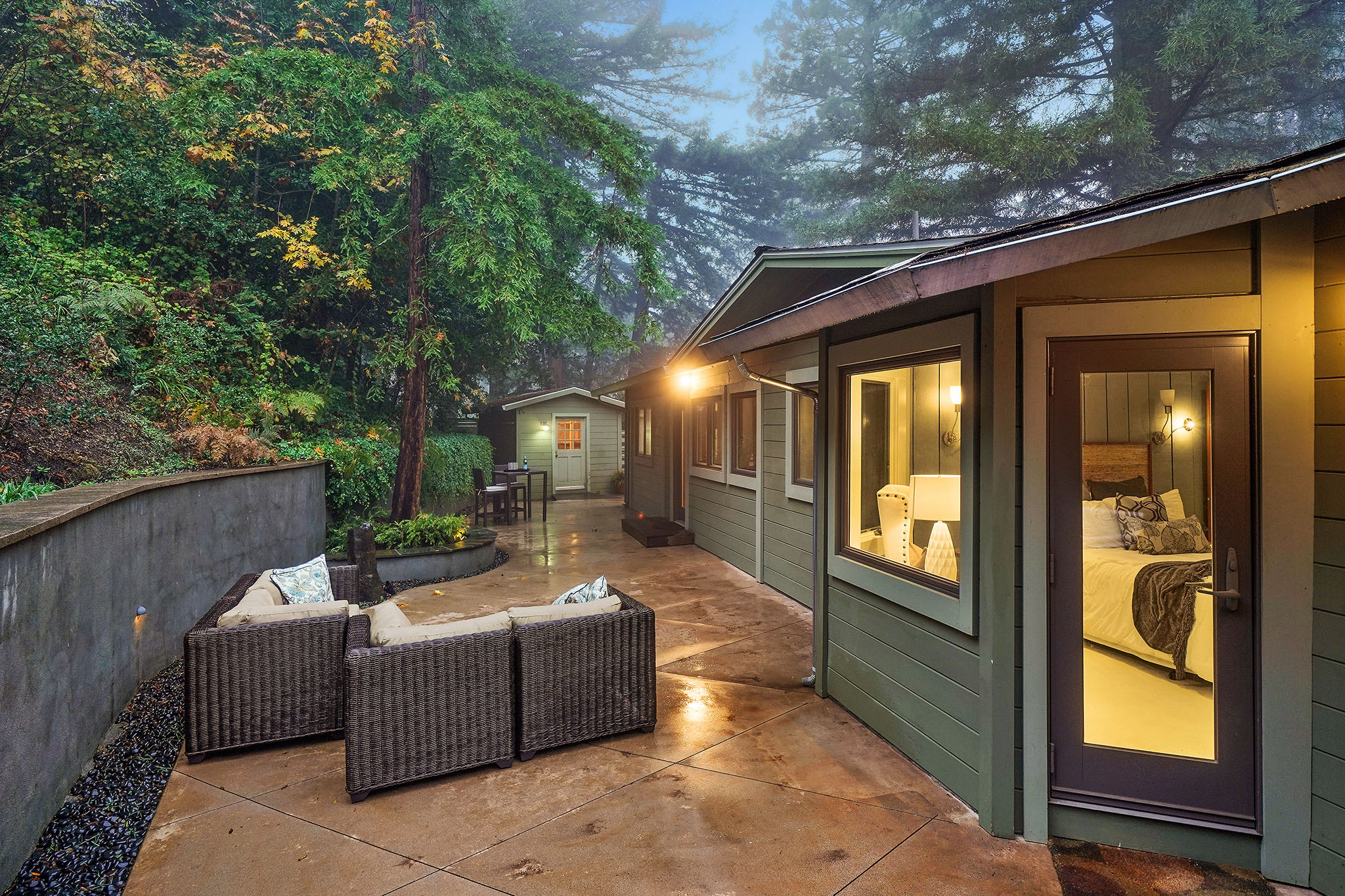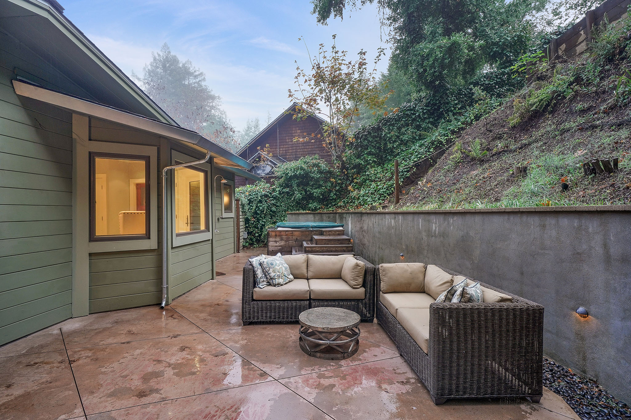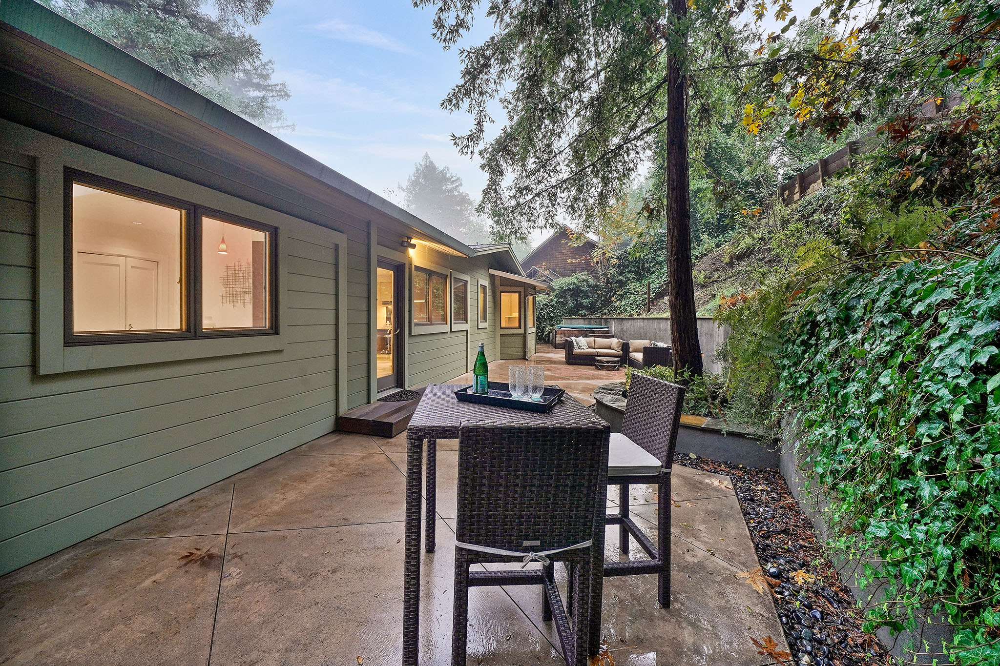 This finely crafted three-bedroom contemporary home offers comfortable retreat style living with peaceful heritage Redwood trees in the coveted residential area of Monte Cristo -;surrounded by natural beauty. This home is an expression of fine craftsmanship, warmth and style. Wake up with a morning soak in the hot spa before enjoying breakfast on the terrace, then head out to explore the dramatic open space trail terrain of Mount Tam on your bike or by foot. As the day winds down - savor a farm-to-table dinner, the warm hued sunset, and drinks by fire light.