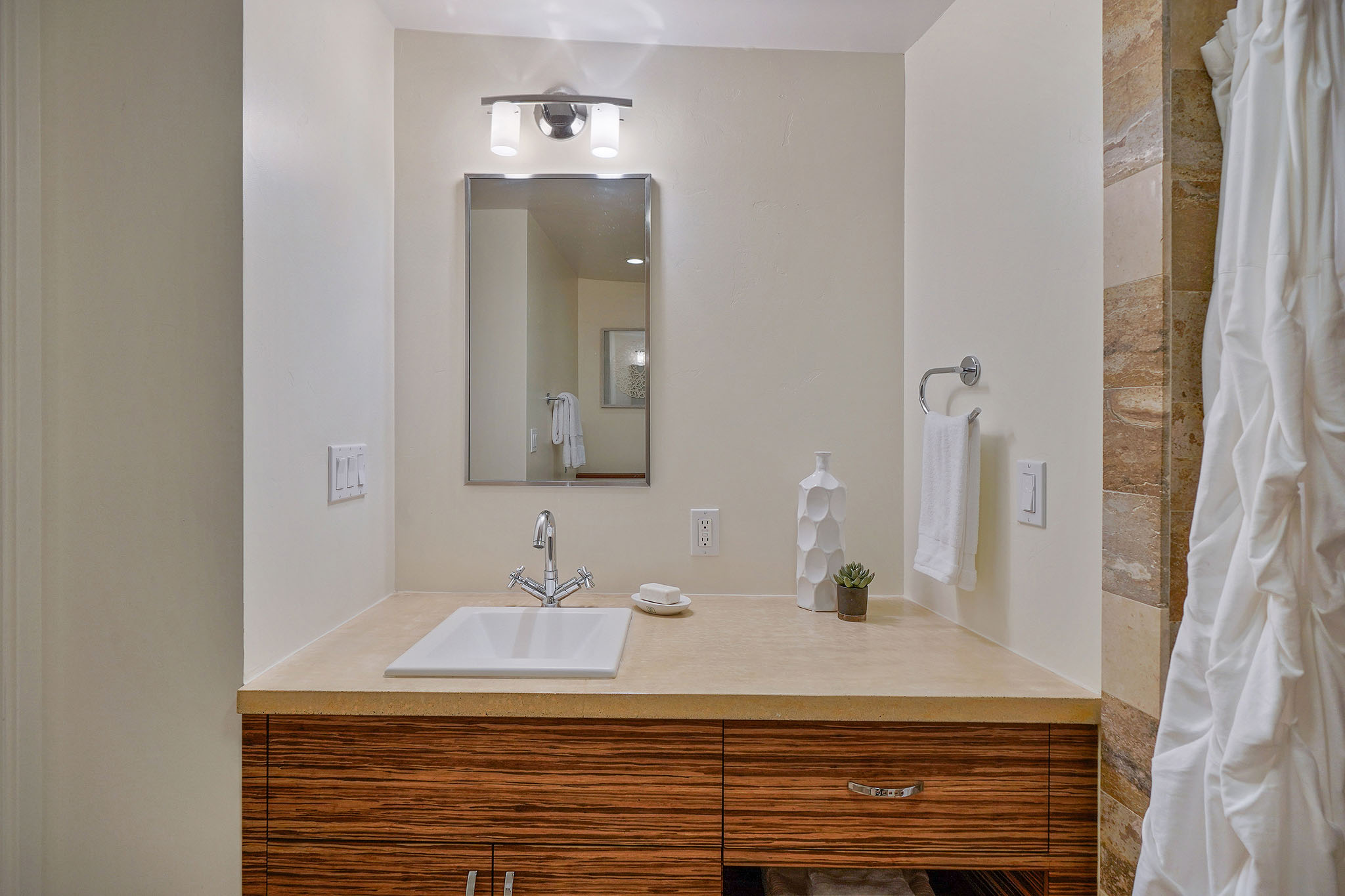 Completing the main living level on the inside, you will find a master suite bedroom with a luxurious en suite bath. The bath includes a double sink vanity, skylight, and a deep bathtub punctuated by fine Carrera marble and slate. An exterior door leads out from the master bedroom to the hot tub patio spa. A second queen-sized bedroom completes the main living level of this home.;