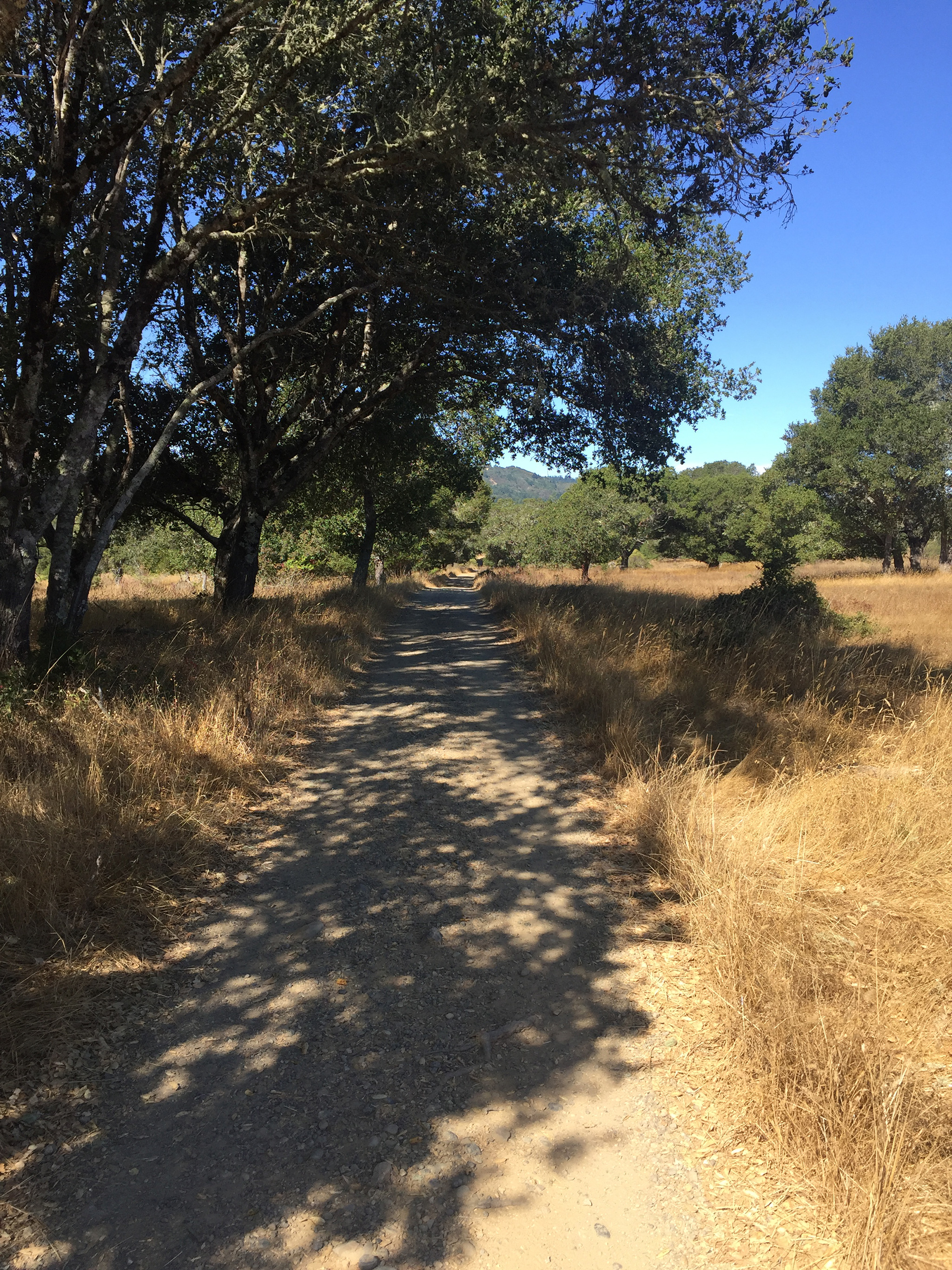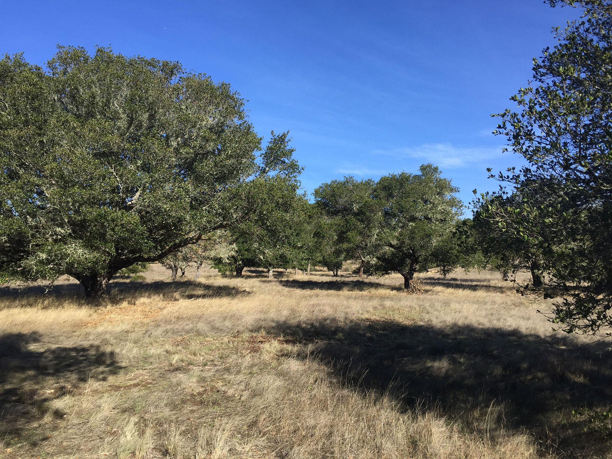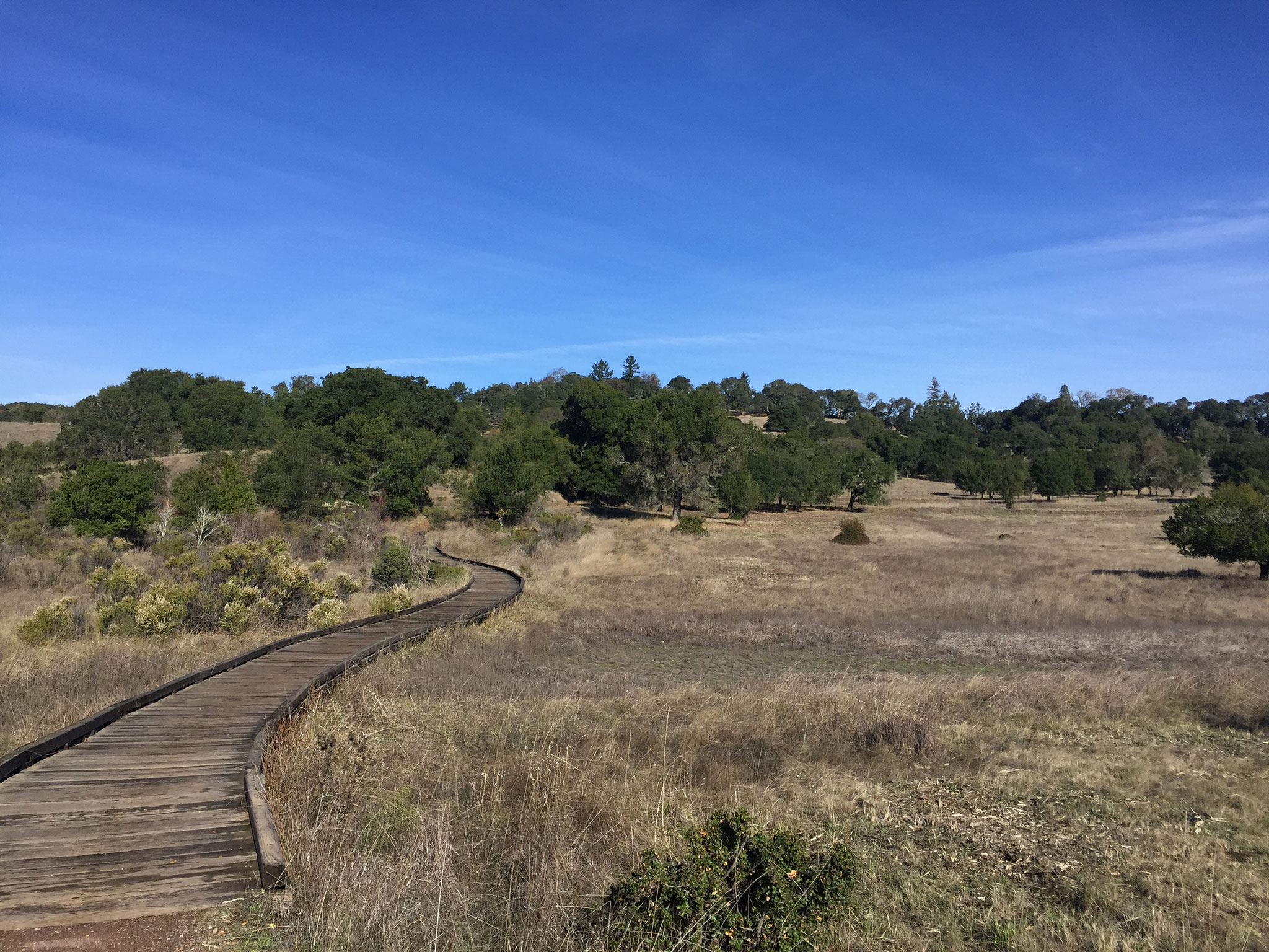 > Taking the neighborhood footpath to Sky Oaks Meadow - an open grassy savannah dotted with oak trees, grazing deer, clutches of wild turkeys, and a swath of wetland