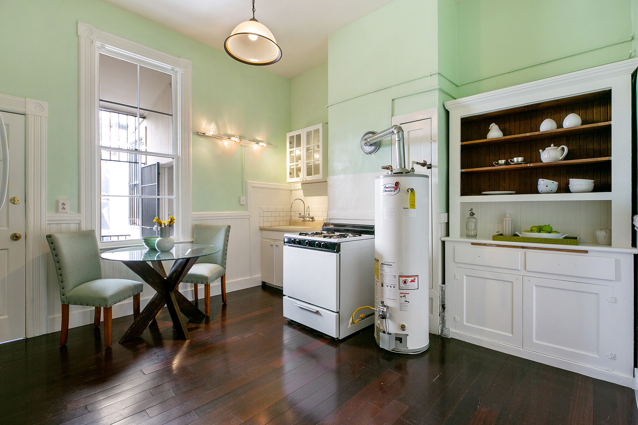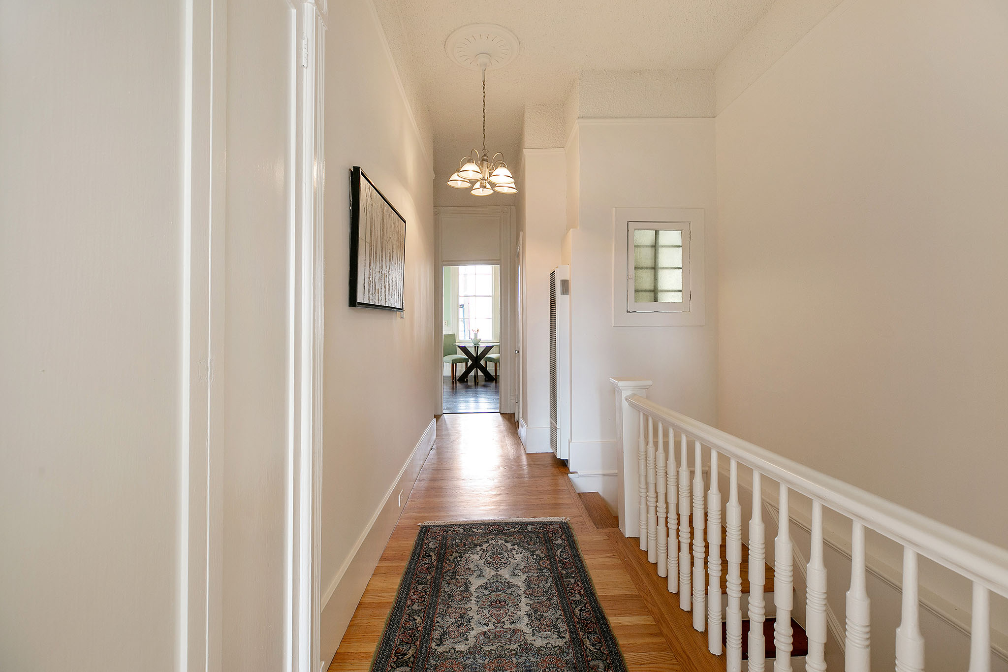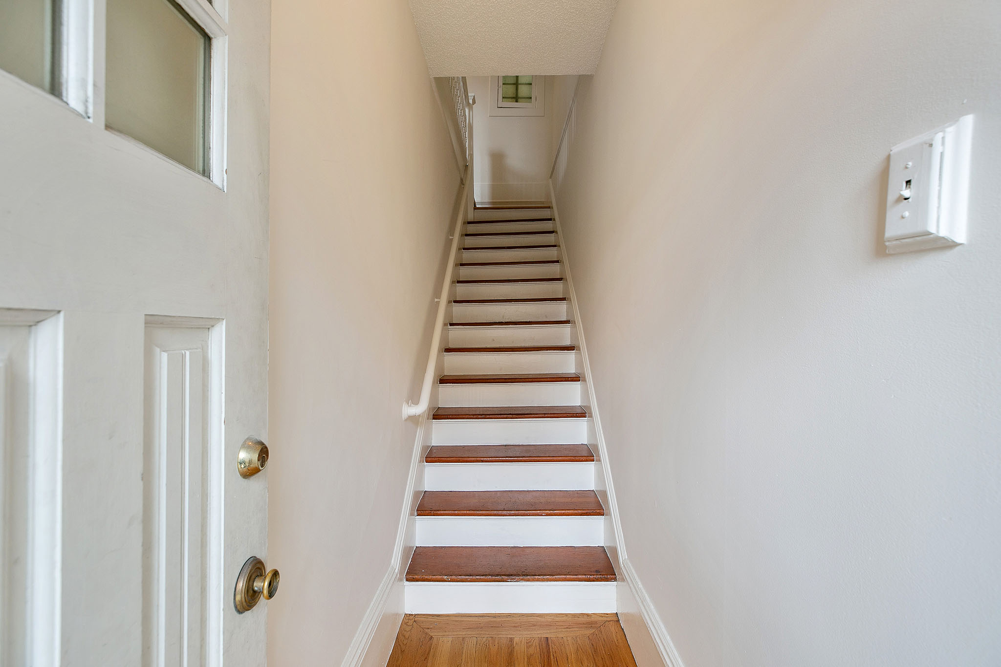The second story comprises of two bright and airy one-bedroom, one-bath apartments - each with a private front entrance and interior stairway. Polished wood floors, period details, and elegant bay windows make these units warm and inviting. At the back is a shared porch overlooking the neighborhood, a bar office (formerly a laundry room), and a spiral stairway leading to the patio.
