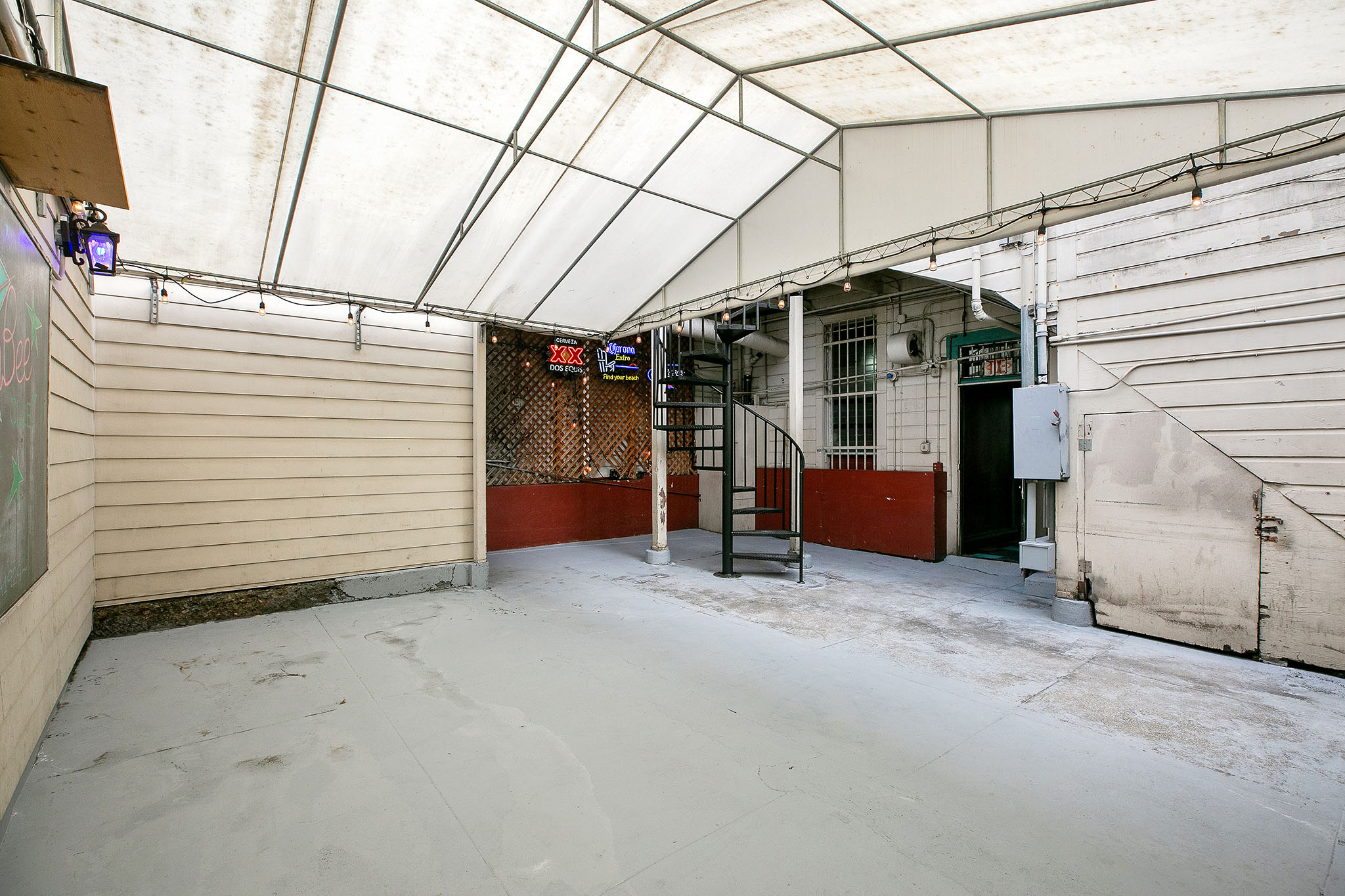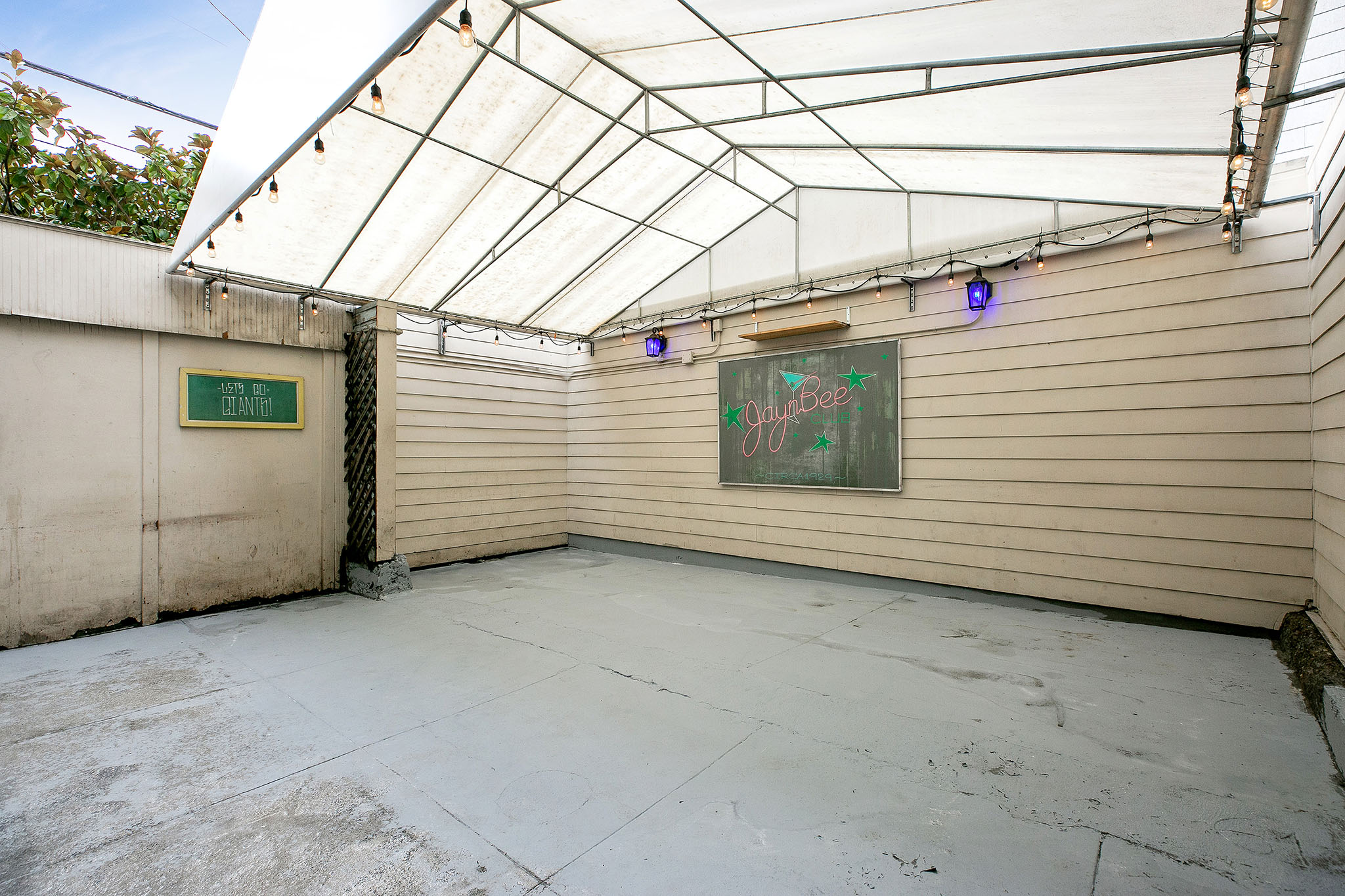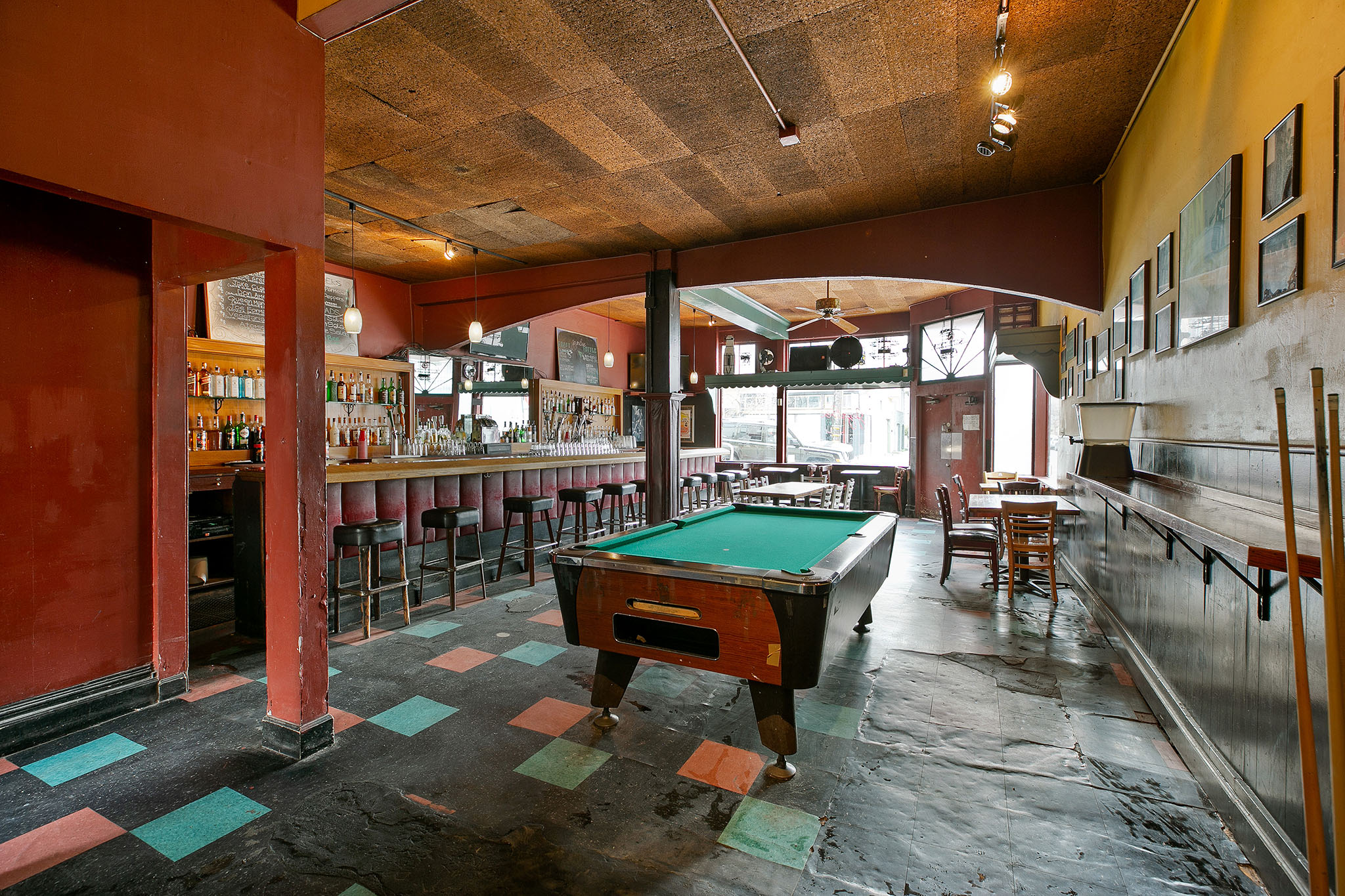 Upon entering the corner commercial unit on York and 20th, you'll find the vibrant old Jay 'n Bee Club with comfortable table-seating, a pool table and bar to rest your drink, a full wrap around bar with plenty of stool seating, two bathrooms, a professional kitchen, and a cozy and intimate outdoor patio. The patio is fully enclosed and features lighting and a large white awning. A private office (with its own York Street entrance), a single-car garage, and a handsome line of five Magnolia trees finish 725 York Street.