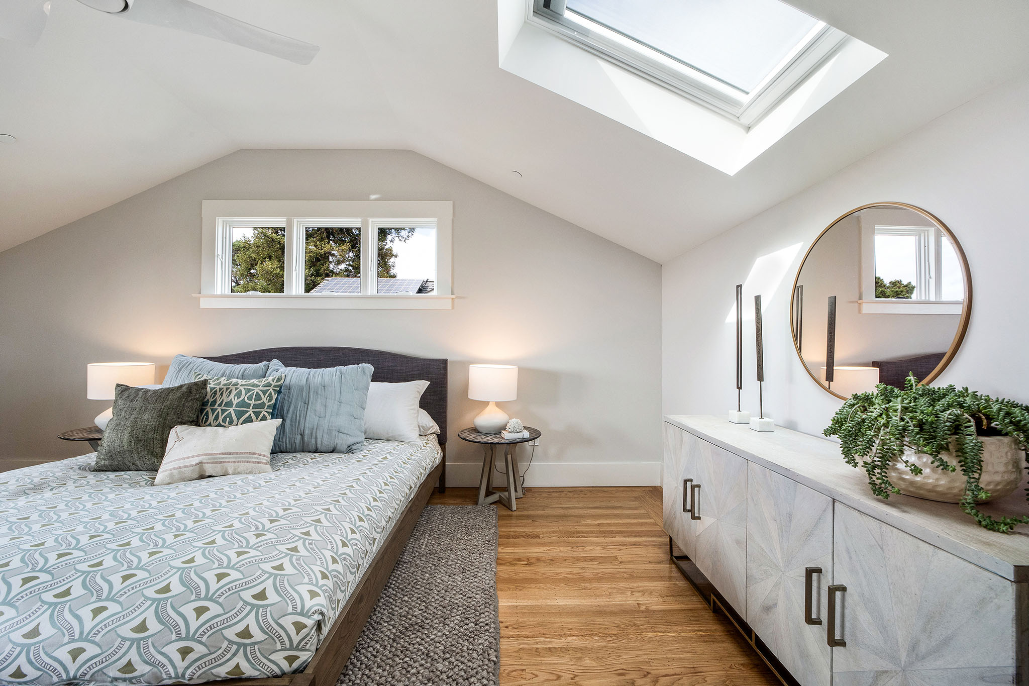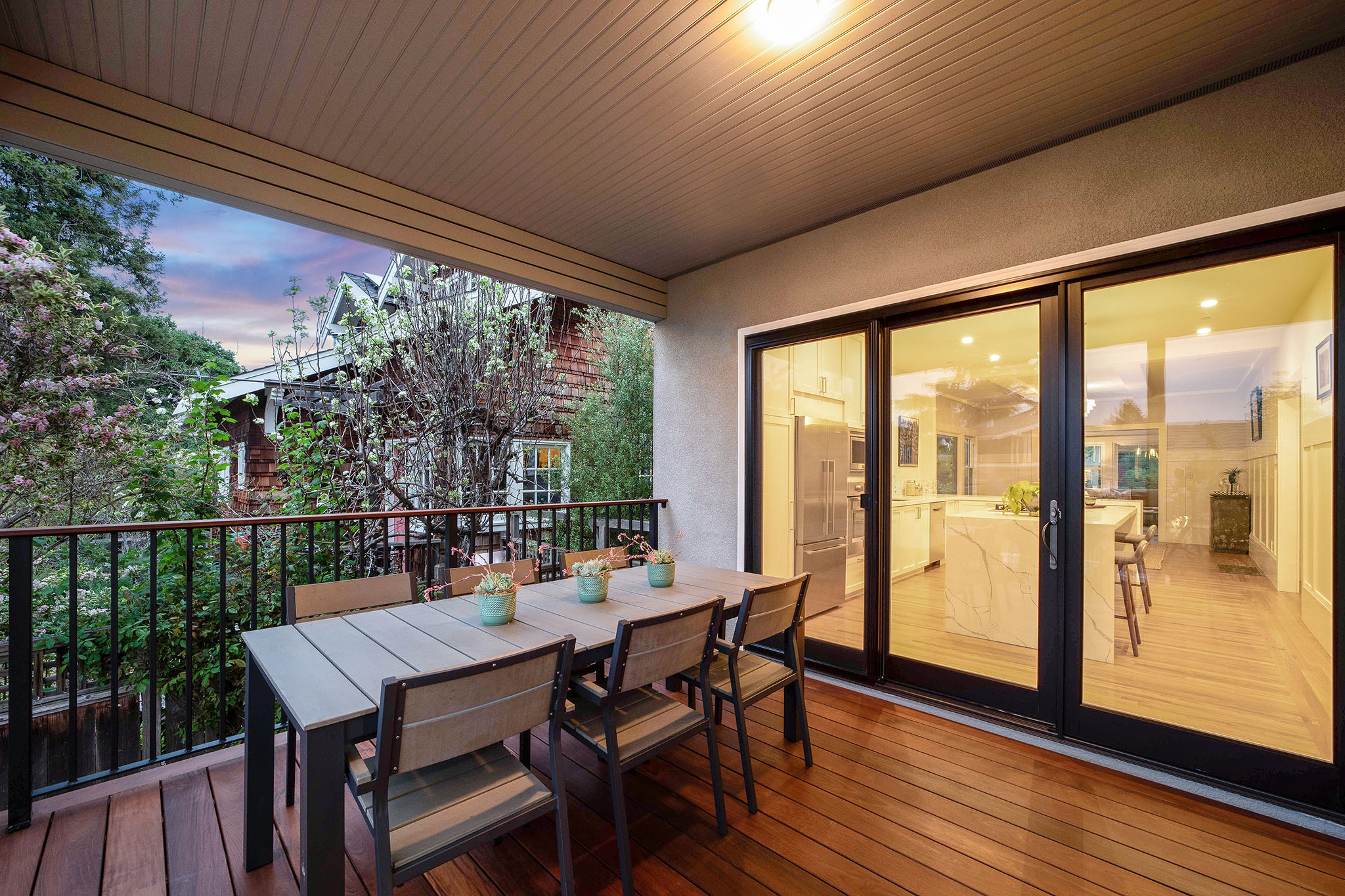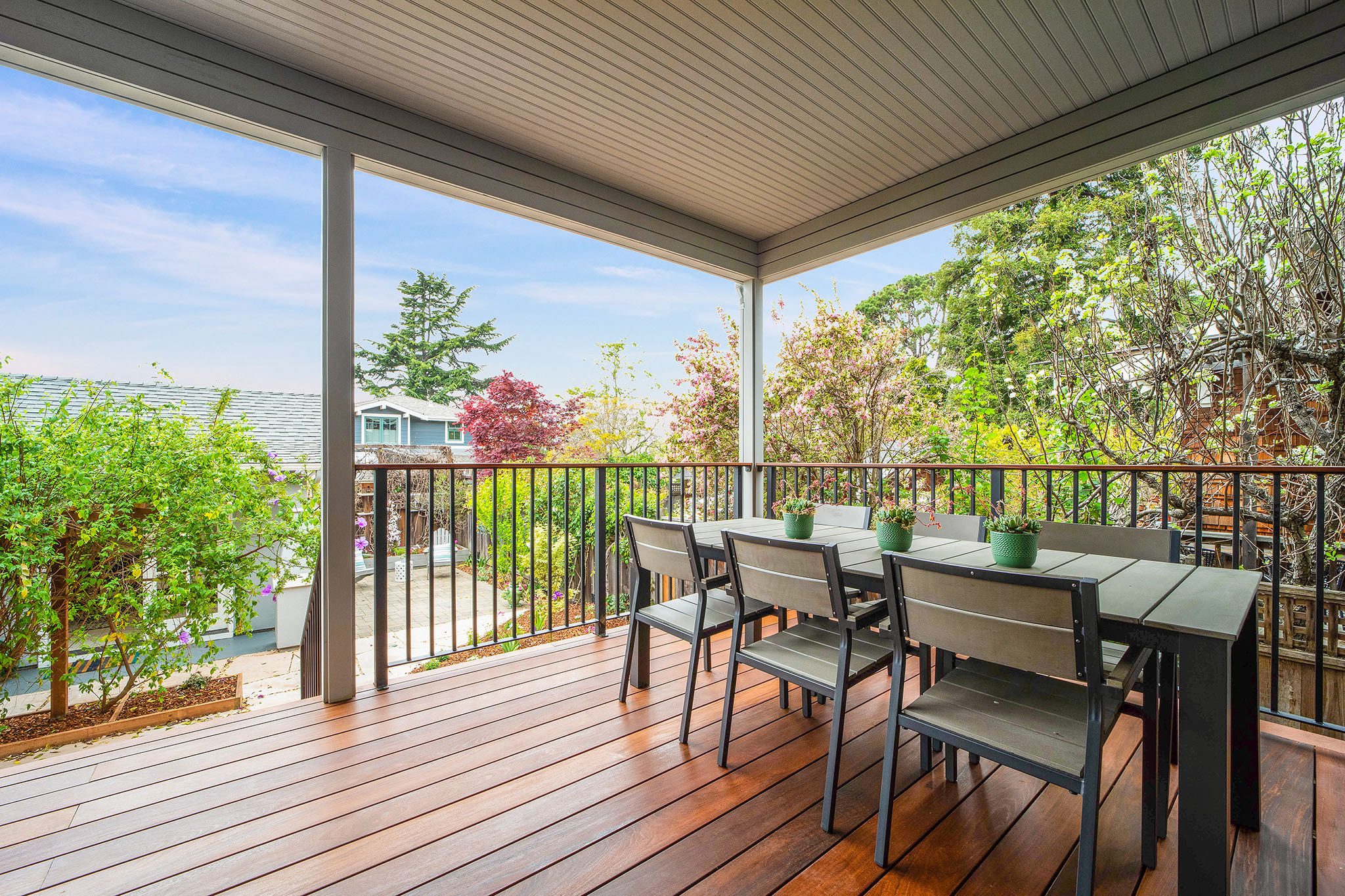 Perched on a sunny knoll in walkable Albany near Solano Ave, this handsome bungalow has been completely reimagined by an architect for herself.; It has been meticulously crafted from the foundation up, with all new systems.; Period touches like tray ceilings and covered porches combine with pristine state-of-the-art finishes for the best of both worlds.; Open-concept floor plan downstairs flows from living to dining to kitchen and out to an expansive, chic Ipe wood deck.; Tucked off a hallway for privacy are two bedrooms, one with deck, and a sparkling bathroom with laundry.; Up a stairwell drenched in natural light is a dreamy master suite with very private deck looking westward.; Immaculate!