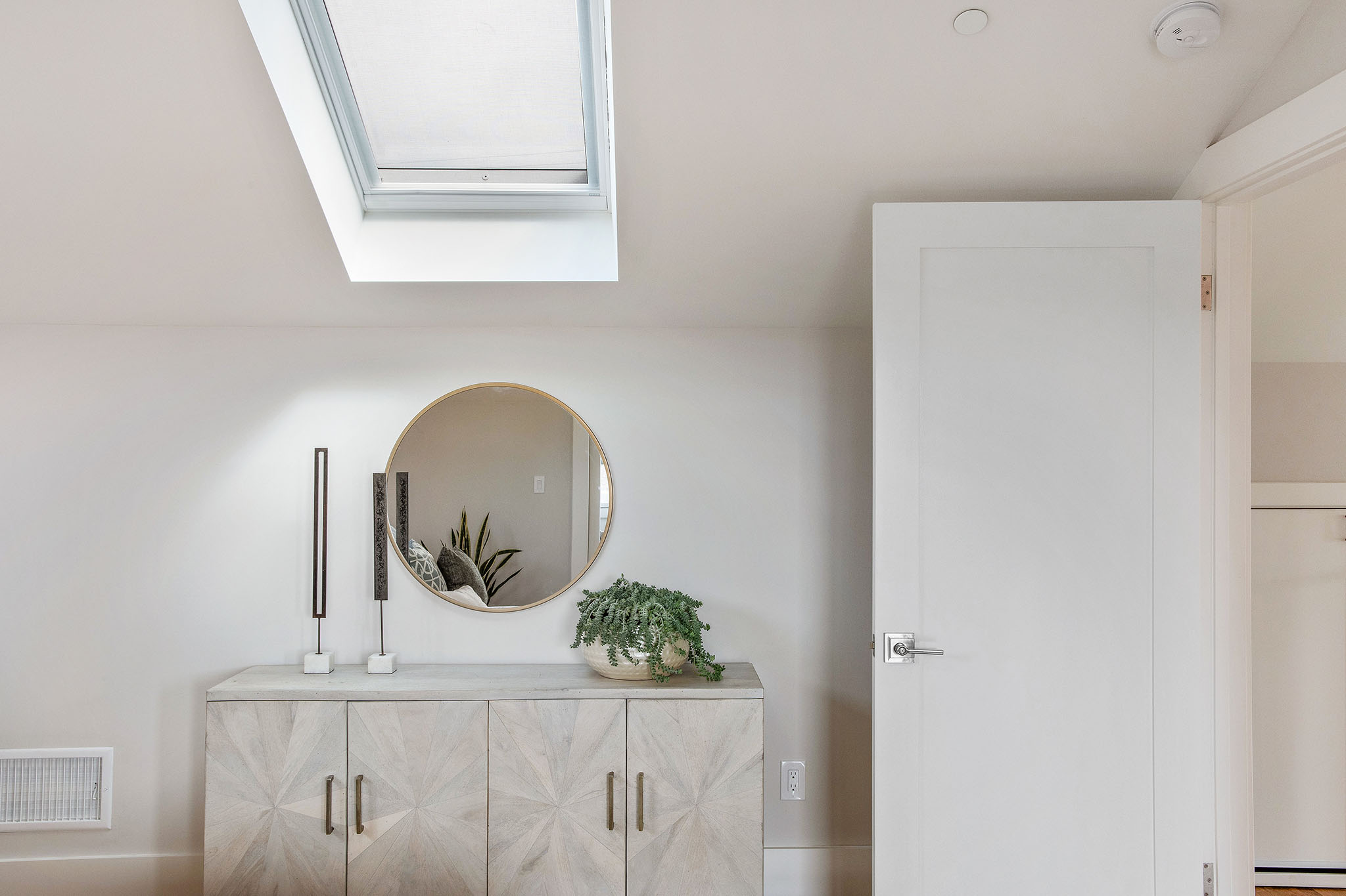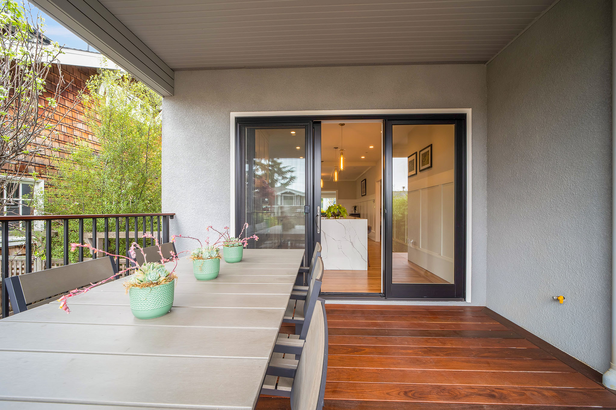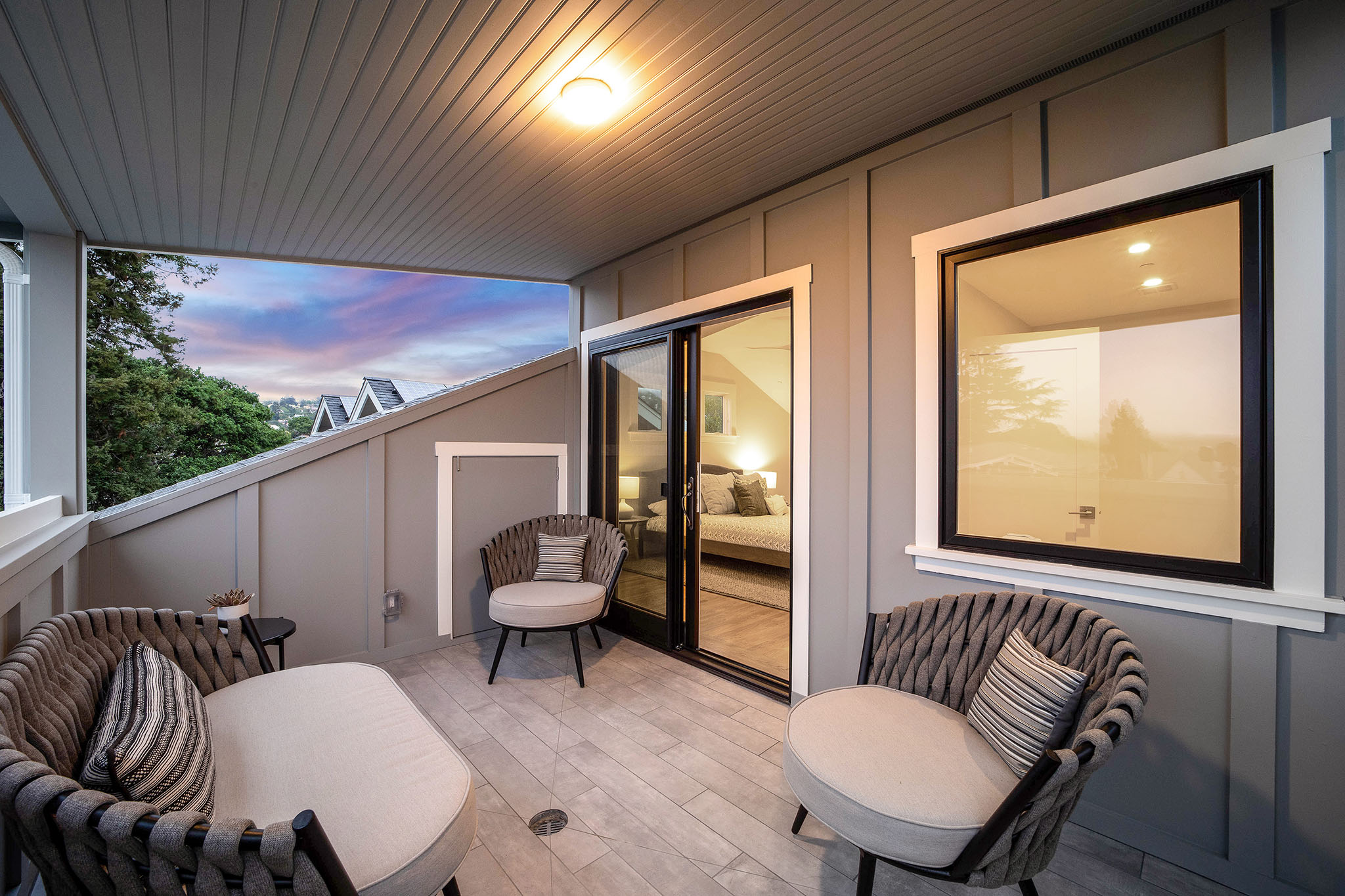 Perched on a sunny knoll in walkable Albany near Solano Ave, this handsome bungalow has been completely reimagined by an architect for herself.; It has been meticulously crafted from the foundation up, with all new systems.; Period touches like tray ceilings and covered porches combine with pristine state-of-the-art finishes for the best of both worlds.; Open-concept floor plan downstairs flows from living to dining to kitchen and out to an expansive, chic Ipe wood deck.; Tucked off a hallway for privacy are two bedrooms, one with deck, and a sparkling bathroom with laundry.; Up a stairwell drenched in natural light is a dreamy master suite with very private deck looking westward.; Immaculate!