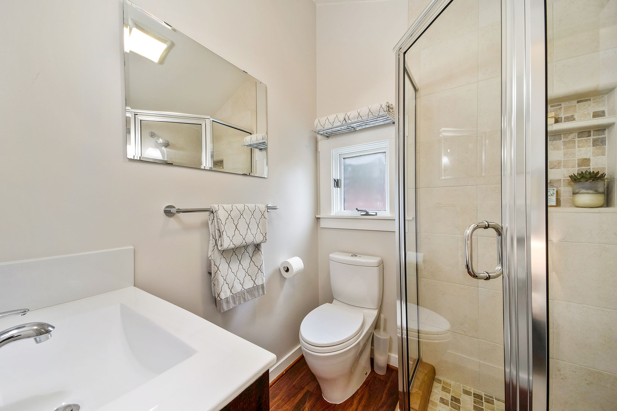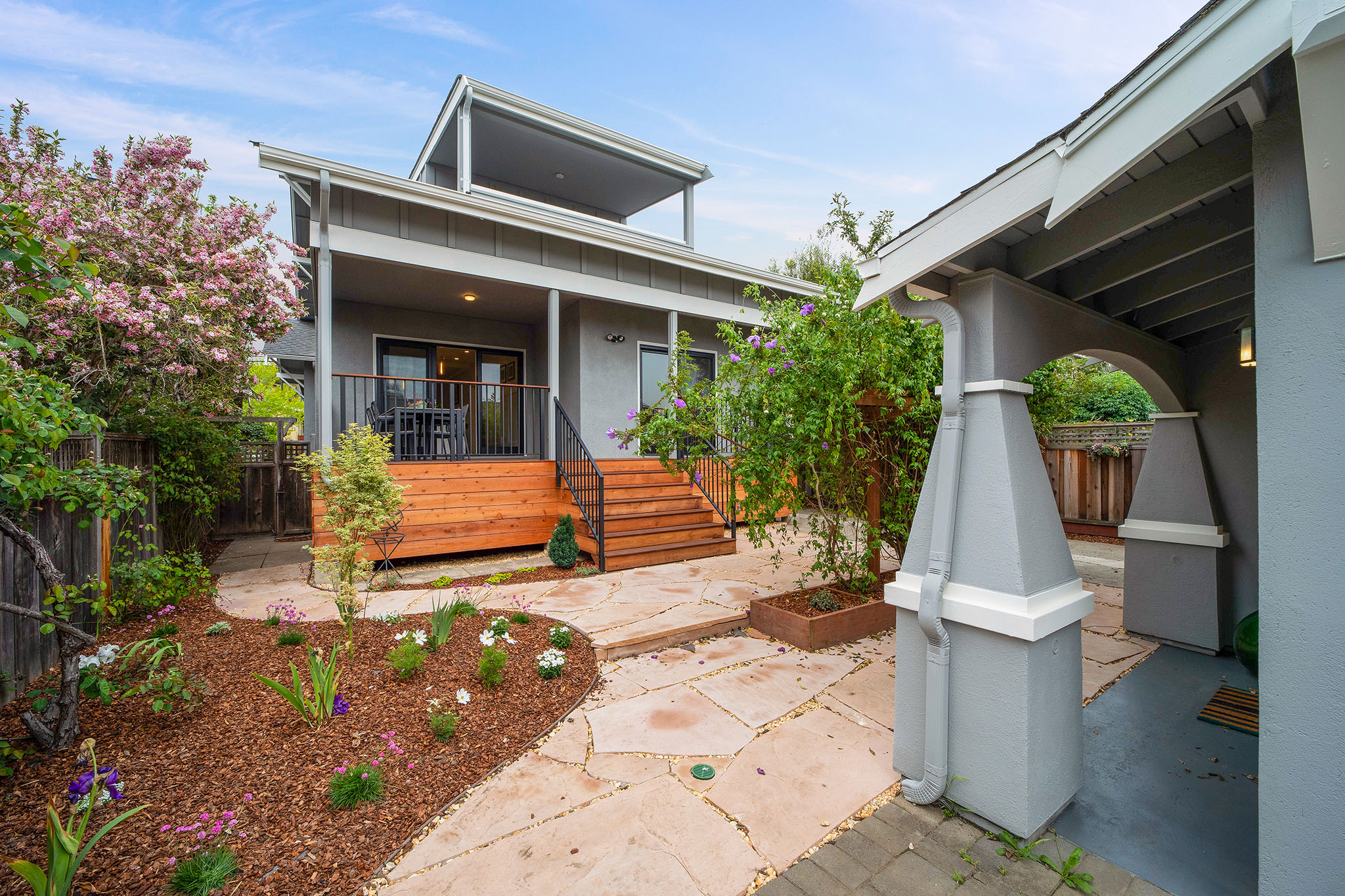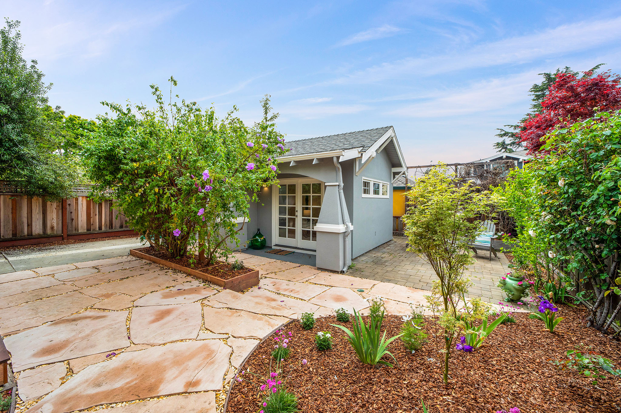 To the rear is an adorable (and legal) cottage built with permits in 1994. One bedroom, one bathroom and a living area with french doors to its own garden patio.; So many ways to settle in!