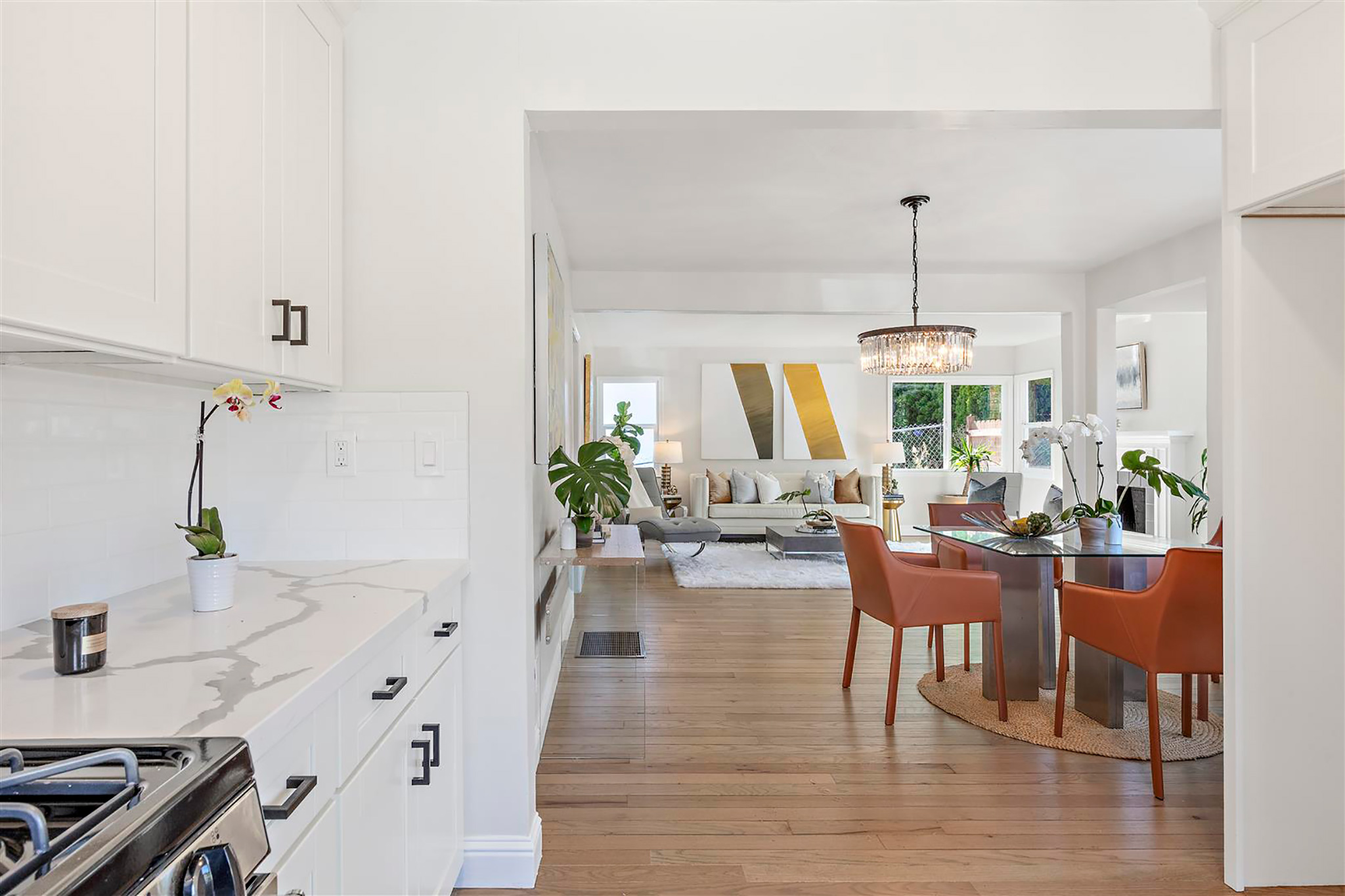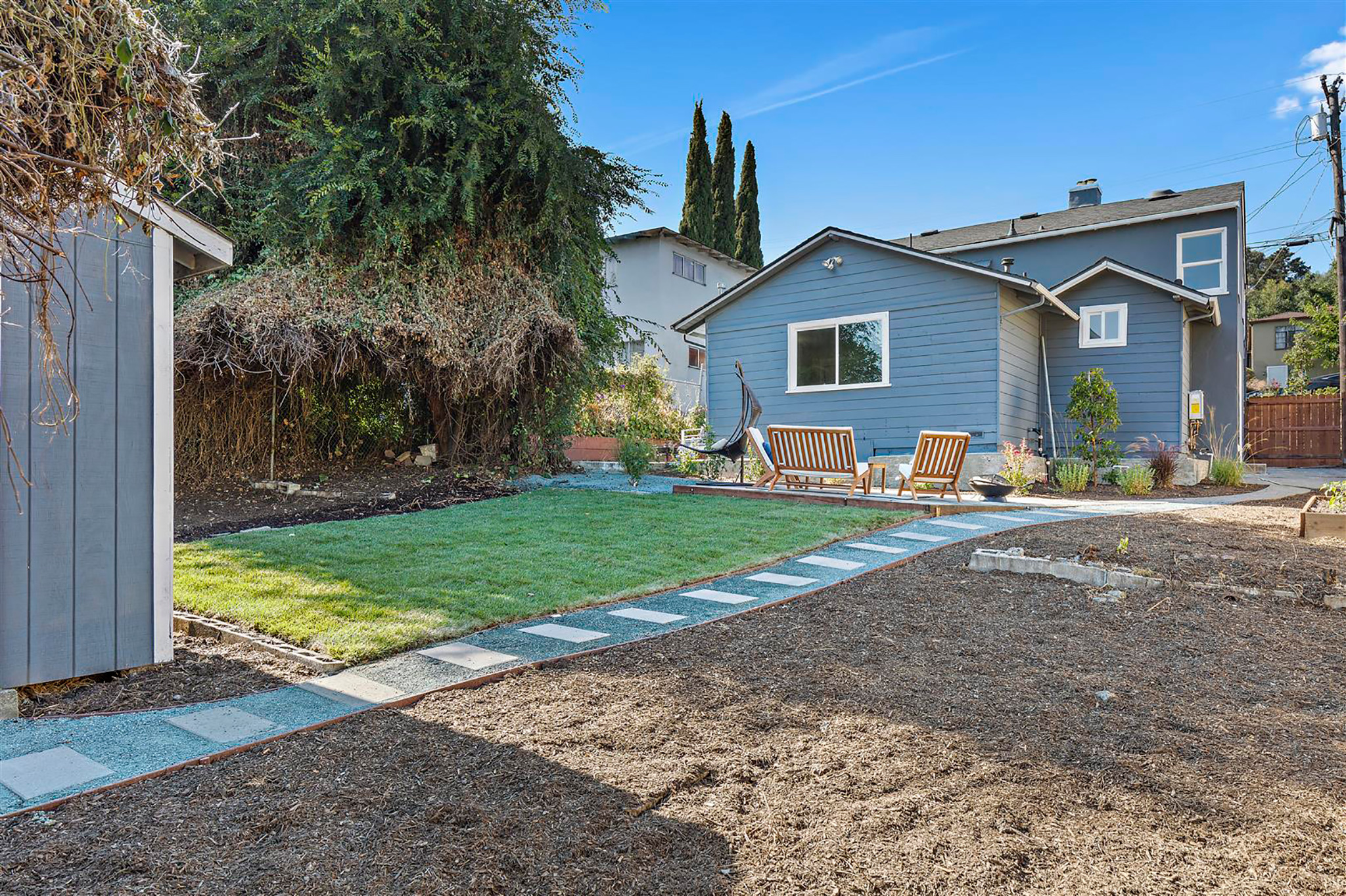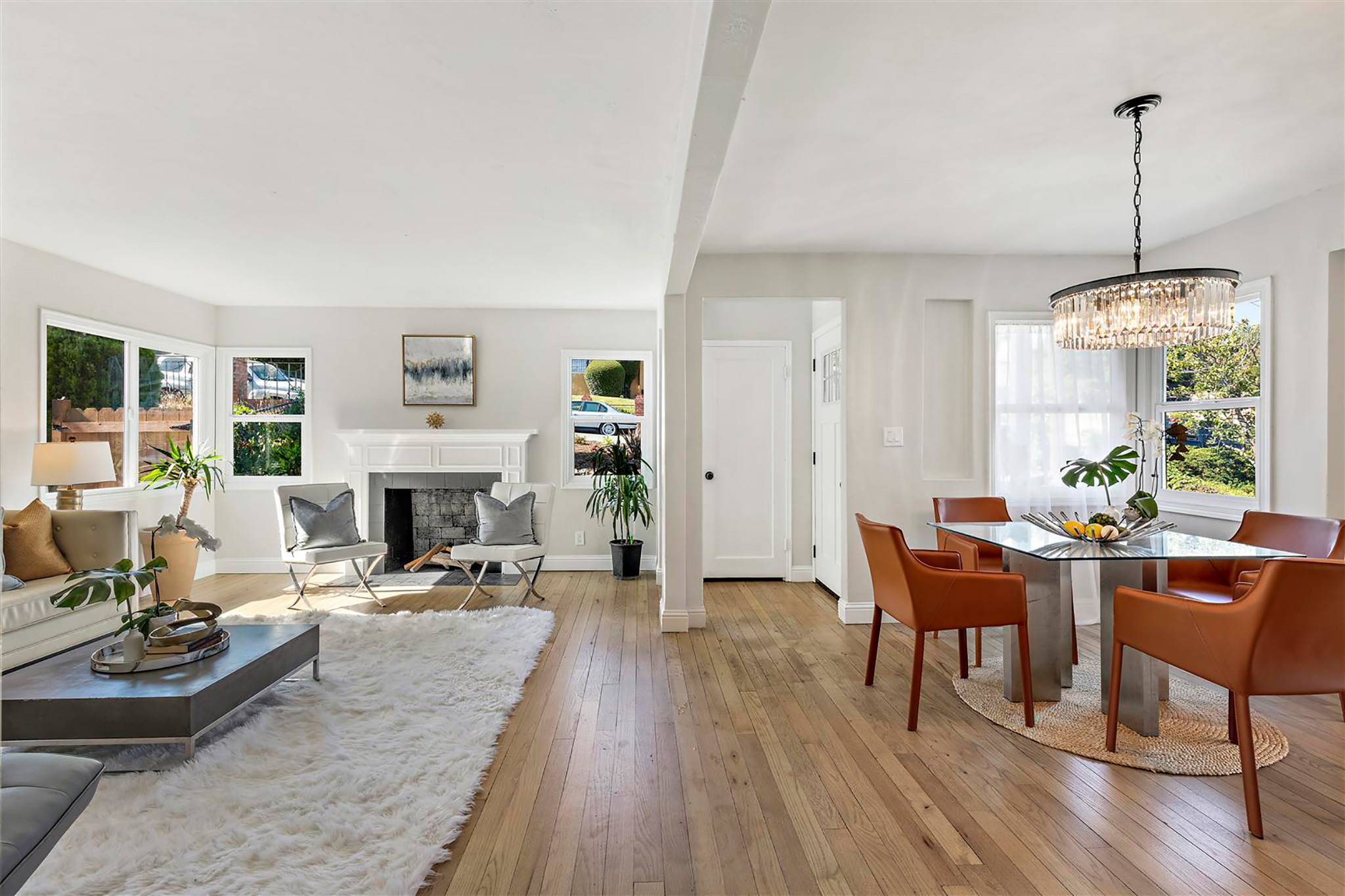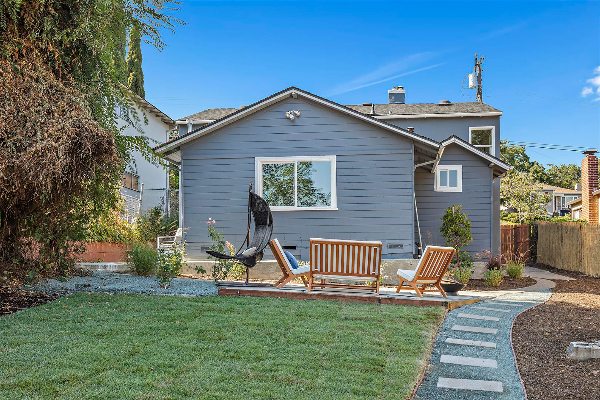 This charming 3+ bedroom, 2 bath home with an attached and permitted in-law unit complete and separate entrance. The main house with hardwood floors has an open floor plan, new kitchen and bath plus 2 light-filled bedrooms on the main floor and a third bedroom space on the lower level. The extensively remodeled chef’s kitchen has all new appliances (2019) – complete with an attractive chandelier over the dining room table. Contemporary, clean and handsome bathrooms – showcase designer-level fixtures and tile choices. The attached garage has interior access to the home.