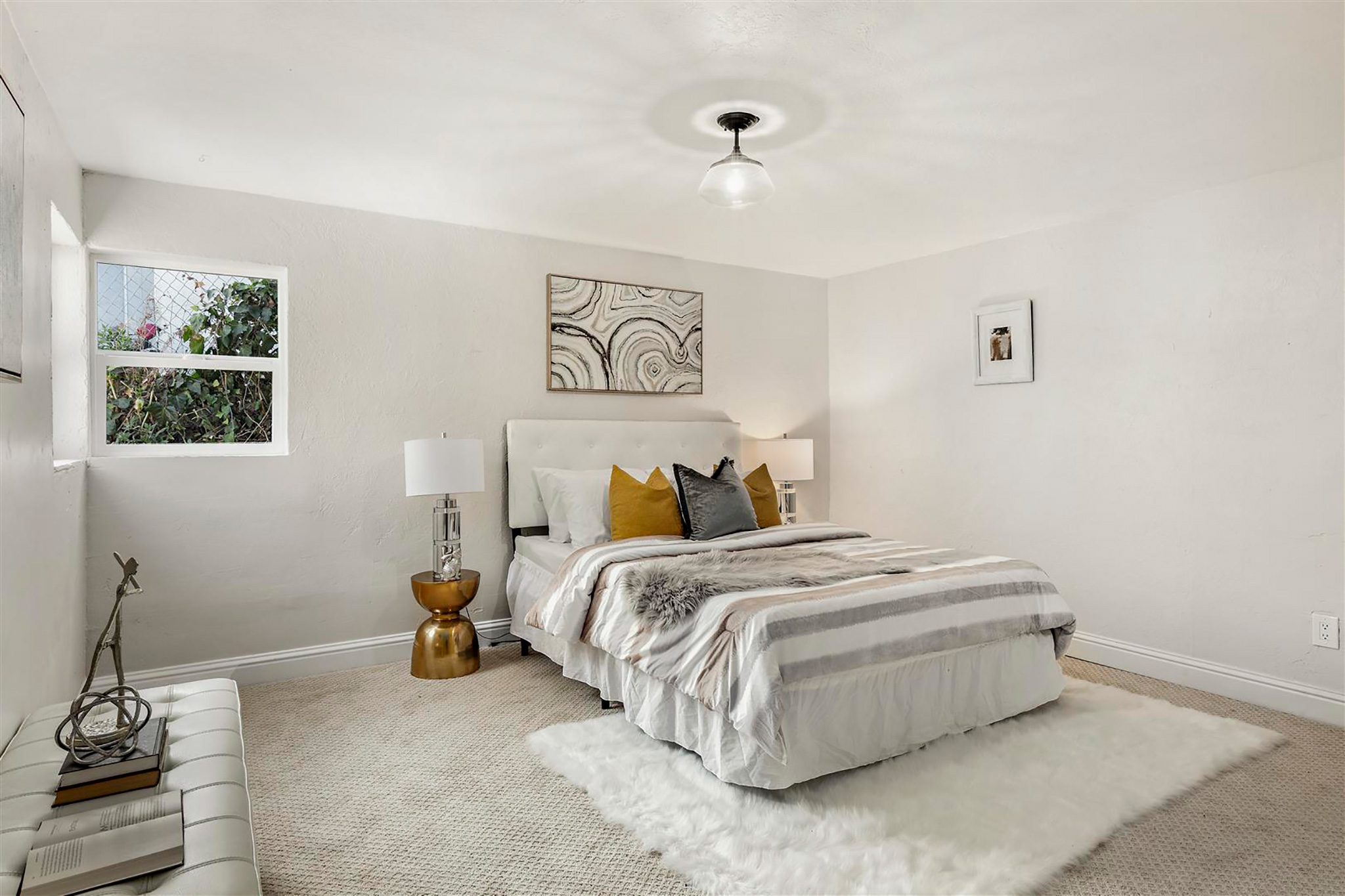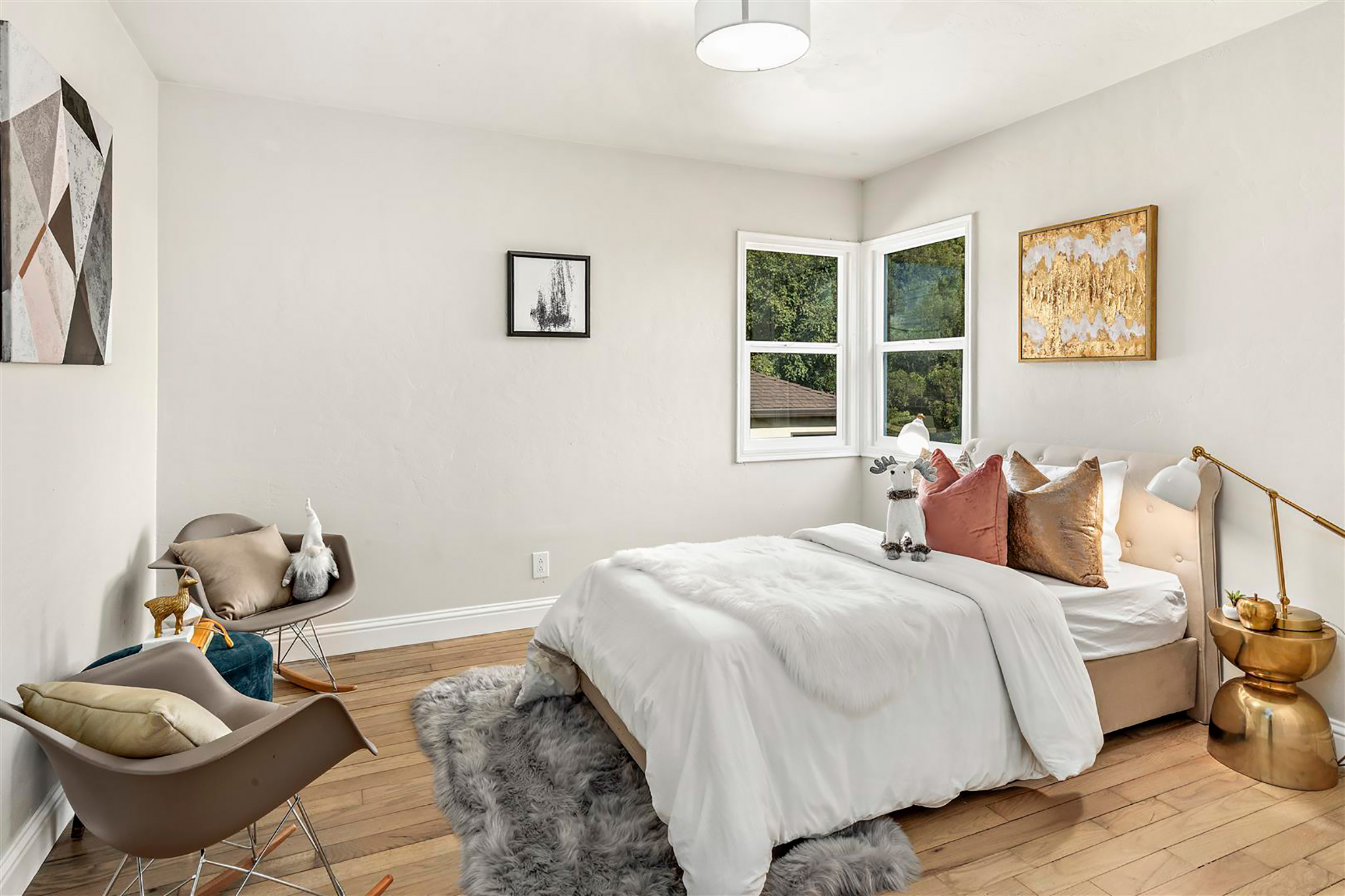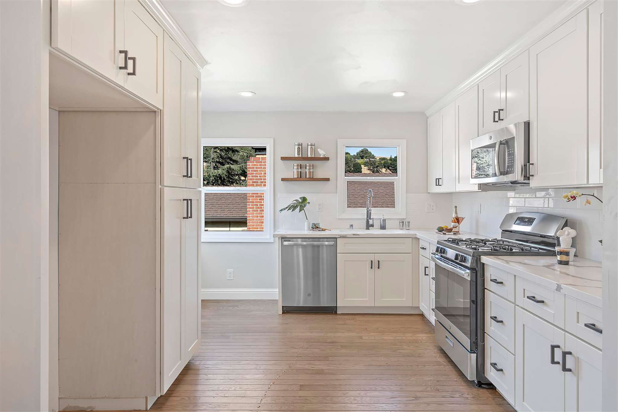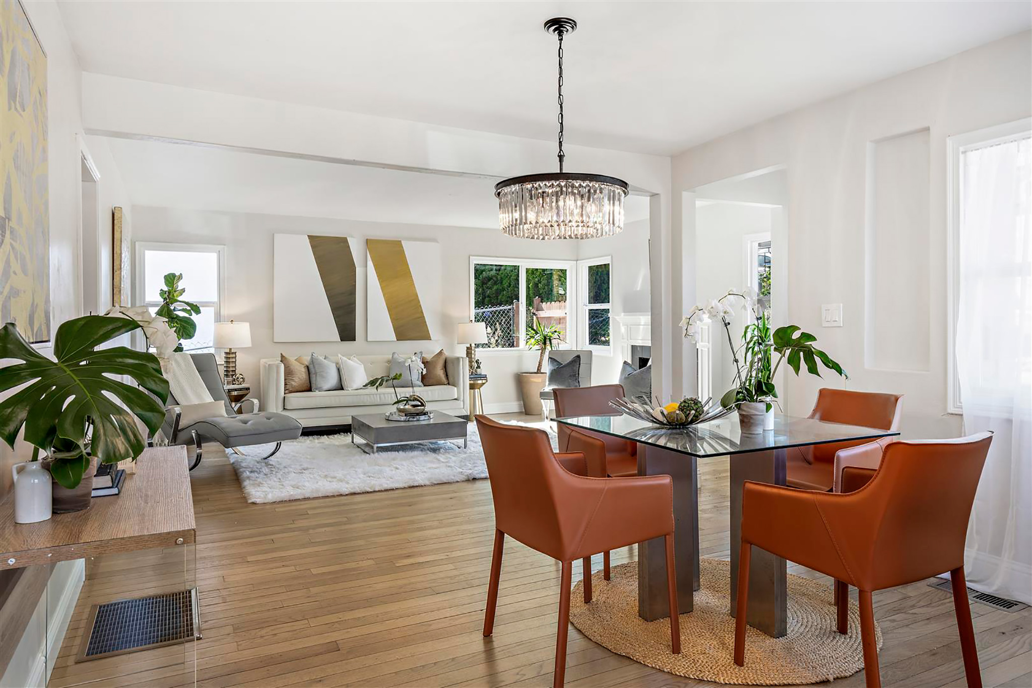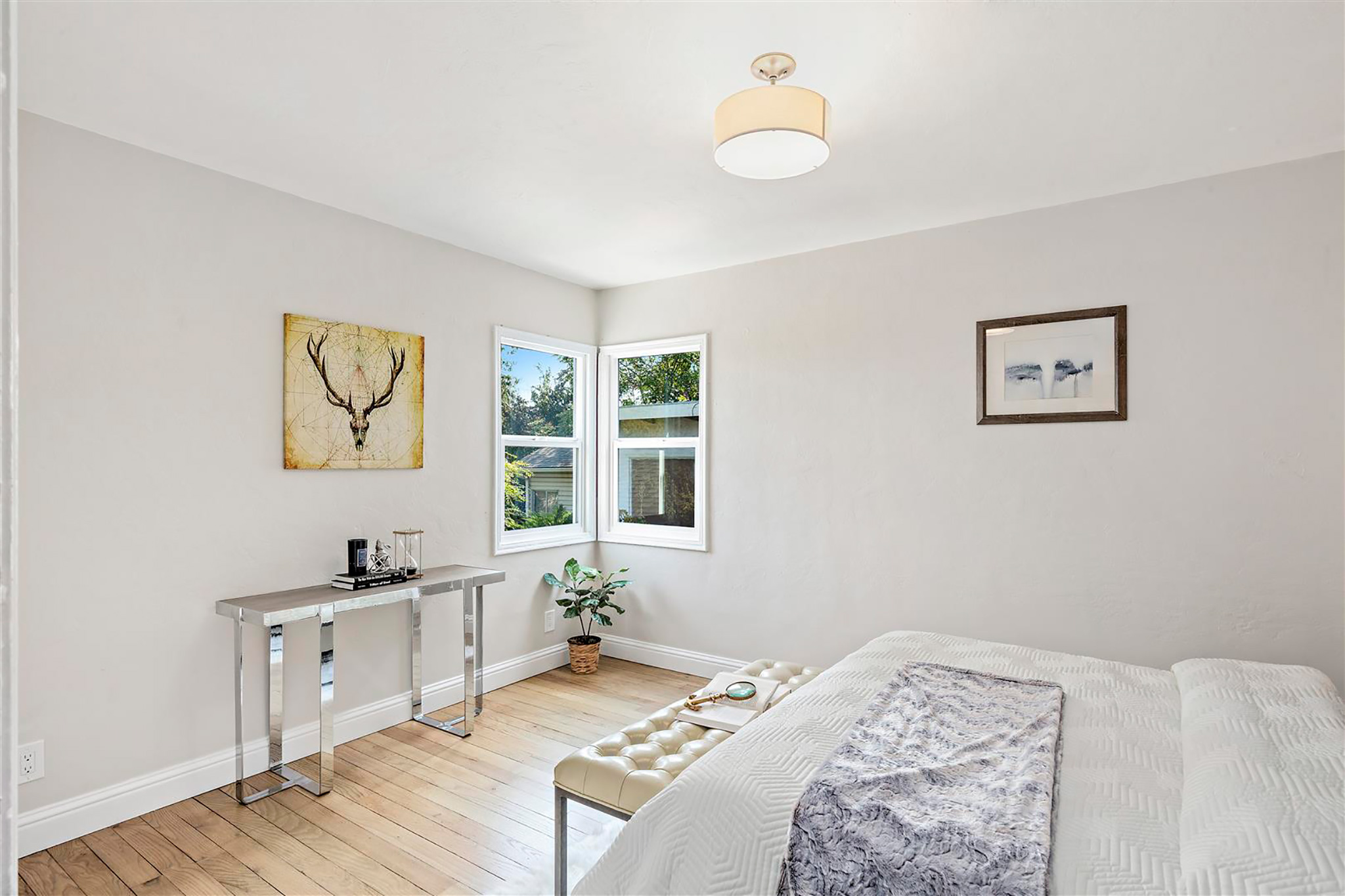 This charming 3+ bedroom, 2 bath home with an attached and permitted in-law unit complete and separate entrance. The main house with hardwood floors has an open floor plan, new kitchen and bath plus 2 light-filled bedrooms on the main floor and a third bedroom space on the lower level. The extensively remodeled chef’s kitchen has all new appliances (2019) – complete with an attractive chandelier over the dining room table. Contemporary, clean and handsome bathrooms – showcase designer-level fixtures and tile choices. The attached garage has interior access to the home.