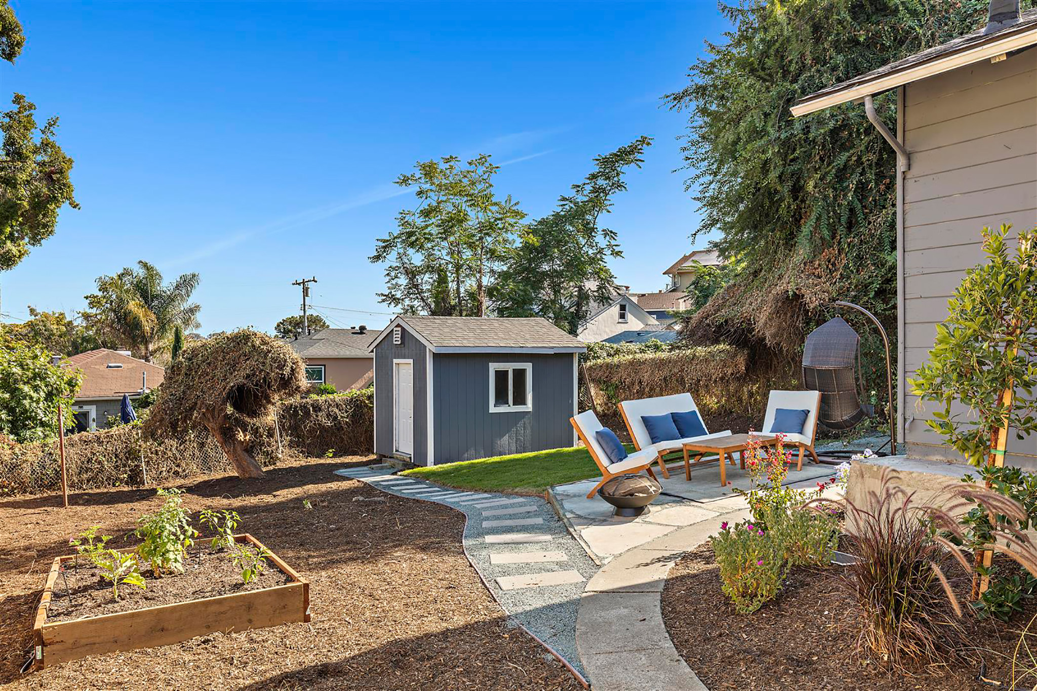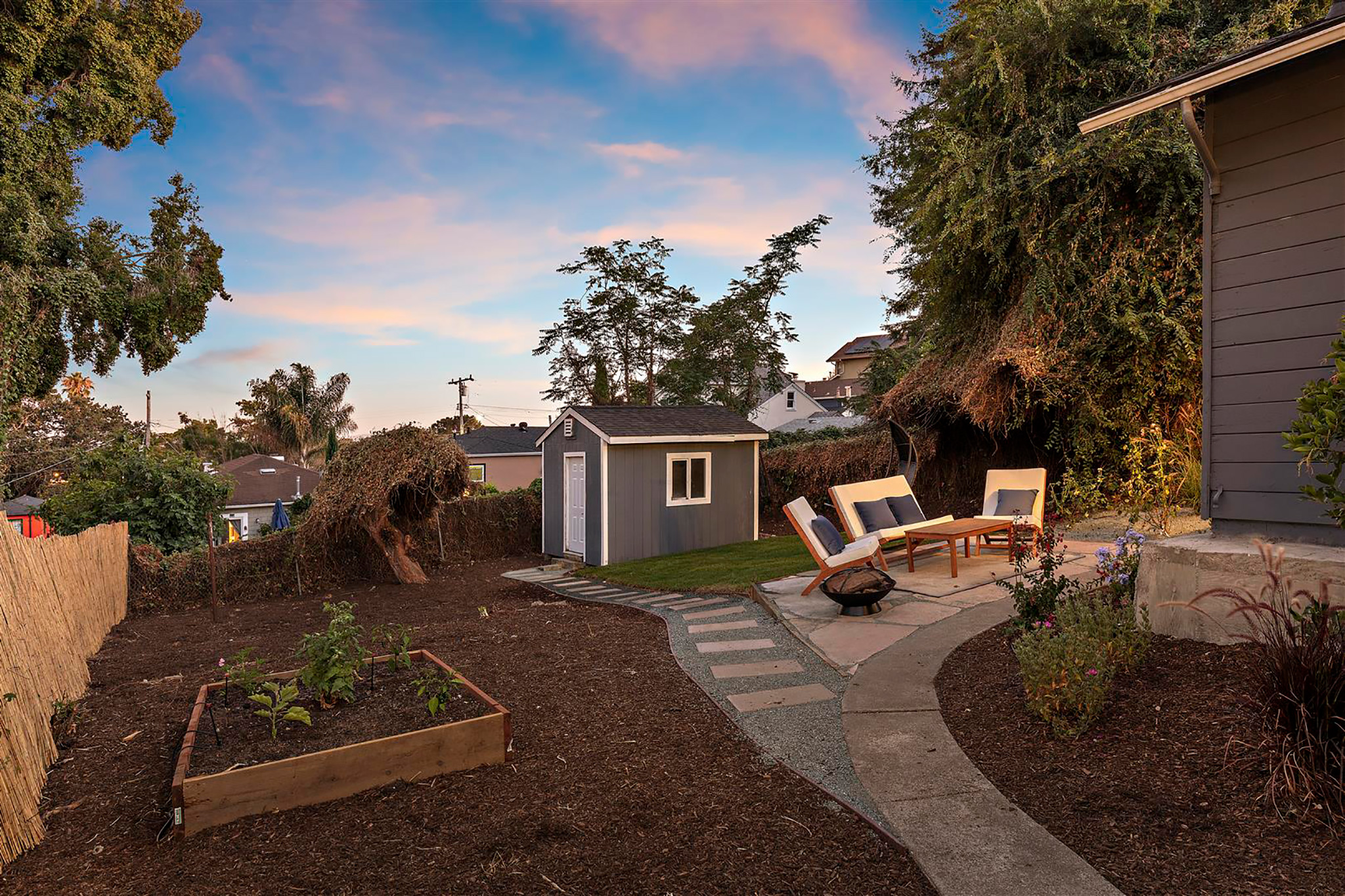 Additionally, in the backyard there is a patio for quality outdoor lounging and a detached tool shed. Opportunity and space for bountiful veggie beds - and the backyard is fenced in to safely corral your 4-legged friends.