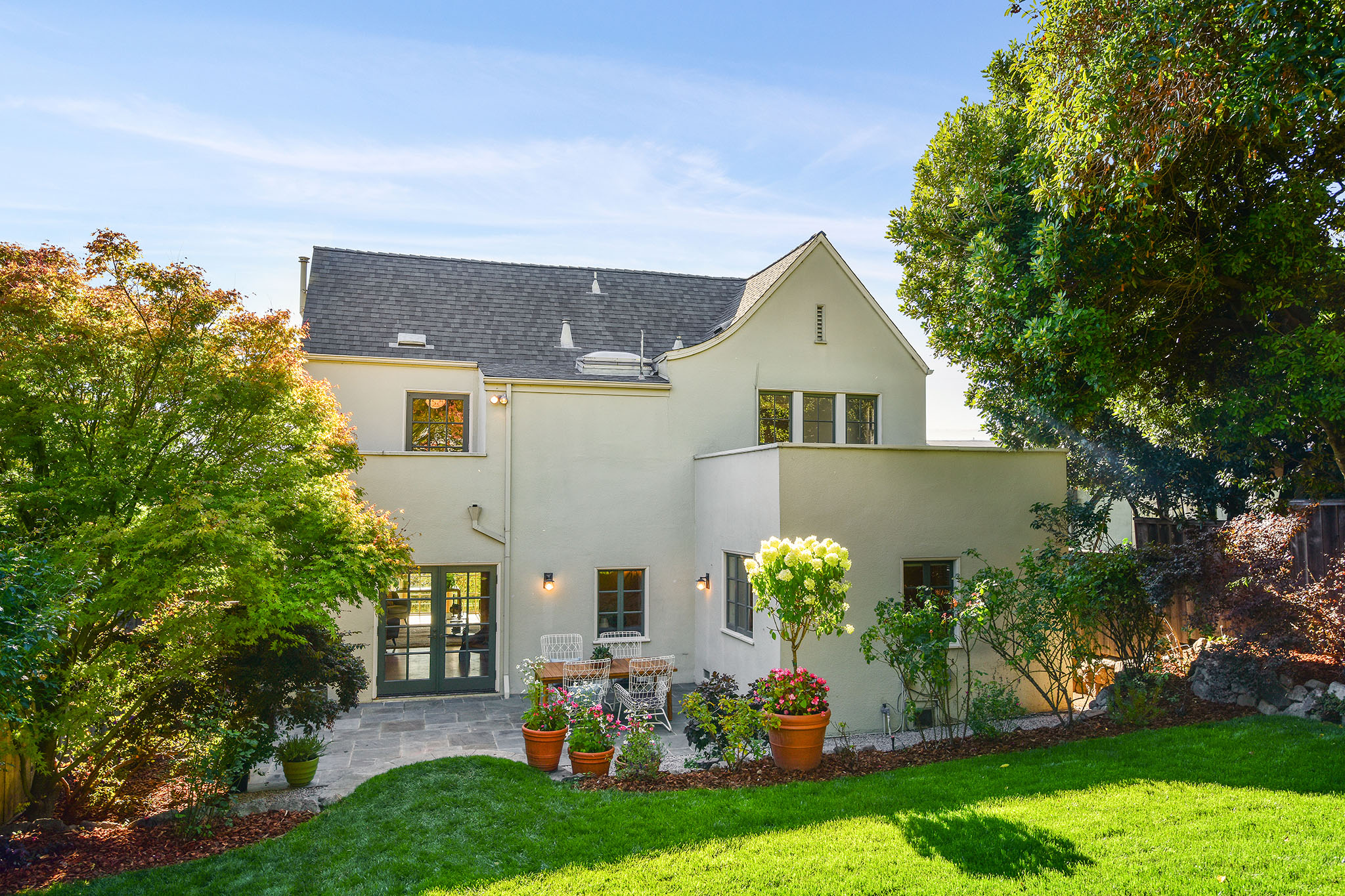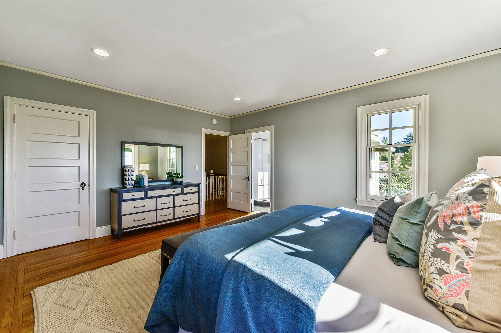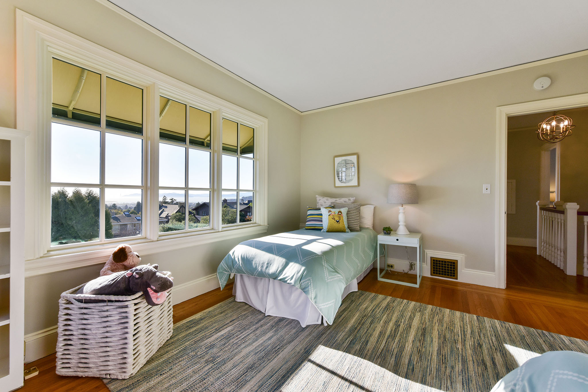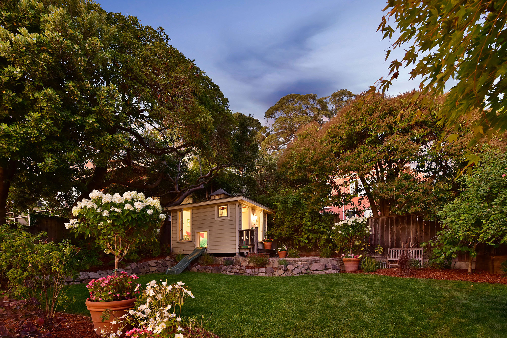 Return home to elegance that is both grand and cozy.; Period details and subtle upgrades grace the expansive common areas.; Guest room with bathroom tucked in back. Up the exquisite staircase you'll find four ample bedrooms, all with amazing light.; Elegant master suite seems to float above the Bay.; A yard like a pocket-park with sleep-in playhouse is the cherry on top!