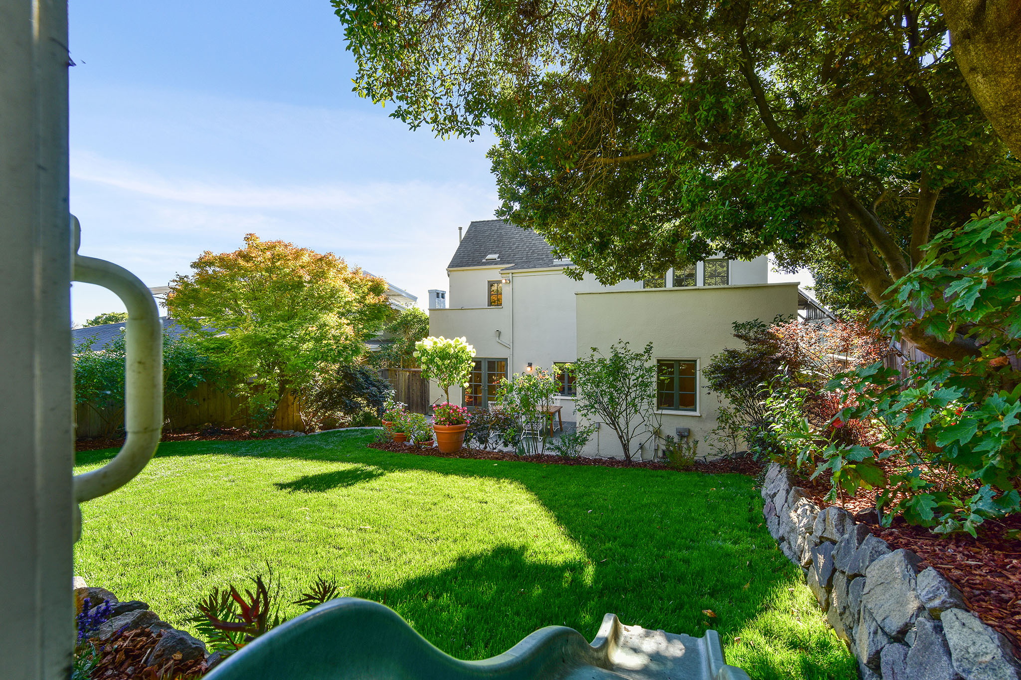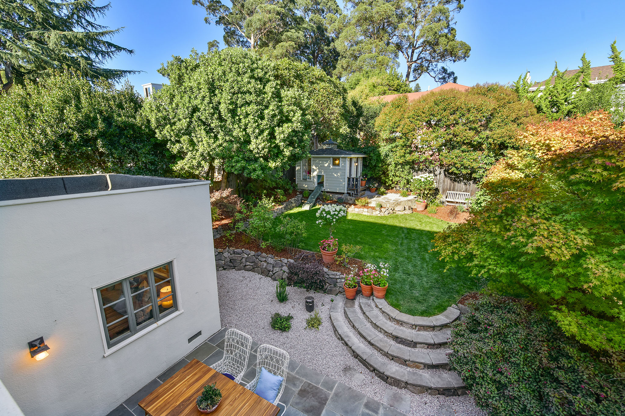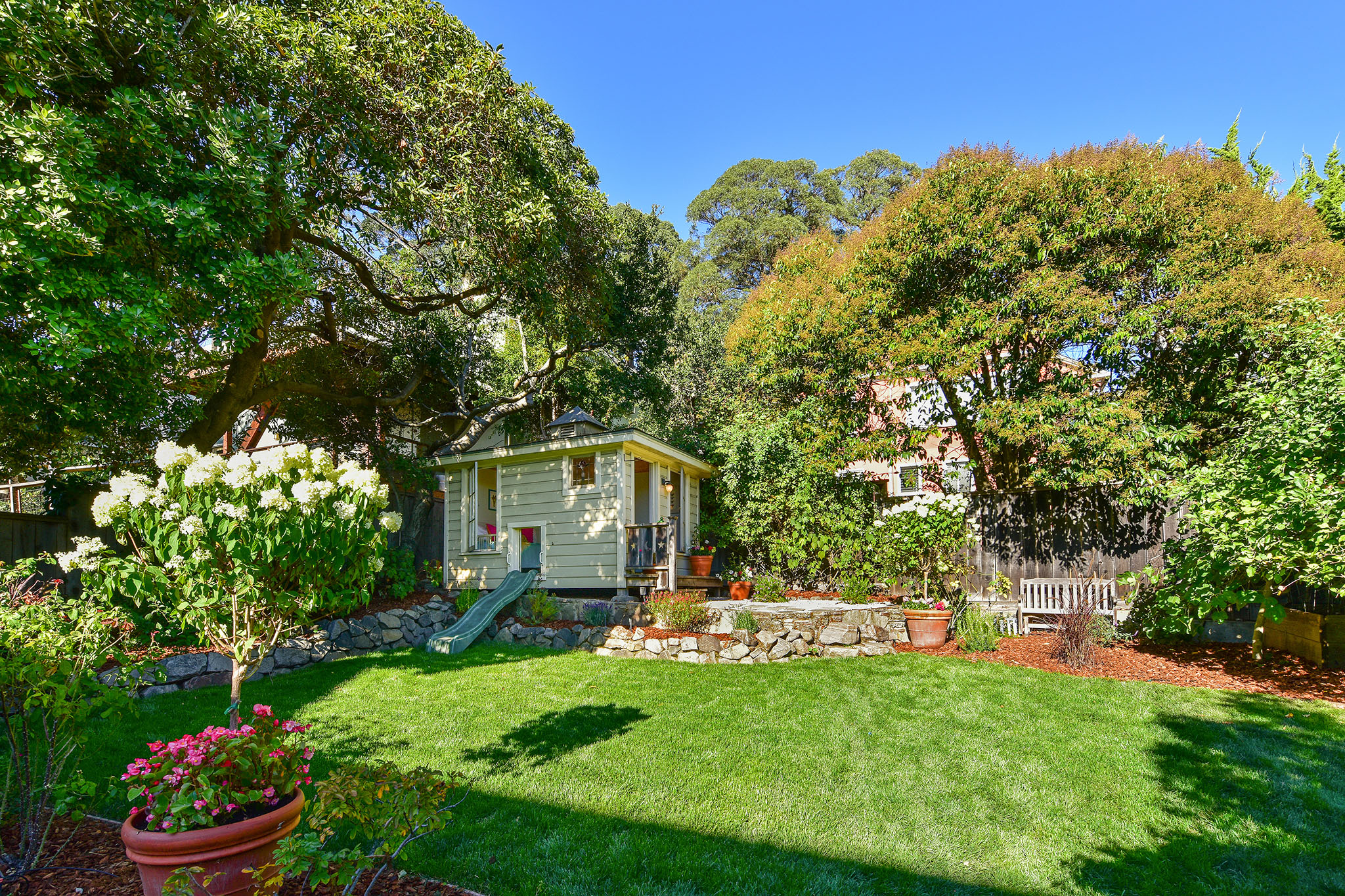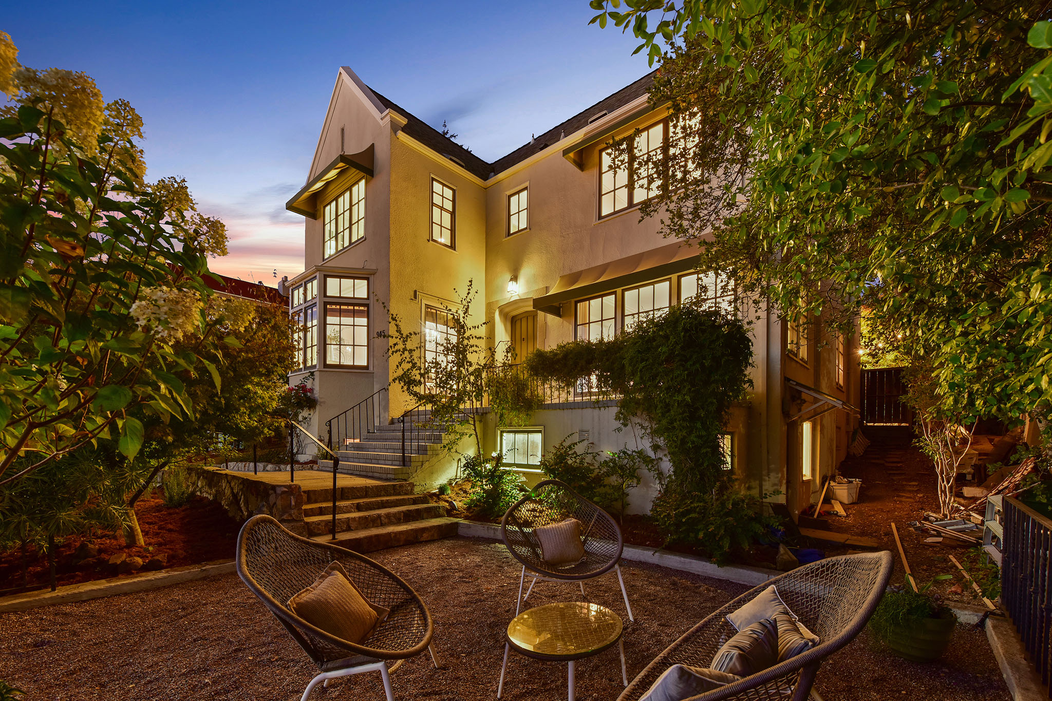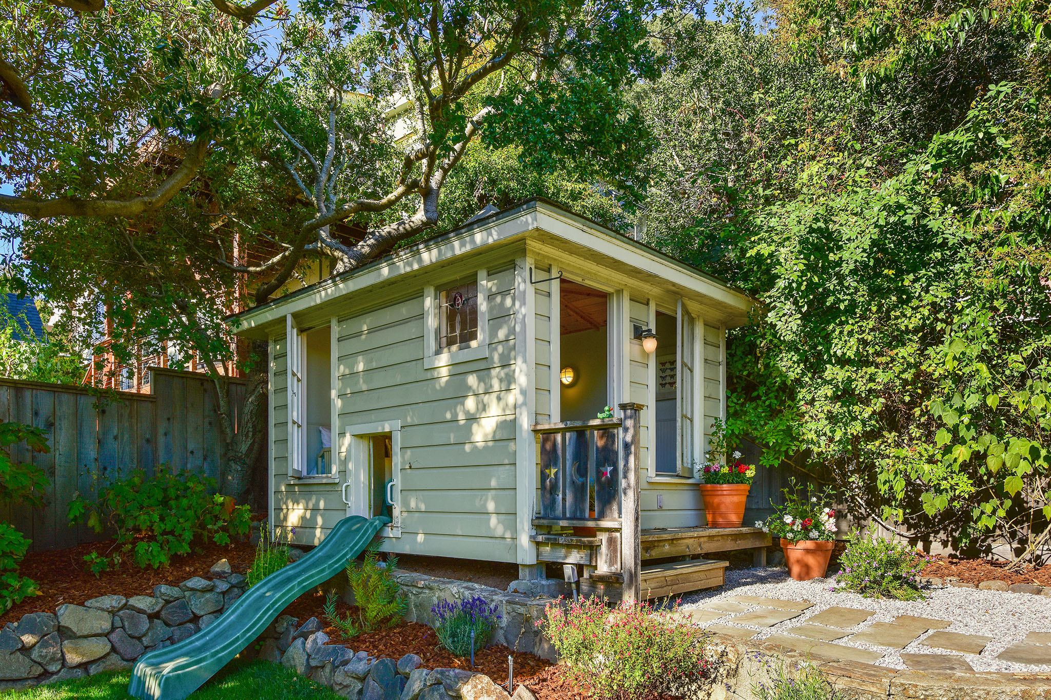 Return home to elegance that is both grand and cozy.; Period details and subtle upgrades grace the expansive common areas.; Guest room with bathroom tucked in back. Up the exquisite staircase you'll find four ample bedrooms, all with amazing light.; Elegant master suite seems to float above the Bay.; A yard like a pocket-park with sleep-in playhouse is the cherry on top!