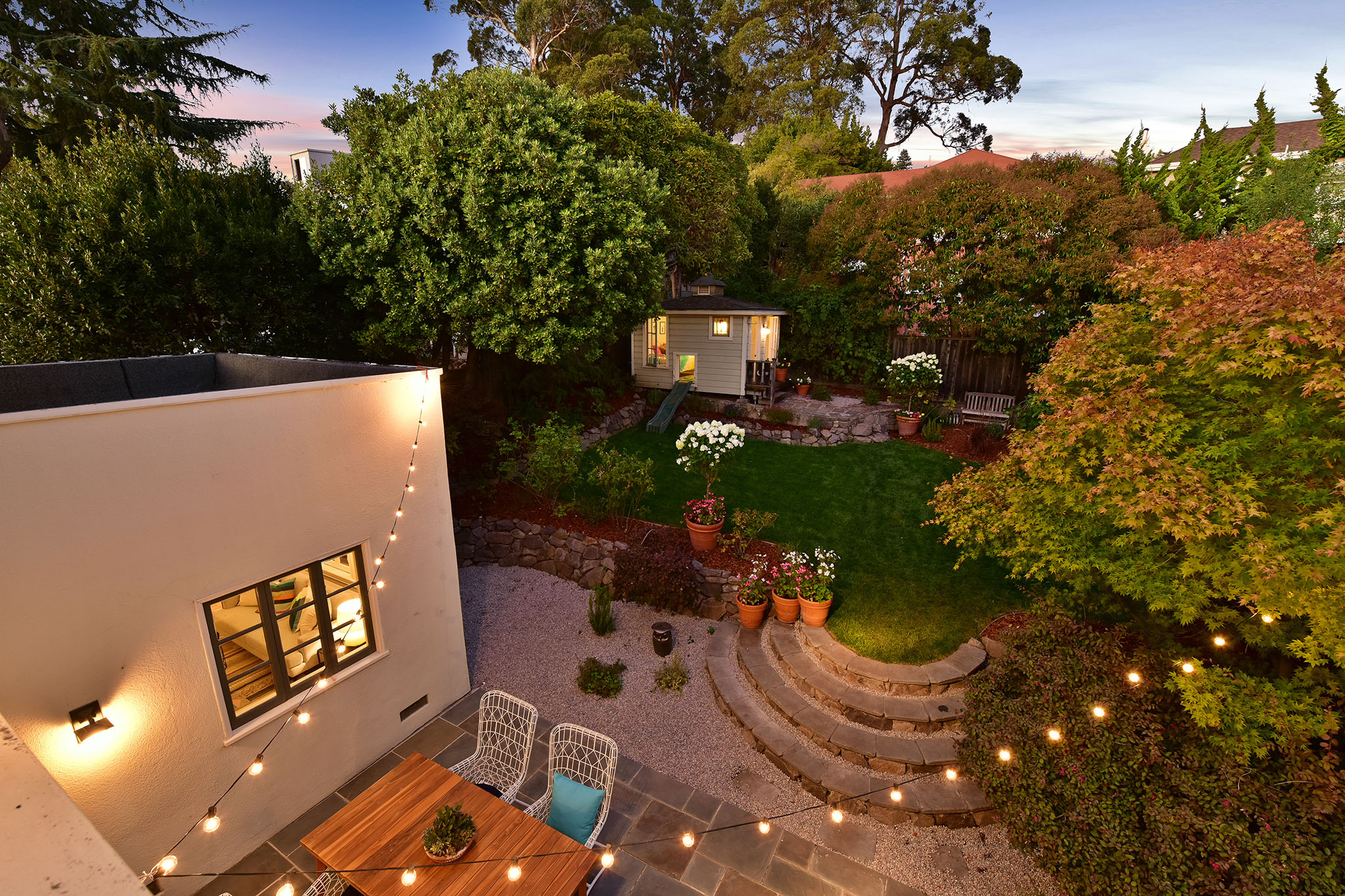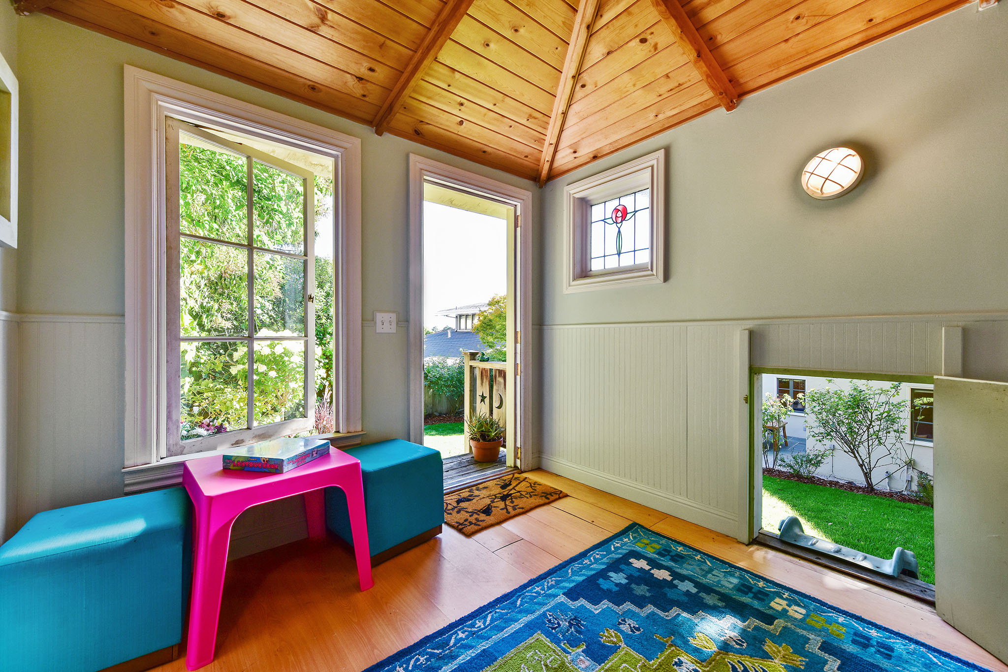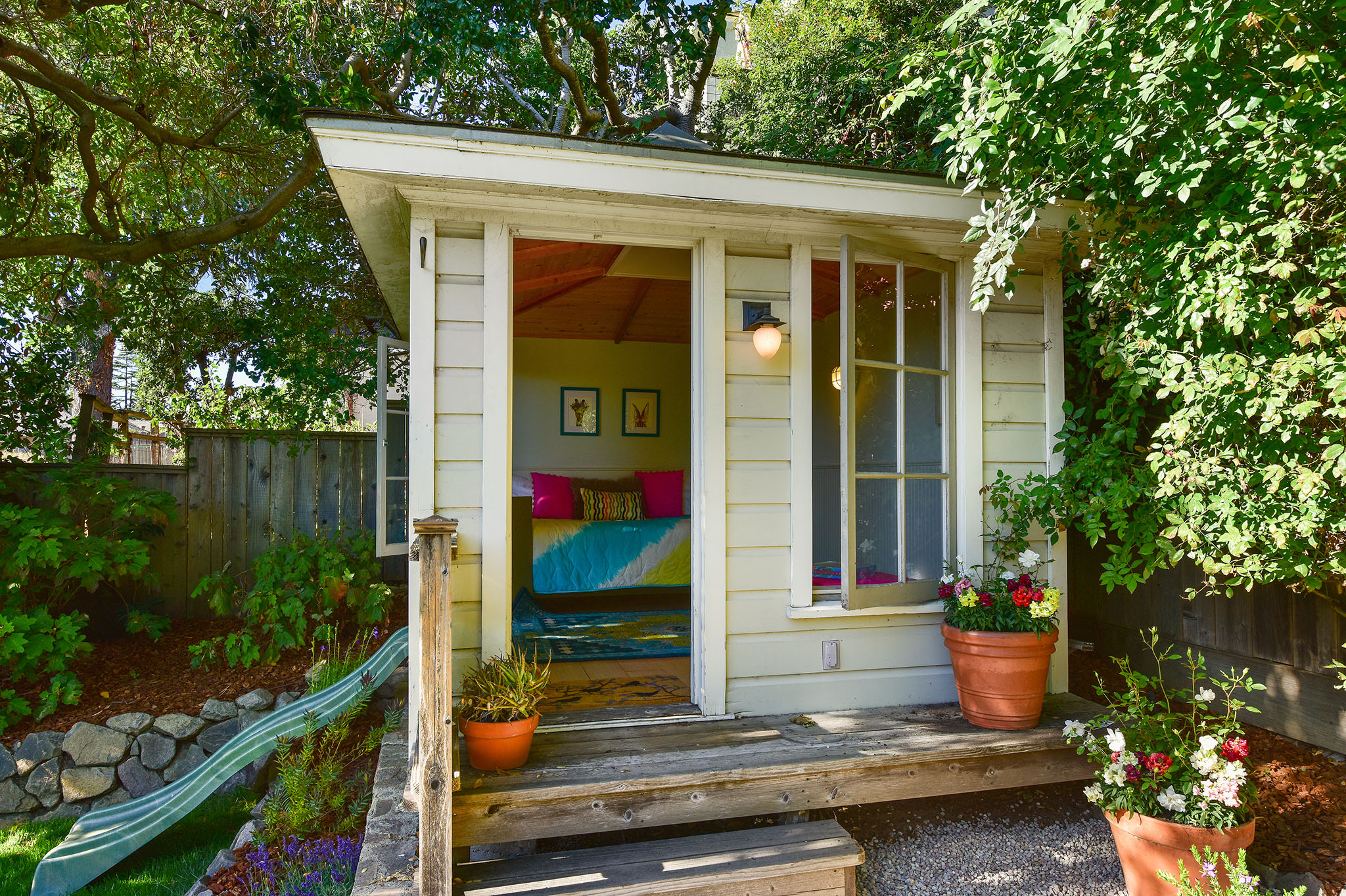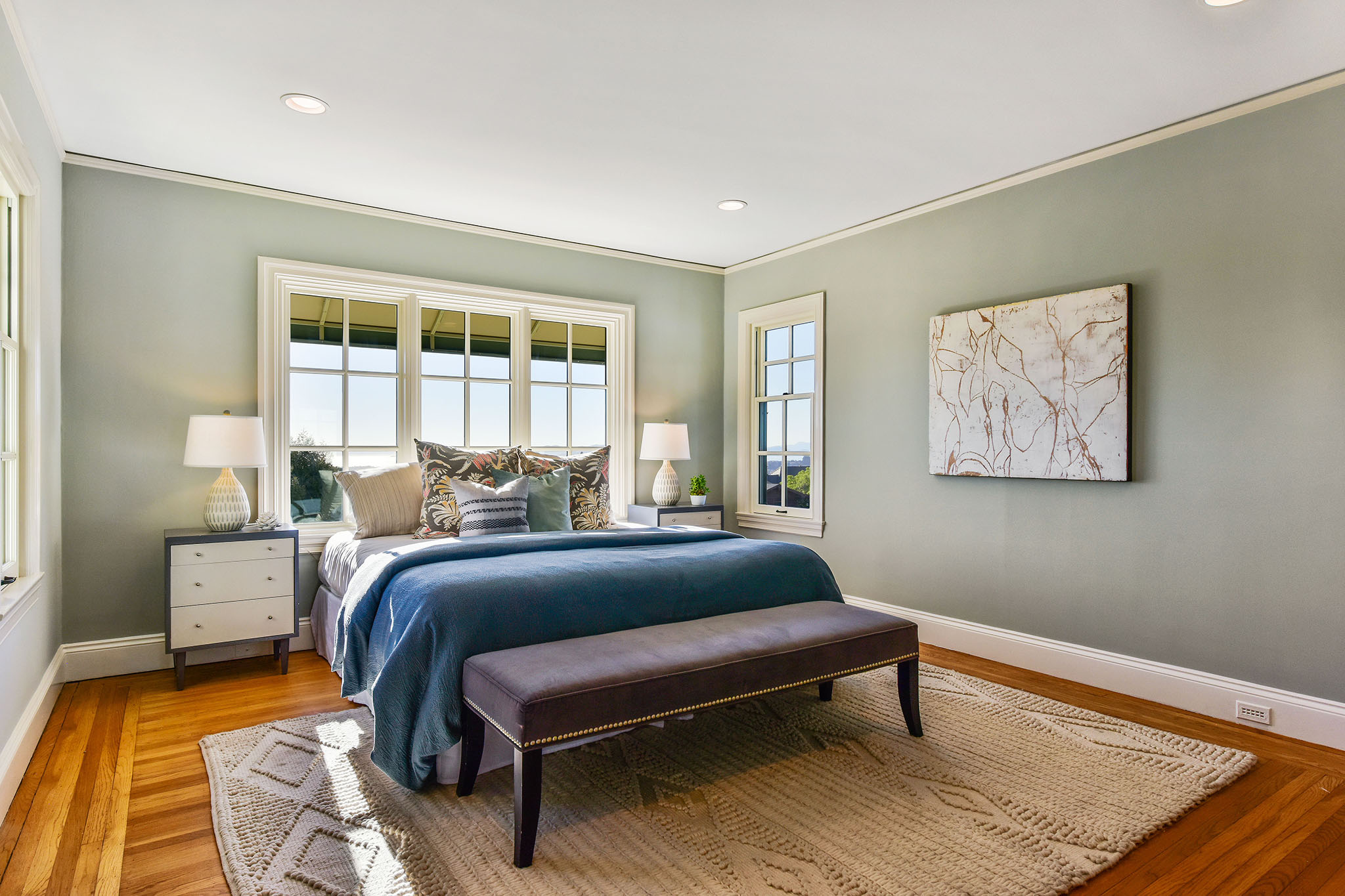 Return home to elegance that is both grand and cozy.; Period details and subtle upgrades grace the expansive common areas.; Guest room with bathroom tucked in back. Up the exquisite staircase you'll find four ample bedrooms, all with amazing light.; Elegant master suite seems to float above the Bay.; A yard like a pocket-park with sleep-in playhouse is the cherry on top!