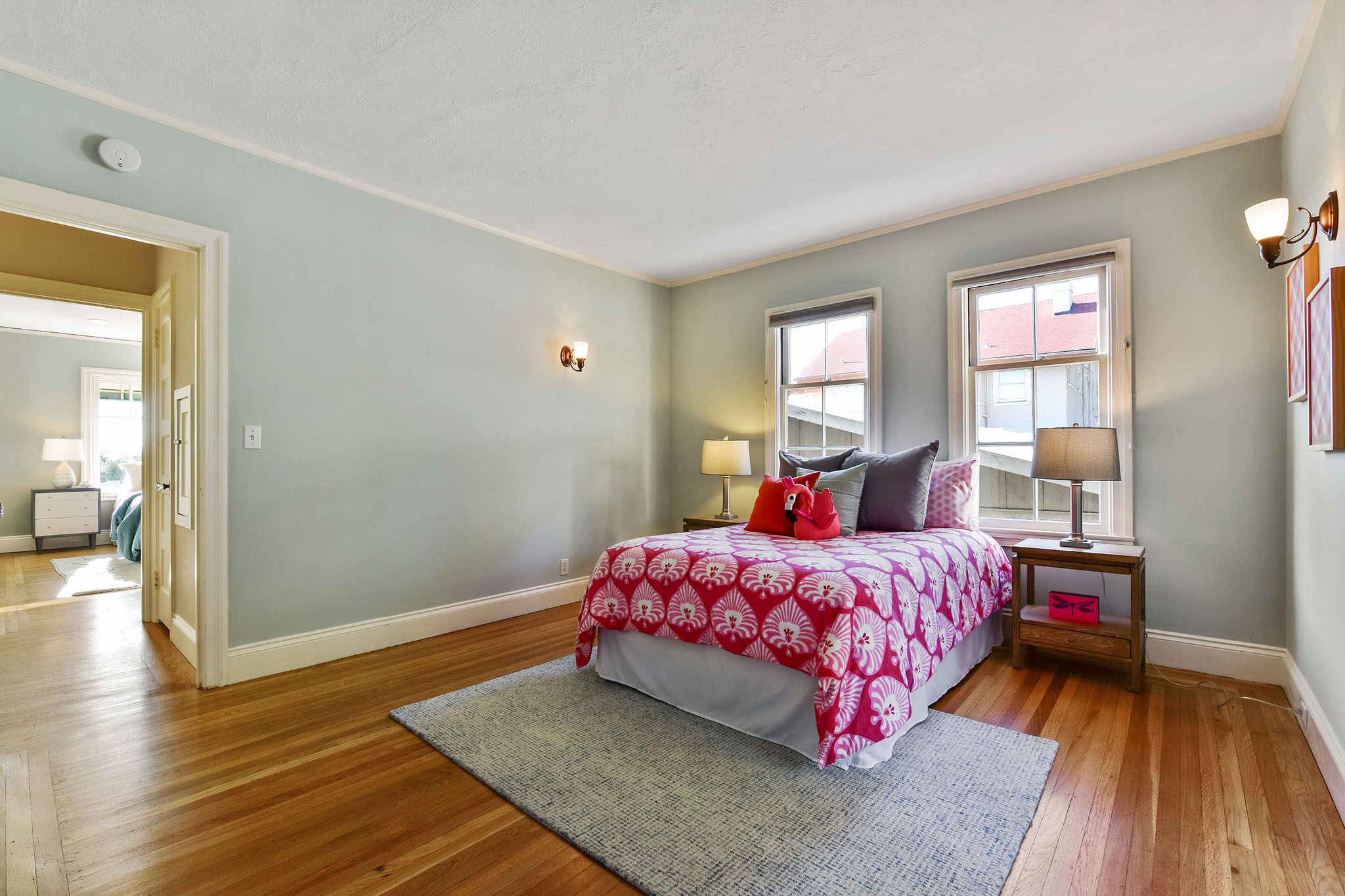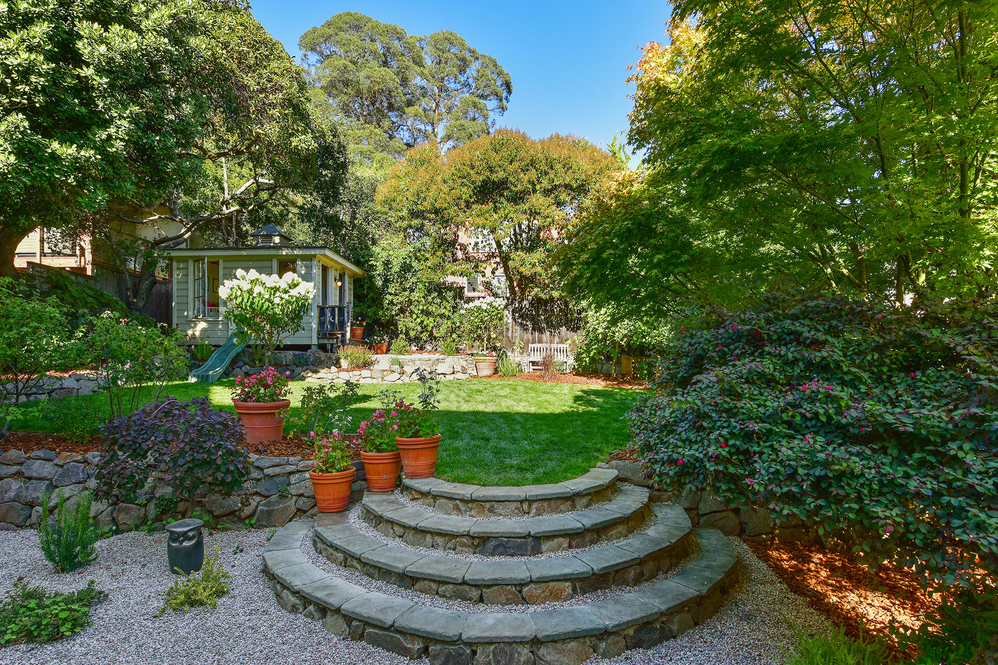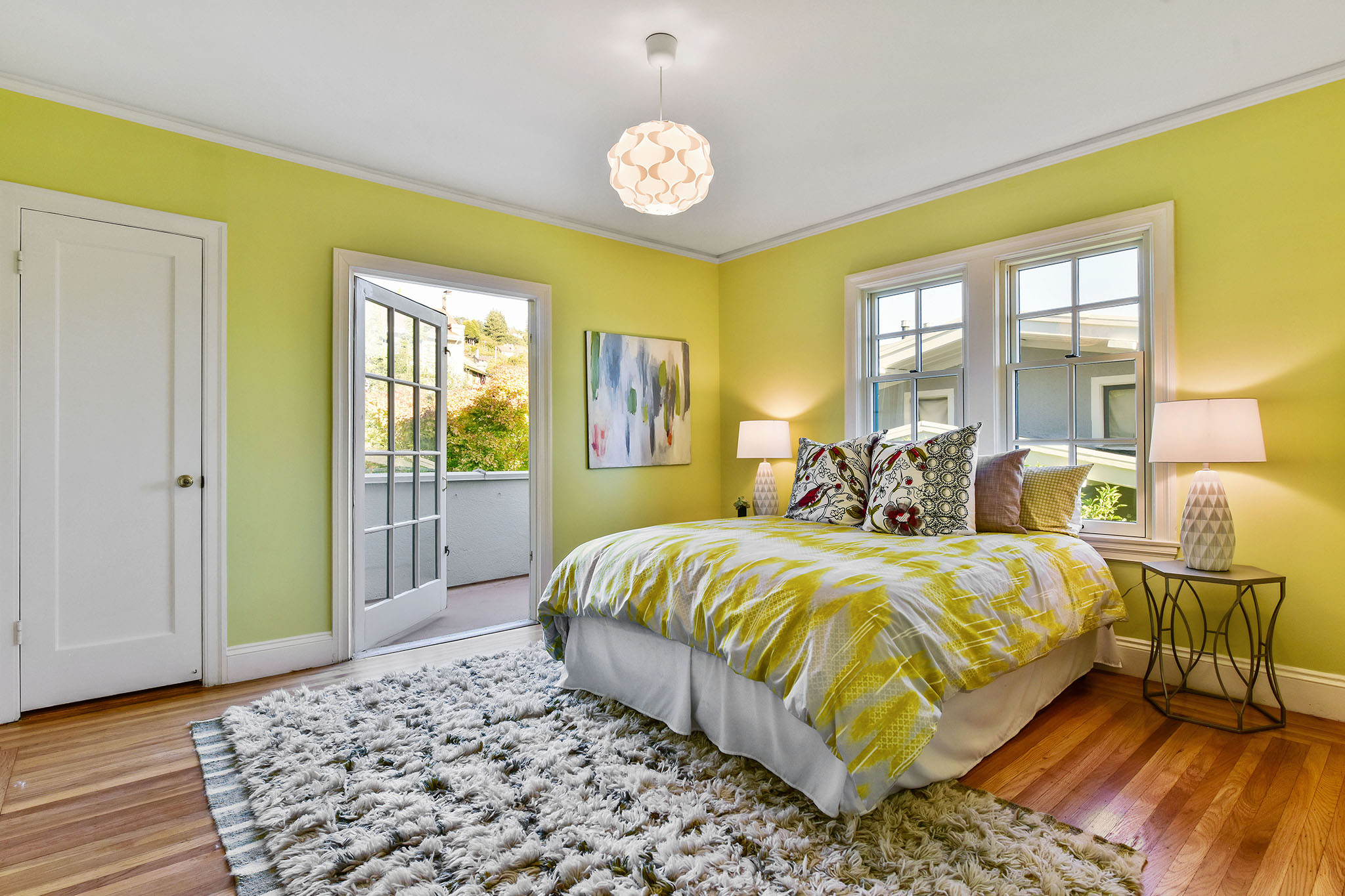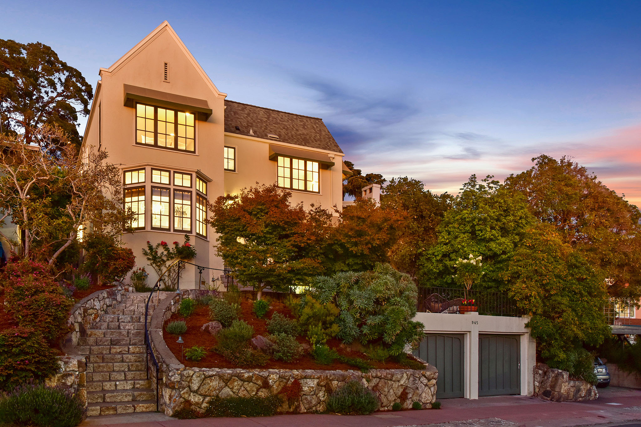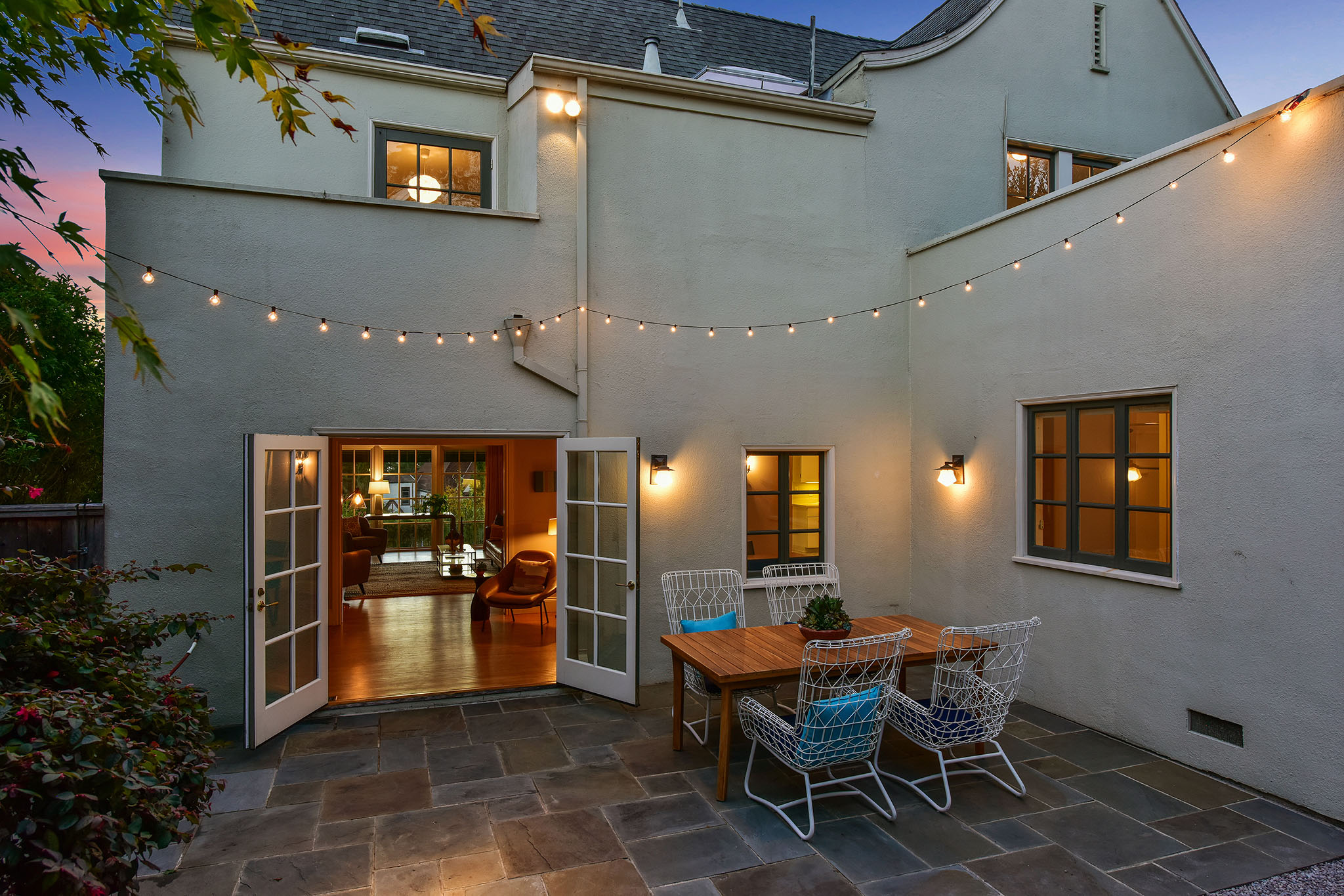 Return home to elegance that is both grand and cozy.; Period details and subtle upgrades grace the expansive common areas.; Guest room with bathroom tucked in back. Up the exquisite staircase you'll find four ample bedrooms, all with amazing light.; Elegant master suite seems to float above the Bay.; A yard like a pocket-park with sleep-in playhouse is the cherry on top!