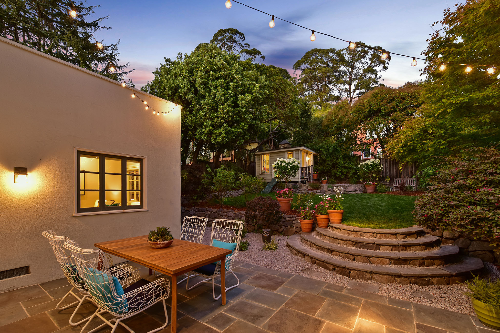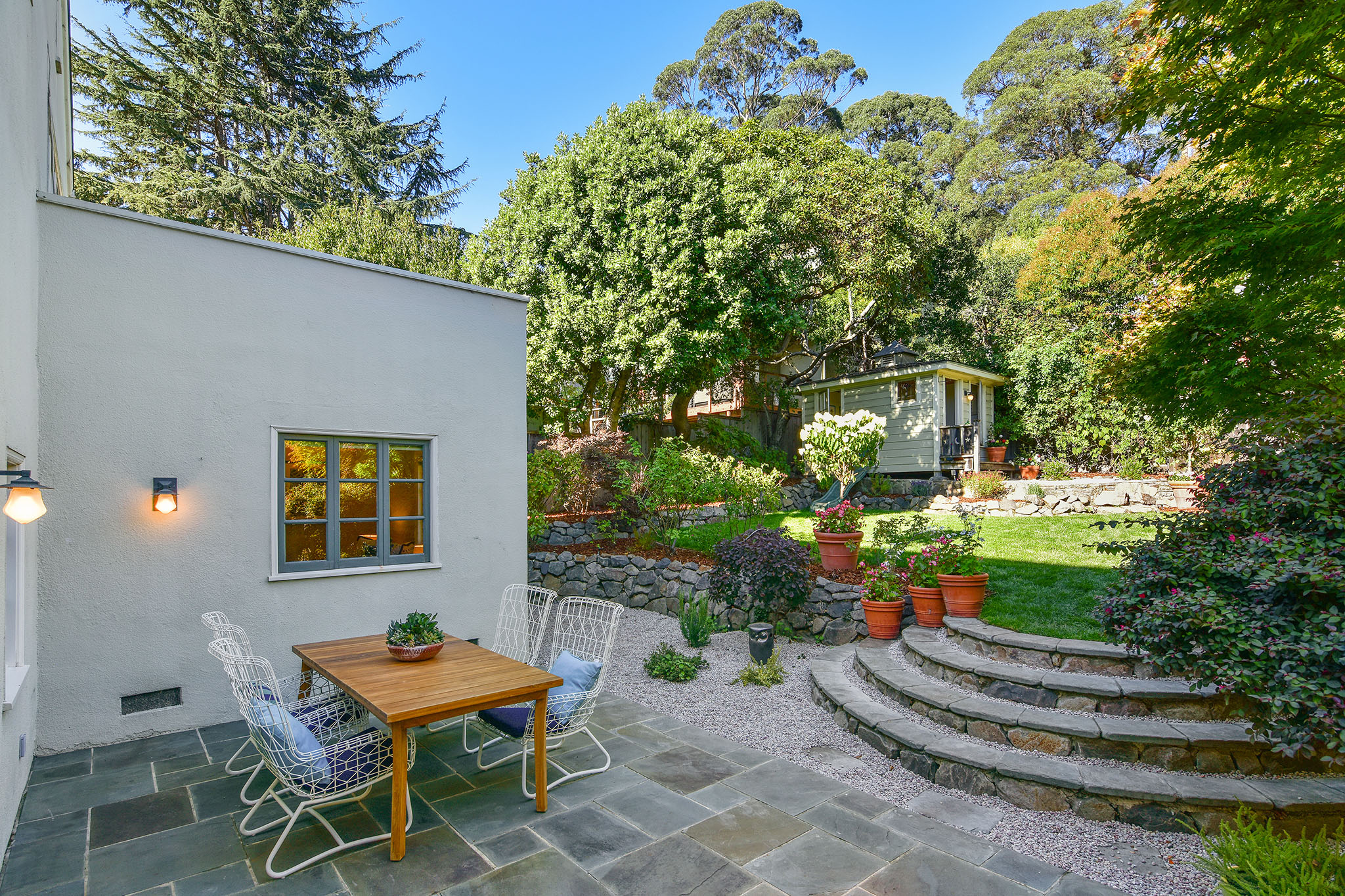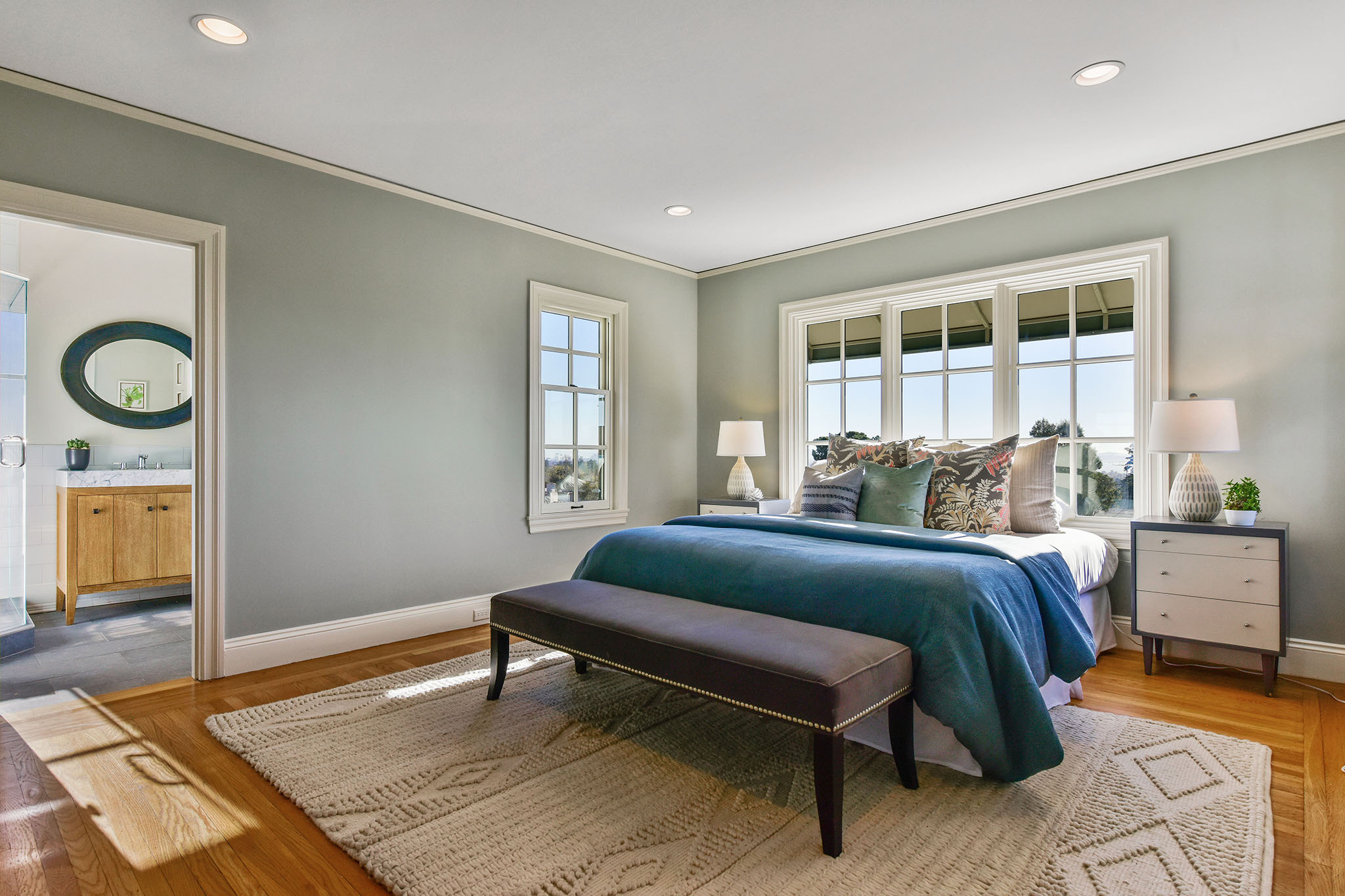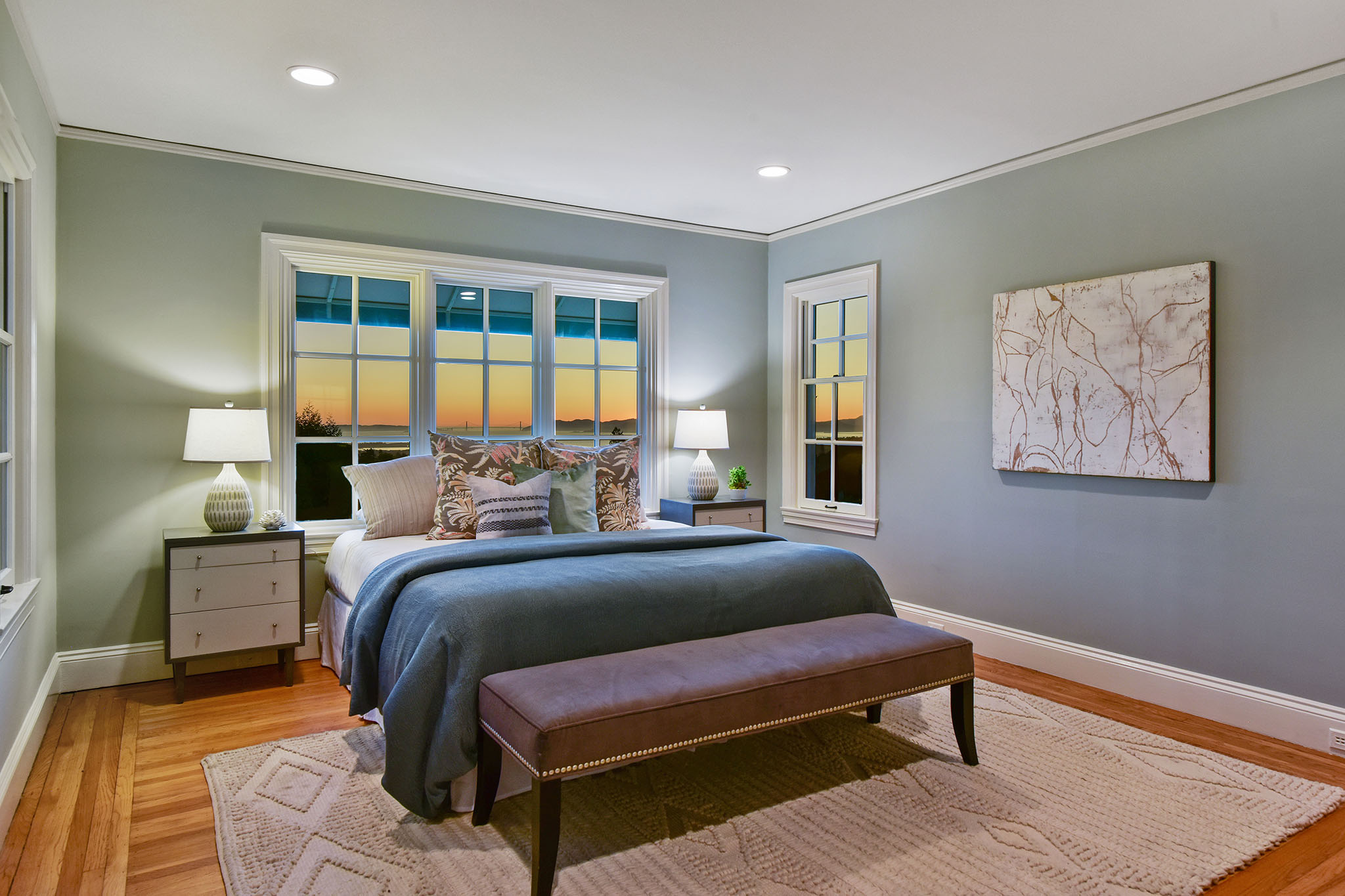 Return home to elegance that is both grand and cozy.; Period details and subtle upgrades grace the expansive common areas.; Guest room with bathroom tucked in back. Up the exquisite staircase you'll find four ample bedrooms, all with amazing light.; Elegant master suite seems to float above the Bay.; A yard like a pocket-park with sleep-in playhouse is the cherry on top!