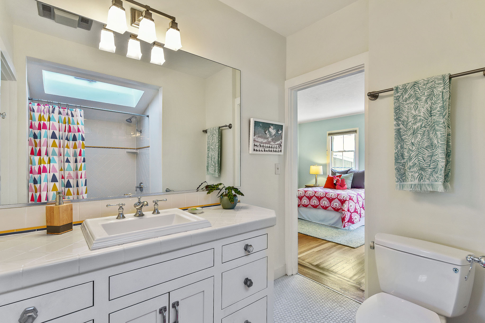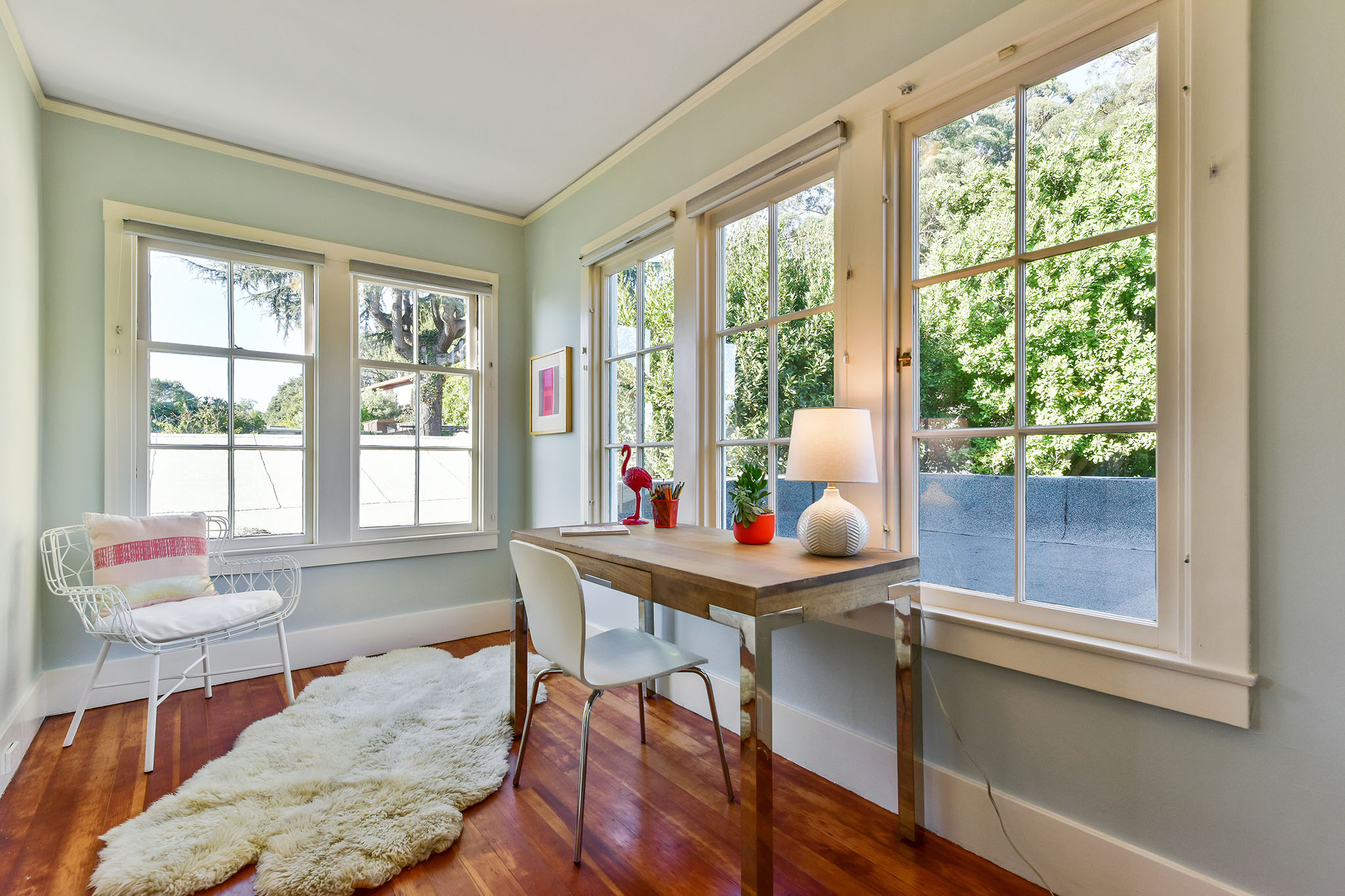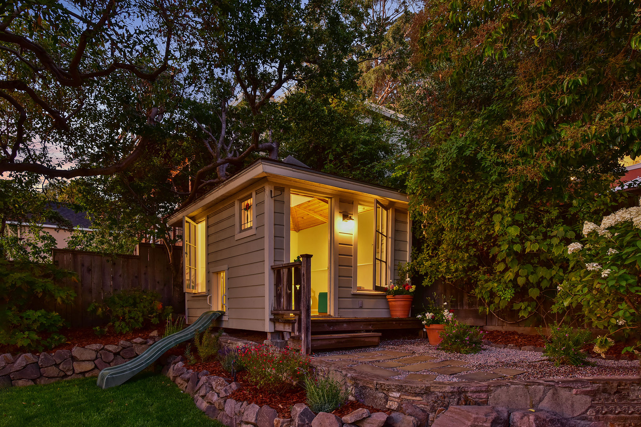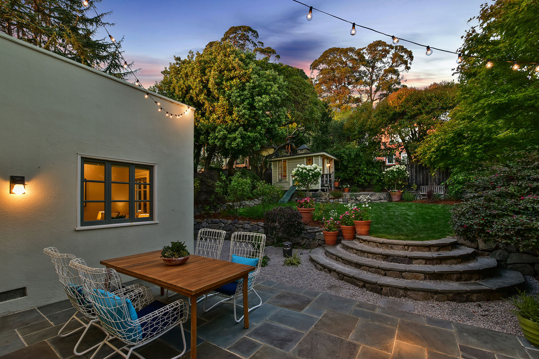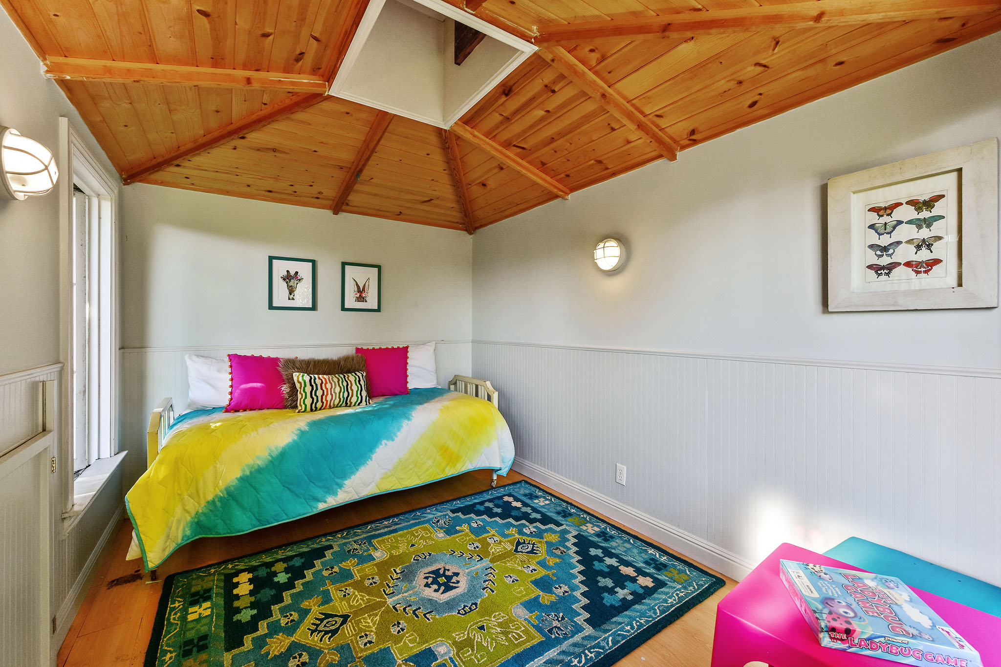 Return home to elegance that is both grand and cozy.; Period details and subtle upgrades grace the expansive common areas.; Guest room with bathroom tucked in back. Up the exquisite staircase you'll find four ample bedrooms, all with amazing light.; Elegant master suite seems to float above the Bay.; A yard like a pocket-park with sleep-in playhouse is the cherry on top!