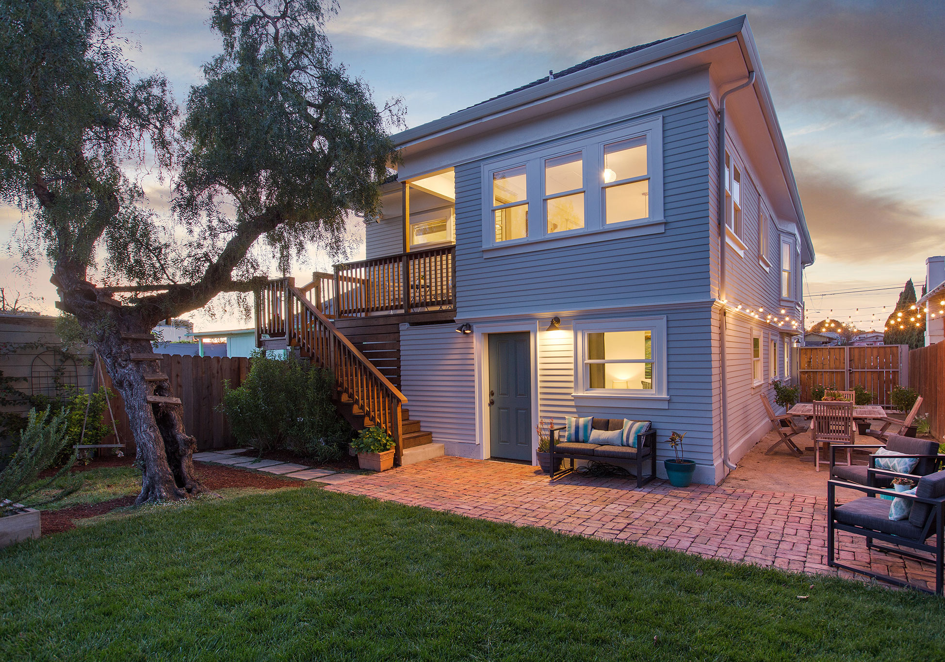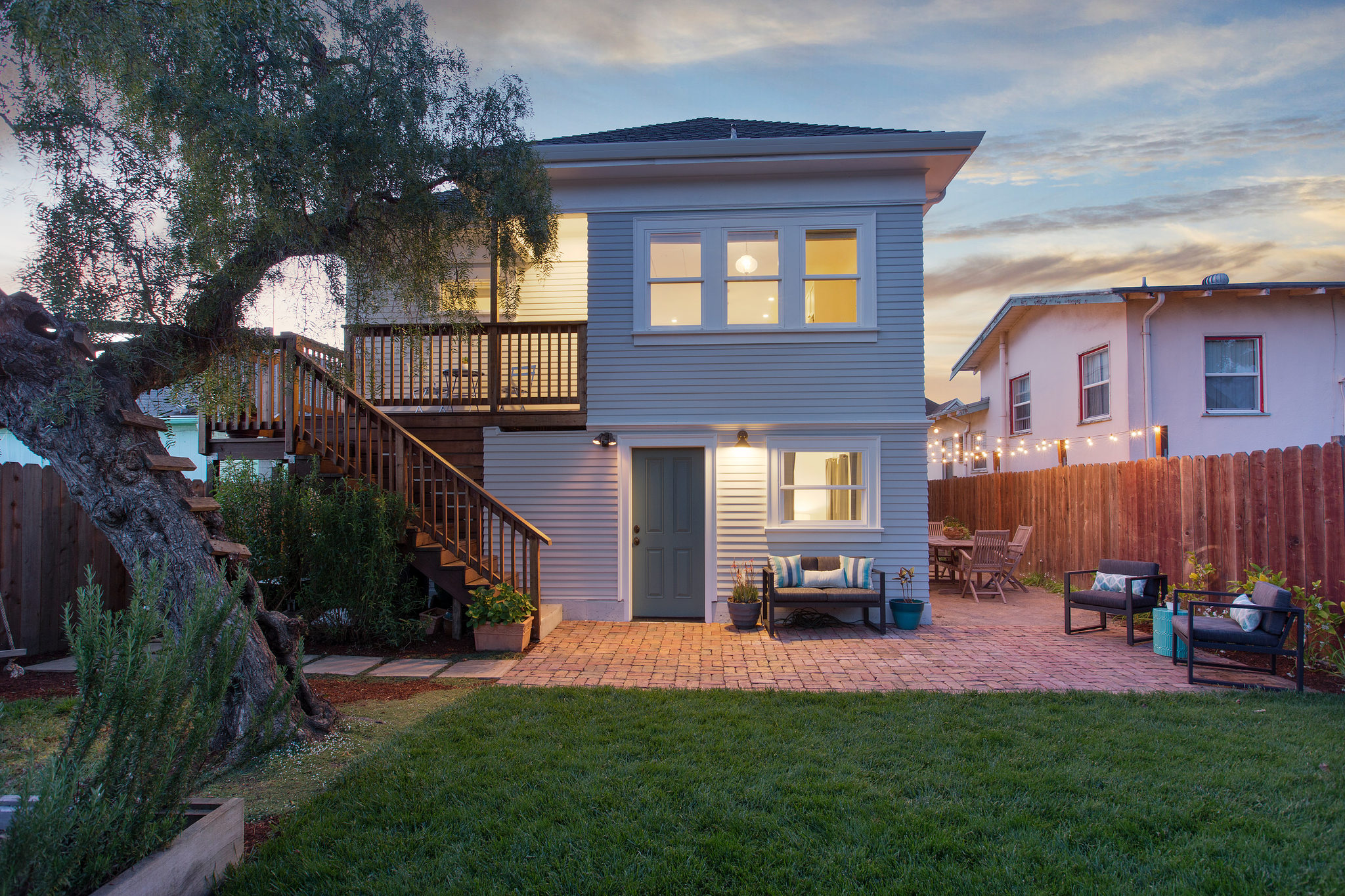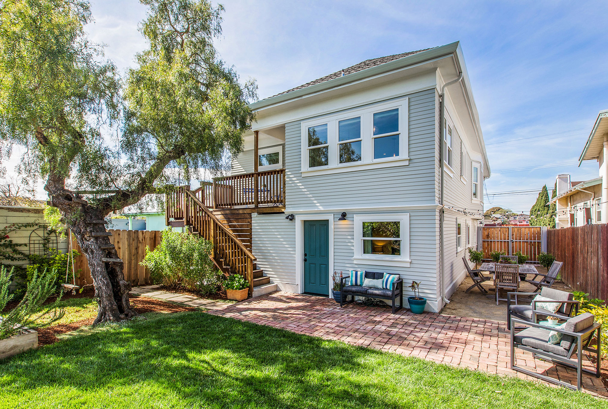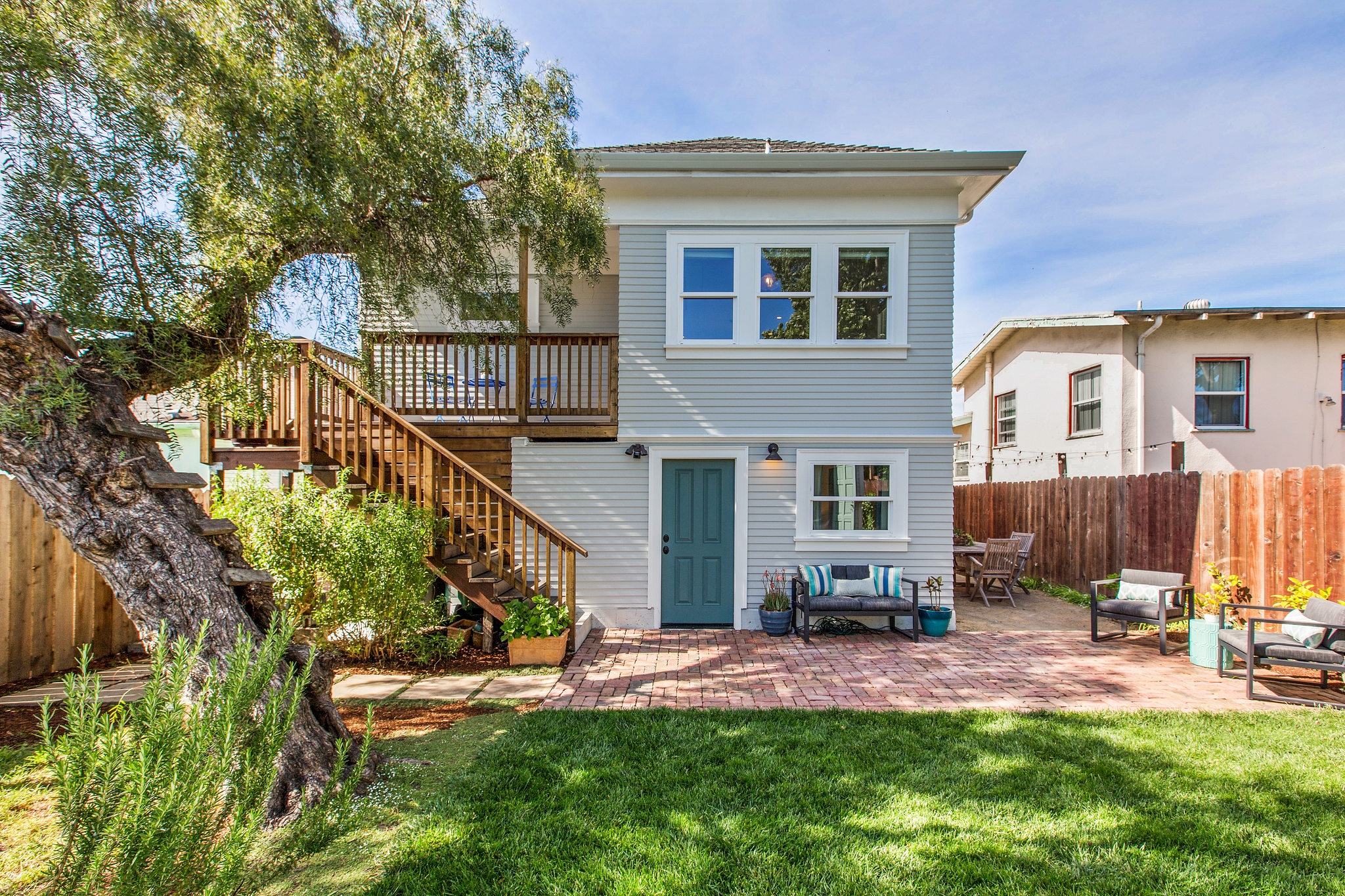 100% new exterior siding on first floor; restored redwood siding on second floor