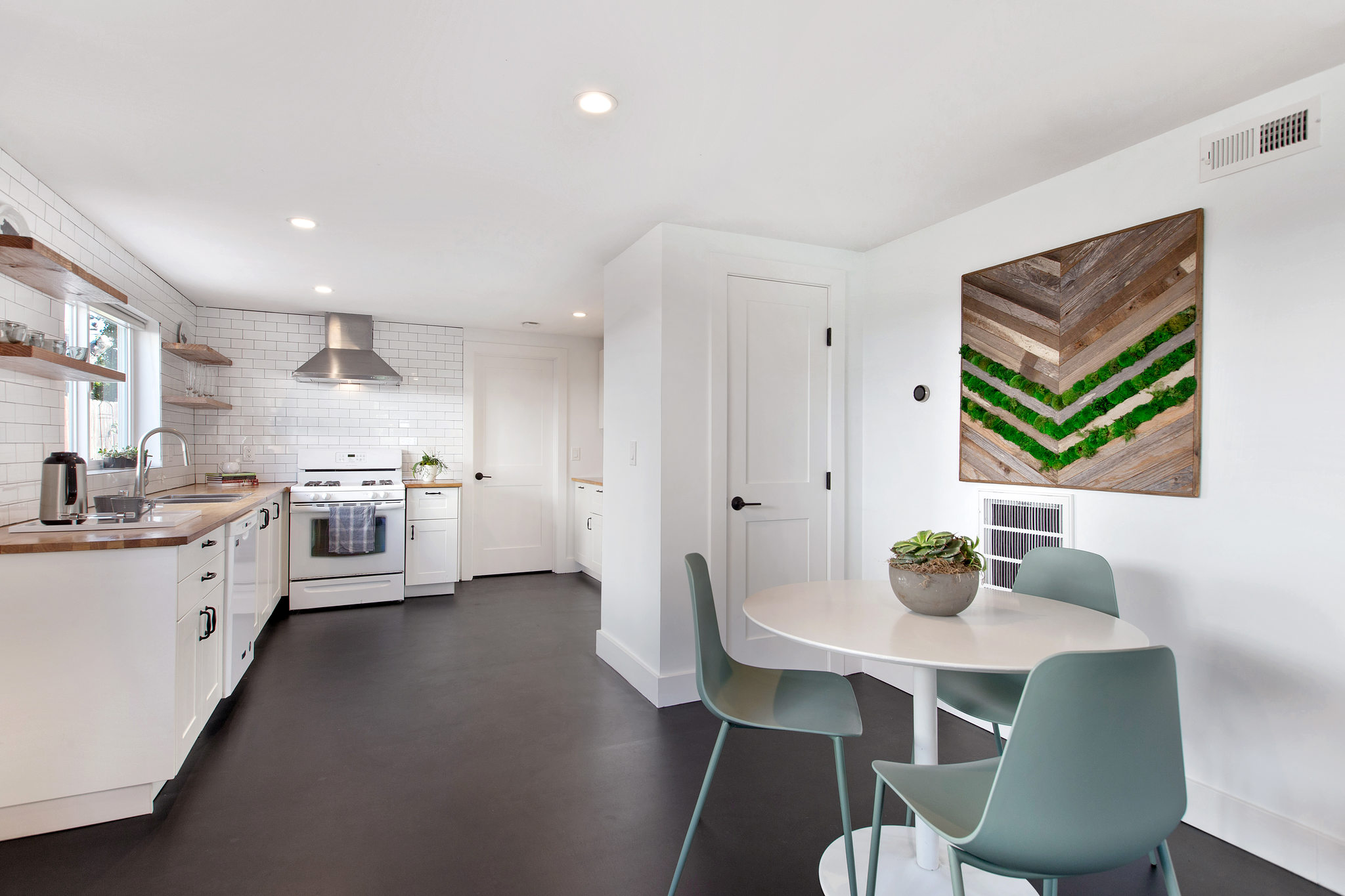 Full interior renovation: all new flooring, drywall, cabinets, appliances, plumbing fixtures, etc.;