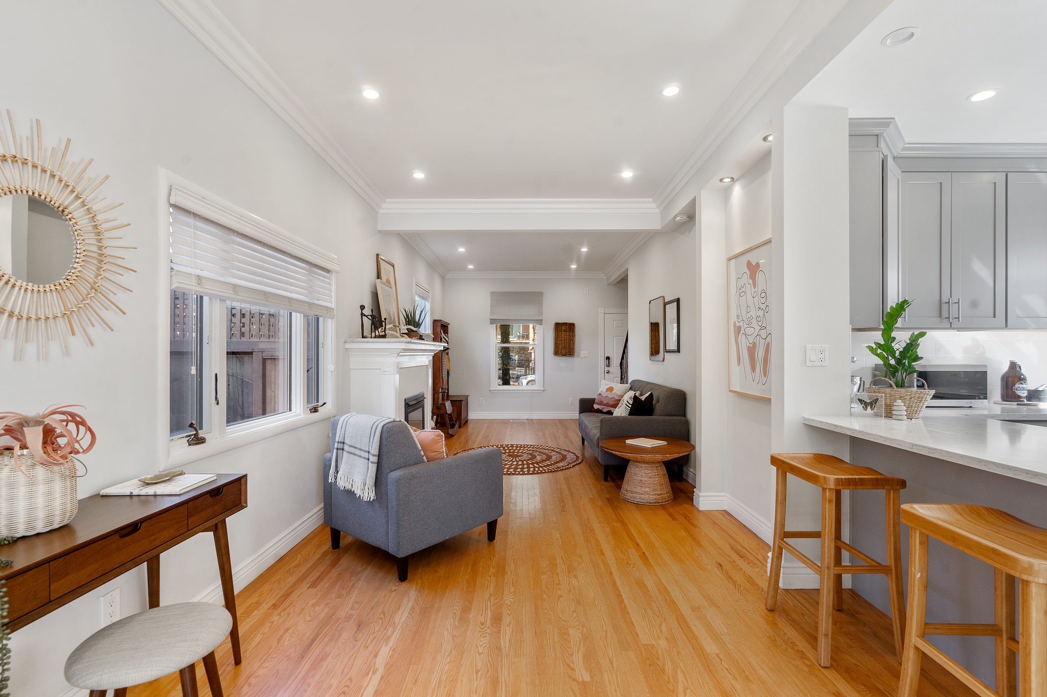 White oak hardwood flooring throughout