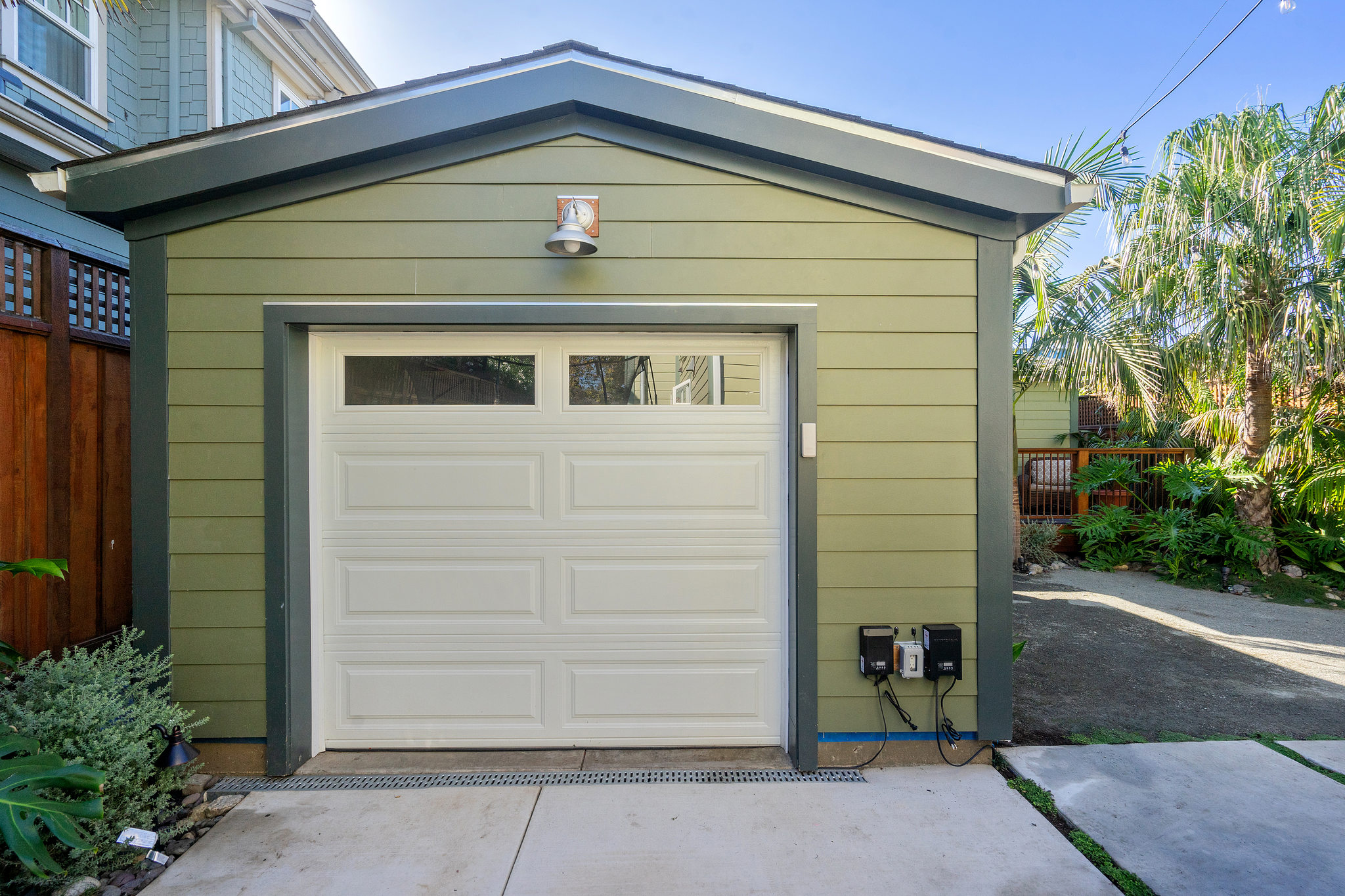 Landscaping and hardscape and detached garage: