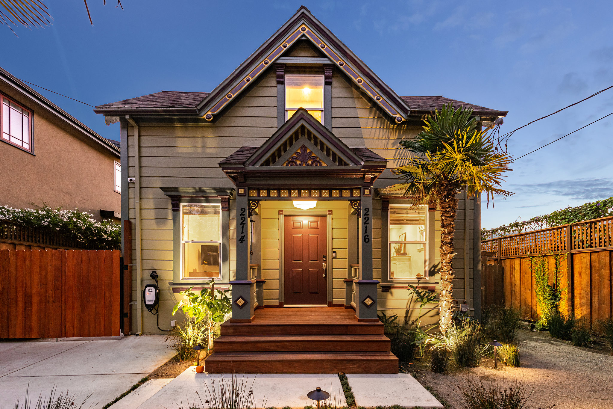 Victorian Painted Lady Oasis in Berkeley features 7 bedrooms, 4 bathrooms, includes a modern permitted 2 bedroom 1 bath ADU and an amazing lush tropical garden. Soaring ceilings, open floor plan, bathed in natural sunlight, modern updates and details, oakwood floors throughout, LED lighting. A perfect gathering place to celebrate with family and friends. Eat in kitchen features new cabs, quartz counters. Remodeled bathrooms with the latest in lighting and materials. Master bedroom suite with a Juliet balcony. Featured 2/1 ADU includes architectural details, vaulted beam ceiling, wood plank ceilings, hardwood floors, air conditioning plus. A Paradise found in this landscape architect designed award winning tropical front and rear garden with accent lighting. Detached one car for storage or bonus room, includes sliding patio door. EV charging outlet and Security Cams.
