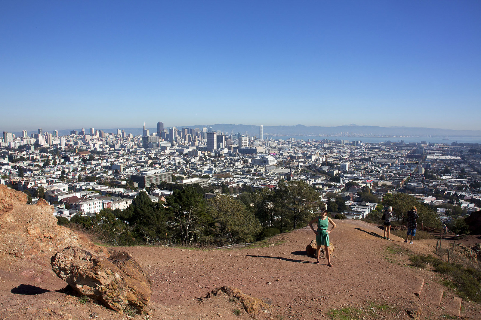 The sunny Second Bedroom boasts wonderful views of Corona Heights and Eureka Valley, backyard outlook, hardwood floors and a closet.
