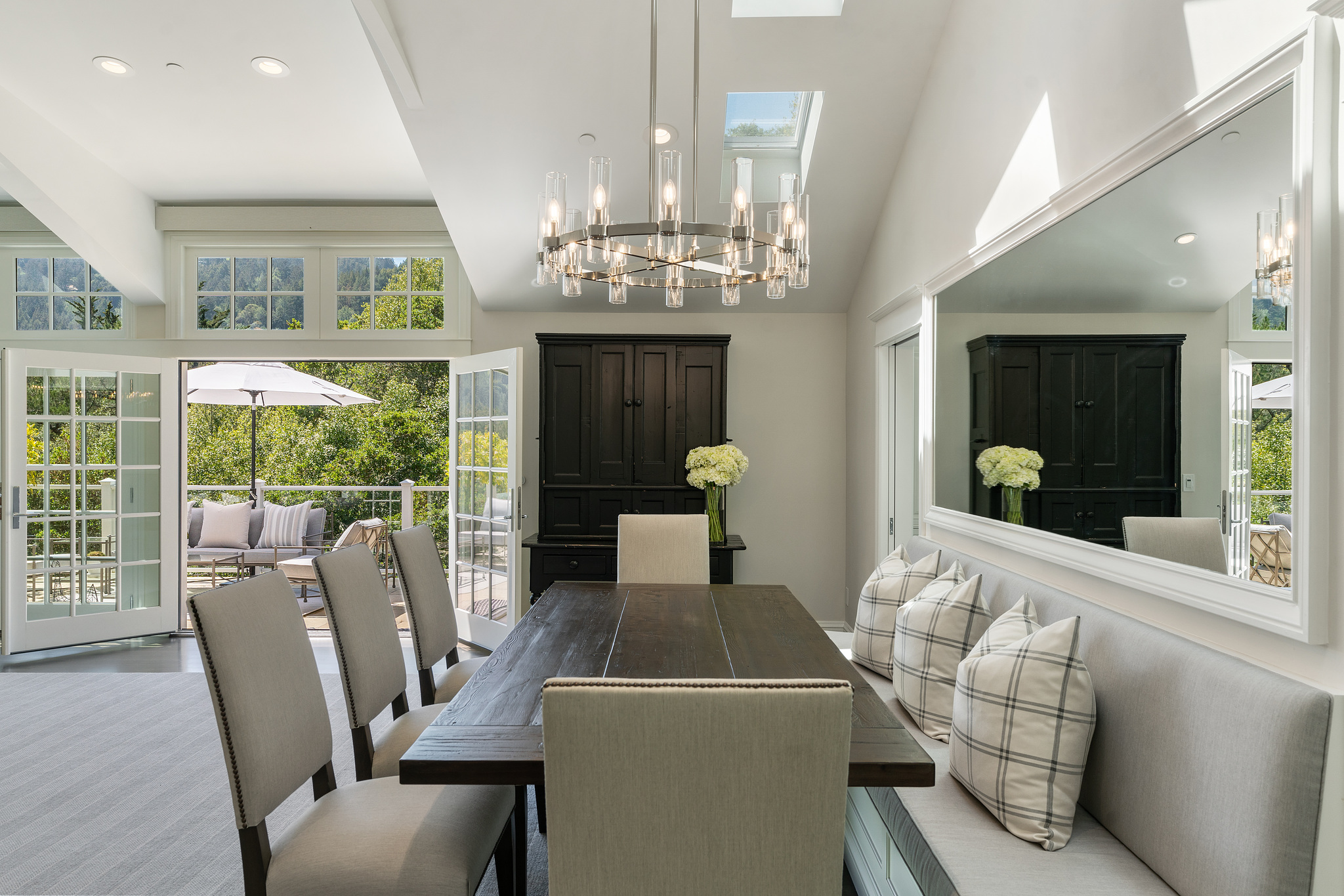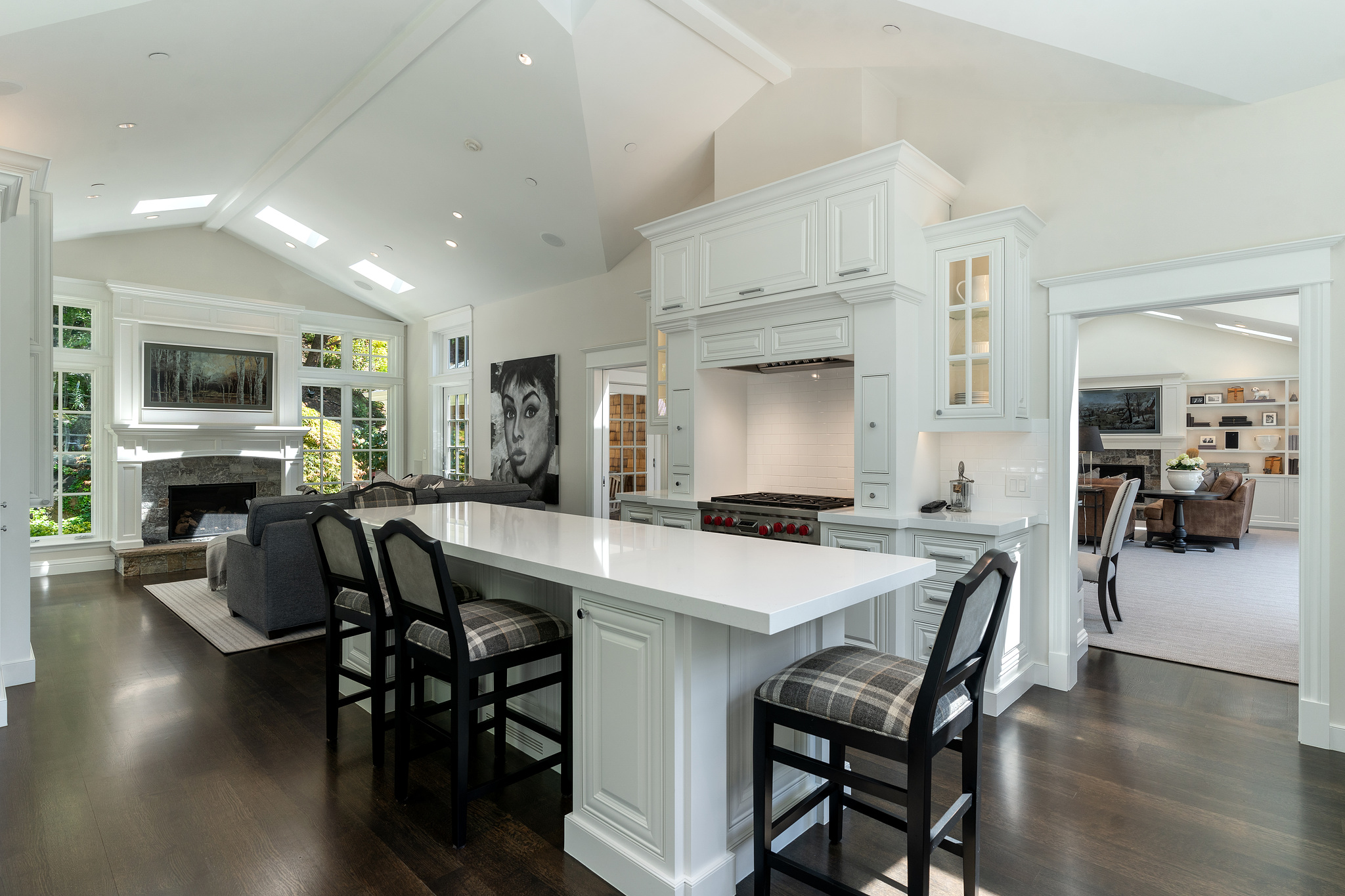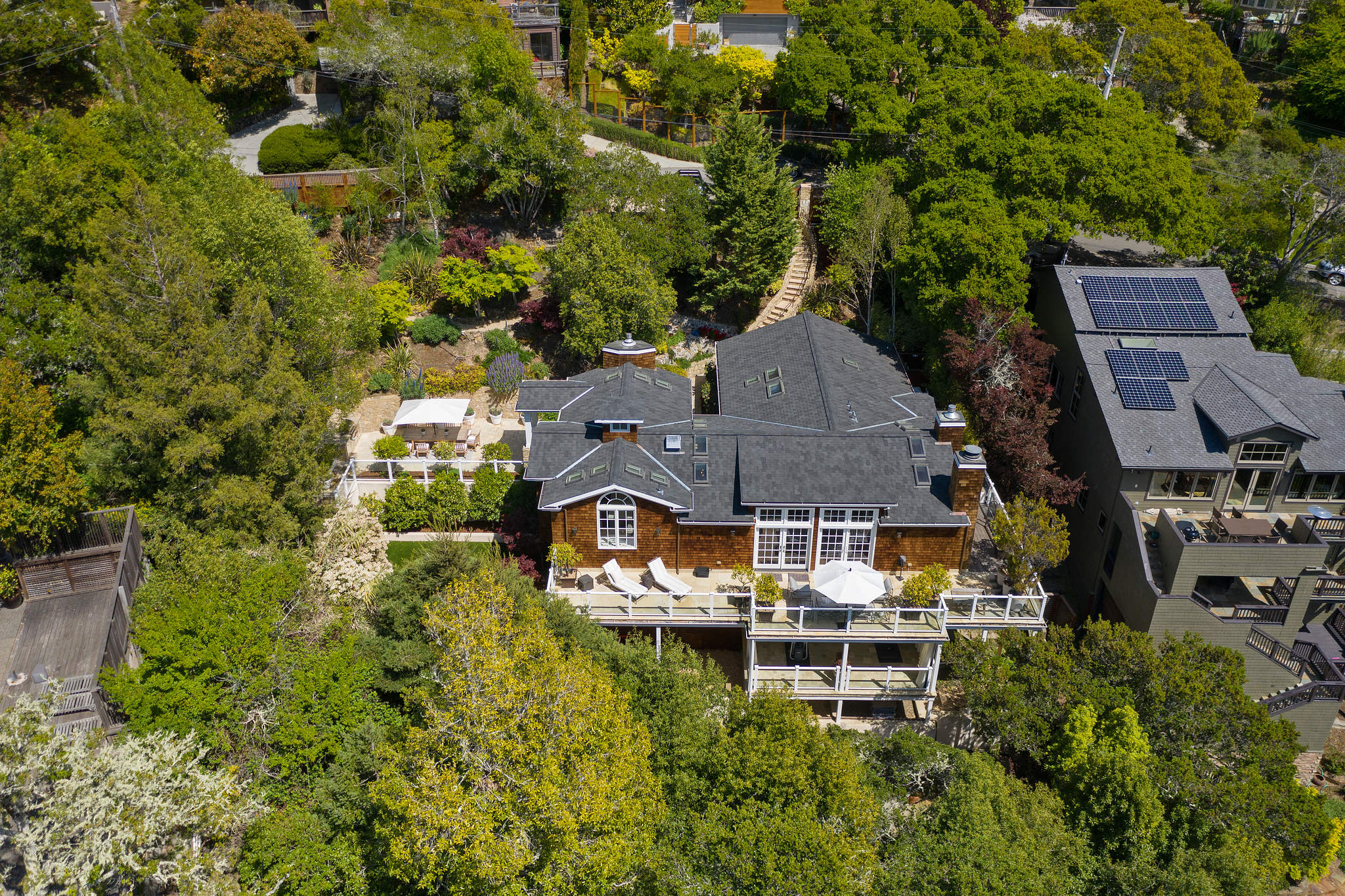 Quintessential Mill Valley home close to downtown and all the sought-after amenities that Mill Valley has to offer. This traditional styled home has been meticulously renovated with the finest of finishes and attention to detail to showcase the floorplan and verdant setting. The front porch invites you into the home and draws you to the floor to ceiling windows that frame the verdant surroundings. ;The oversized living room with Montana Glacier Creek hand cut stone fireplace, cathedral ceilings and French doors to the deck and views. The open floor plan dining room has a bench seating on one side, a butler’s pantry to the side, and access to the yard. ;;The remodeled chef’s kitchen with Wolf stove and oven, Subzero refrigerator, Cambria quartz counters, a large island, a bench area to sit, and a coffee /expresso station. ;The family room is framed by a Glacier Creek stone fireplace opening to the garden and stone patio with an outdoor kitchen featuring Wolf and Subzero appliances and the same Glacier Creek stone counter for the indoor-outdoor lifestyle. ;Additionally, there are 2 bedrooms and a full bath on this level, one bedroom is currently being used as an office. A visitor’s half bath completes this floor.