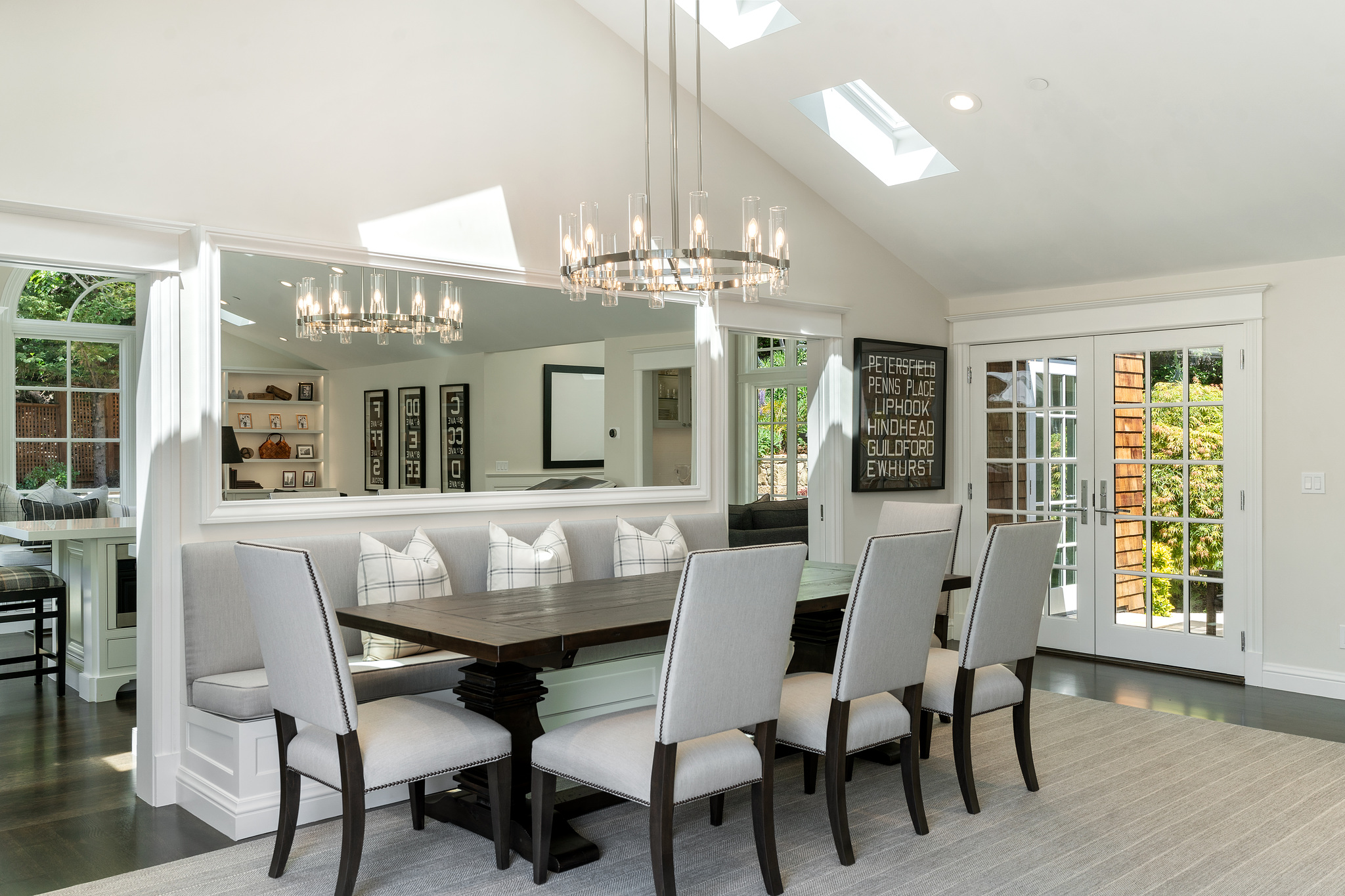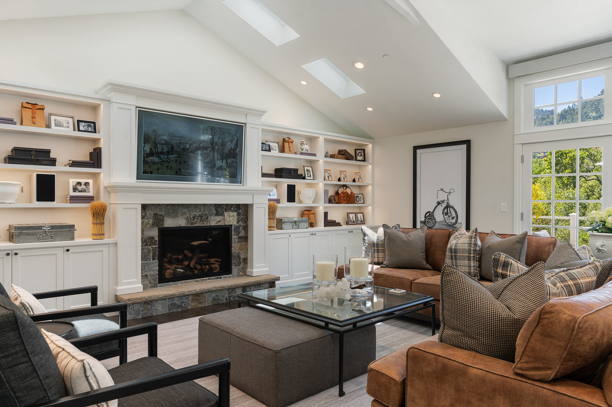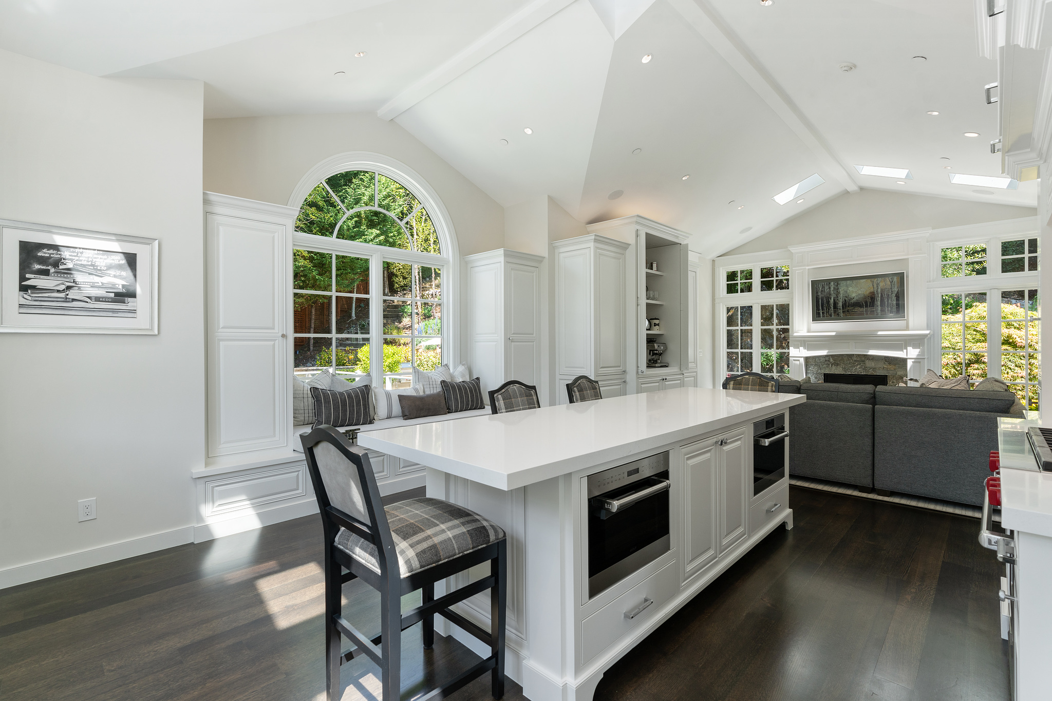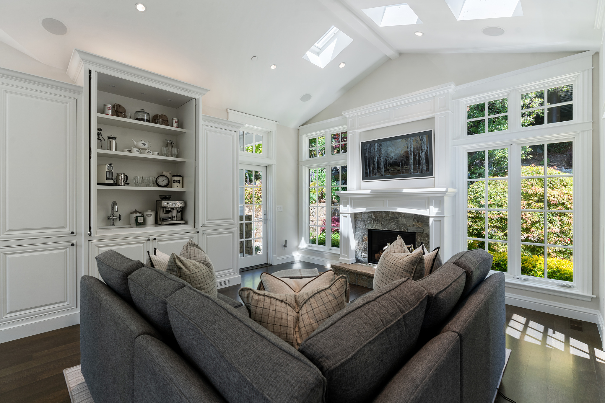 Quintessential Mill Valley home close to downtown and all the sought-after amenities that Mill Valley has to offer. This traditional styled home has been meticulously renovated with the finest of finishes and attention to detail to showcase the floorplan and verdant setting. The front porch invites you into the home and draws you to the floor to ceiling windows that frame the verdant surroundings. ;The oversized living room with Montana Glacier Creek hand cut stone fireplace, cathedral ceilings and French doors to the deck and views. The open floor plan dining room has a bench seating on one side, a butler’s pantry to the side, and access to the yard. ;;The remodeled chef’s kitchen with Wolf stove and oven, Subzero refrigerator, Cambria quartz counters, a large island, a bench area to sit, and a coffee /expresso station. ;The family room is framed by a Glacier Creek stone fireplace opening to the garden and stone patio with an outdoor kitchen featuring Wolf and Subzero appliances and the same Glacier Creek stone counter for the indoor-outdoor lifestyle. ;Additionally, there are 2 bedrooms and a full bath on this level, one bedroom is currently being used as an office. A visitor’s half bath completes this floor.