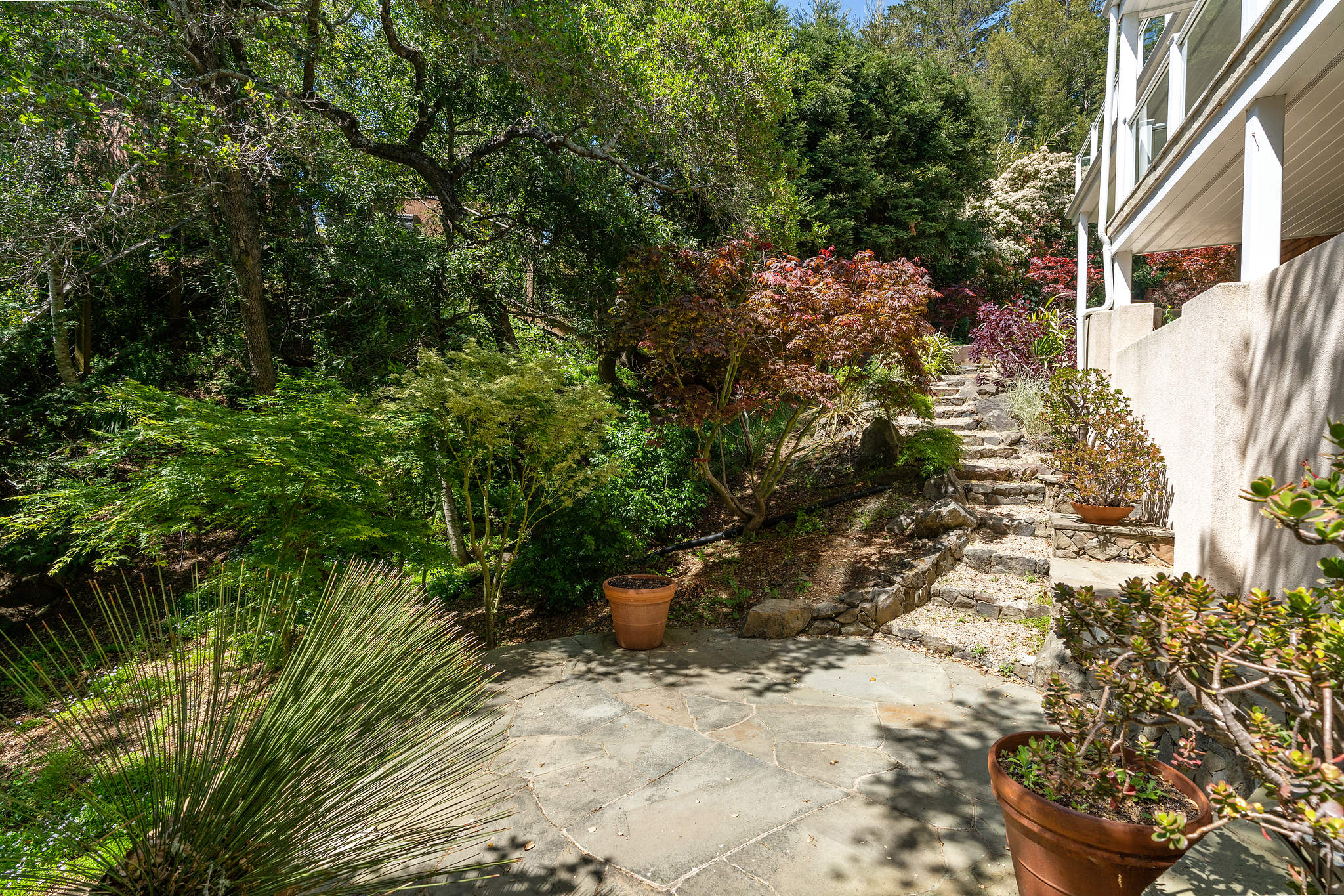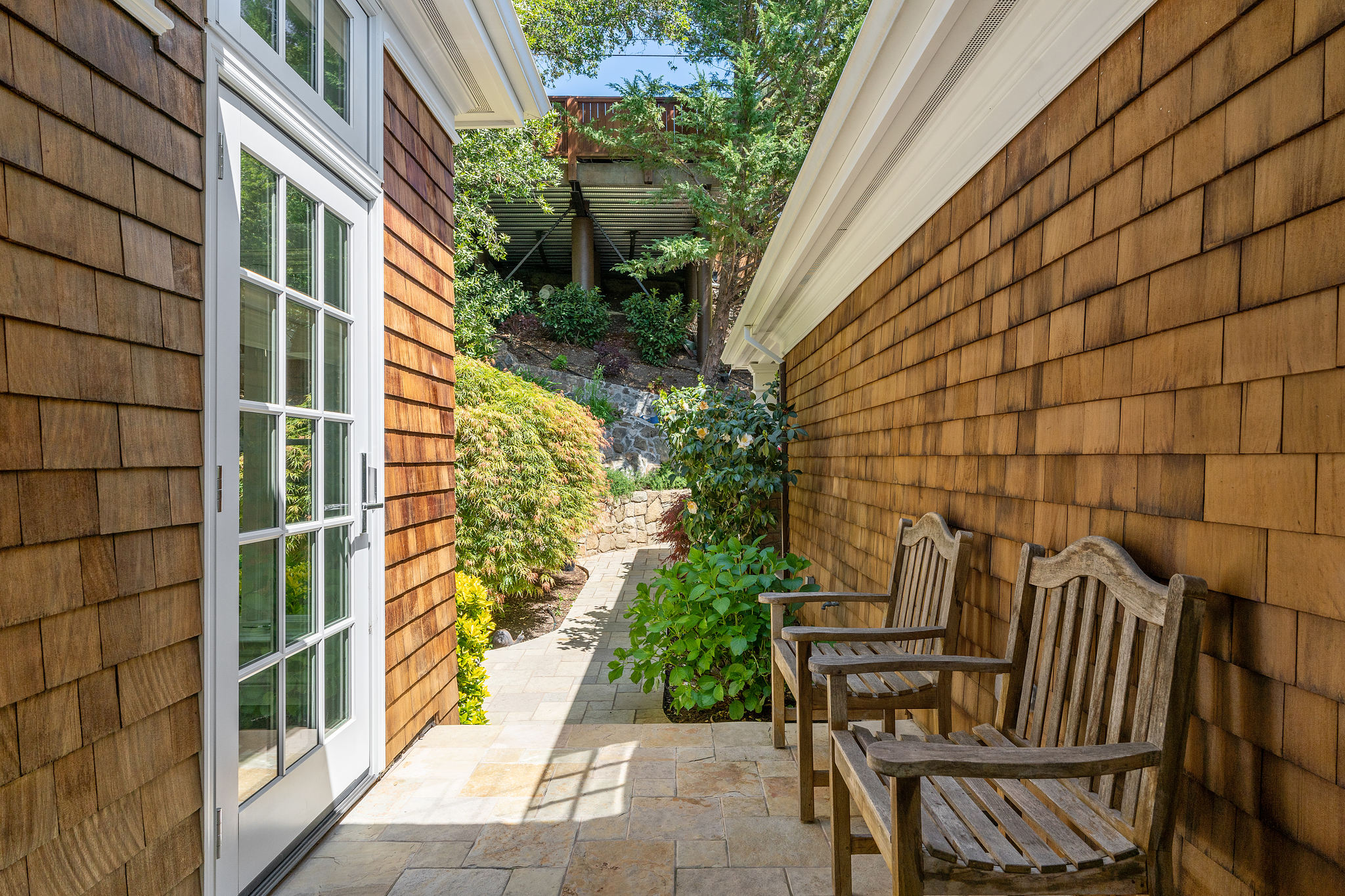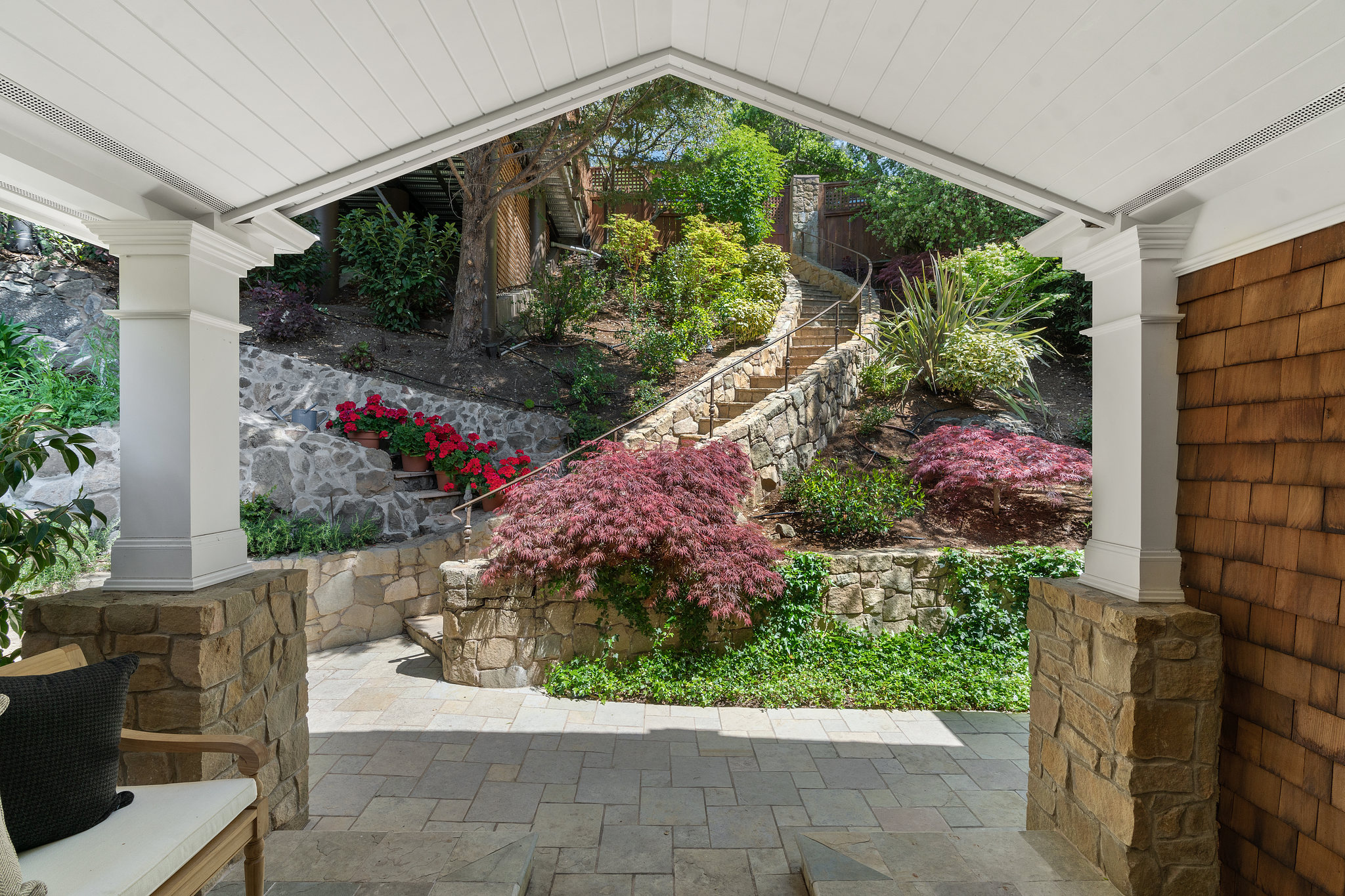 There is a 2-car reconstructed carport, and side stairs from the street.