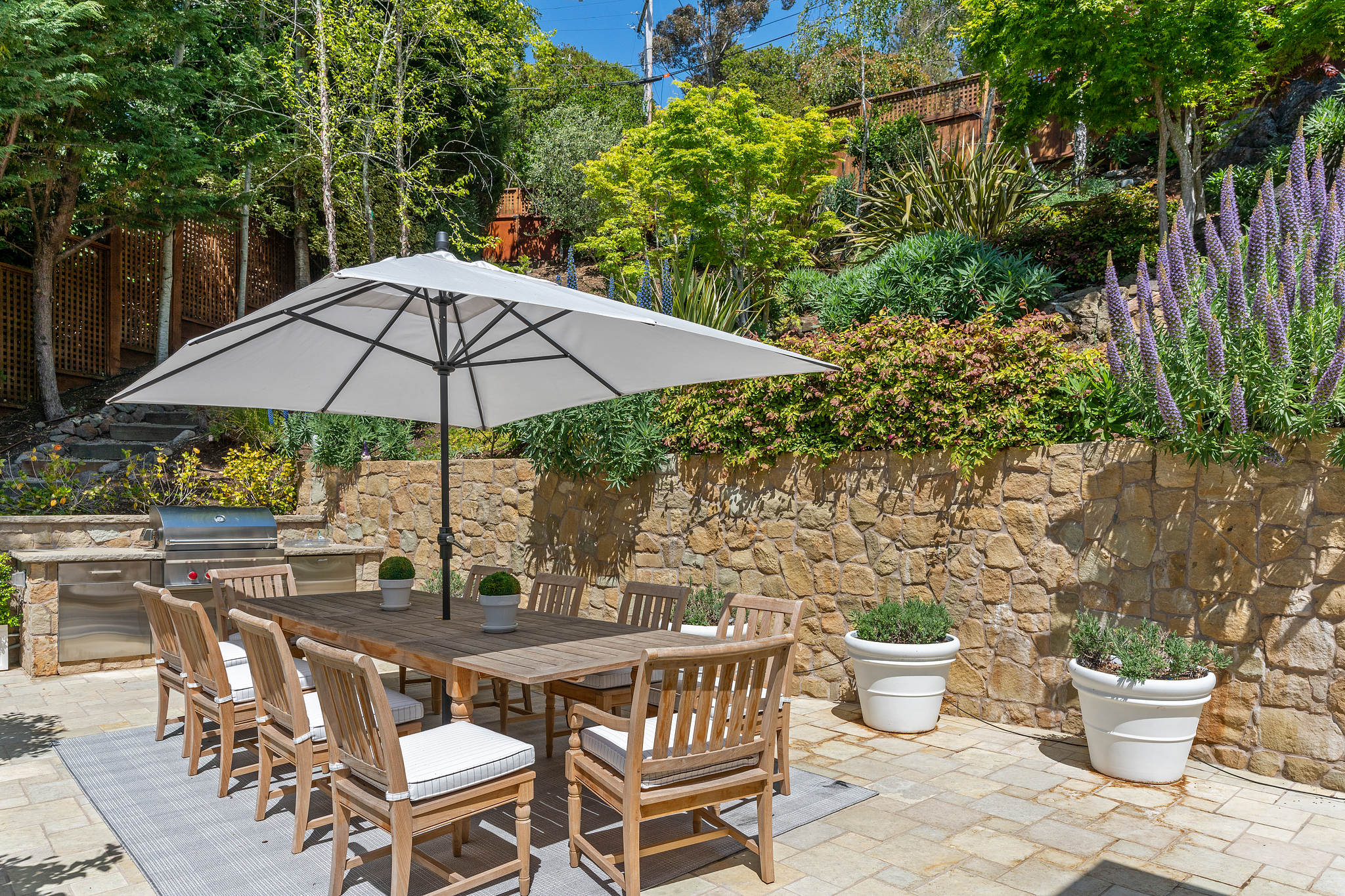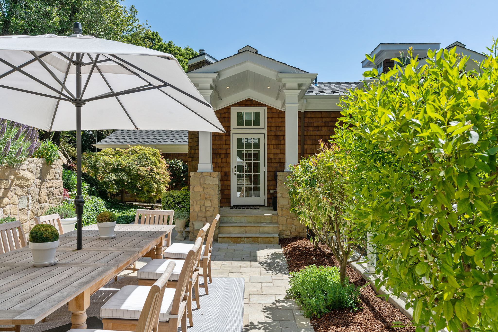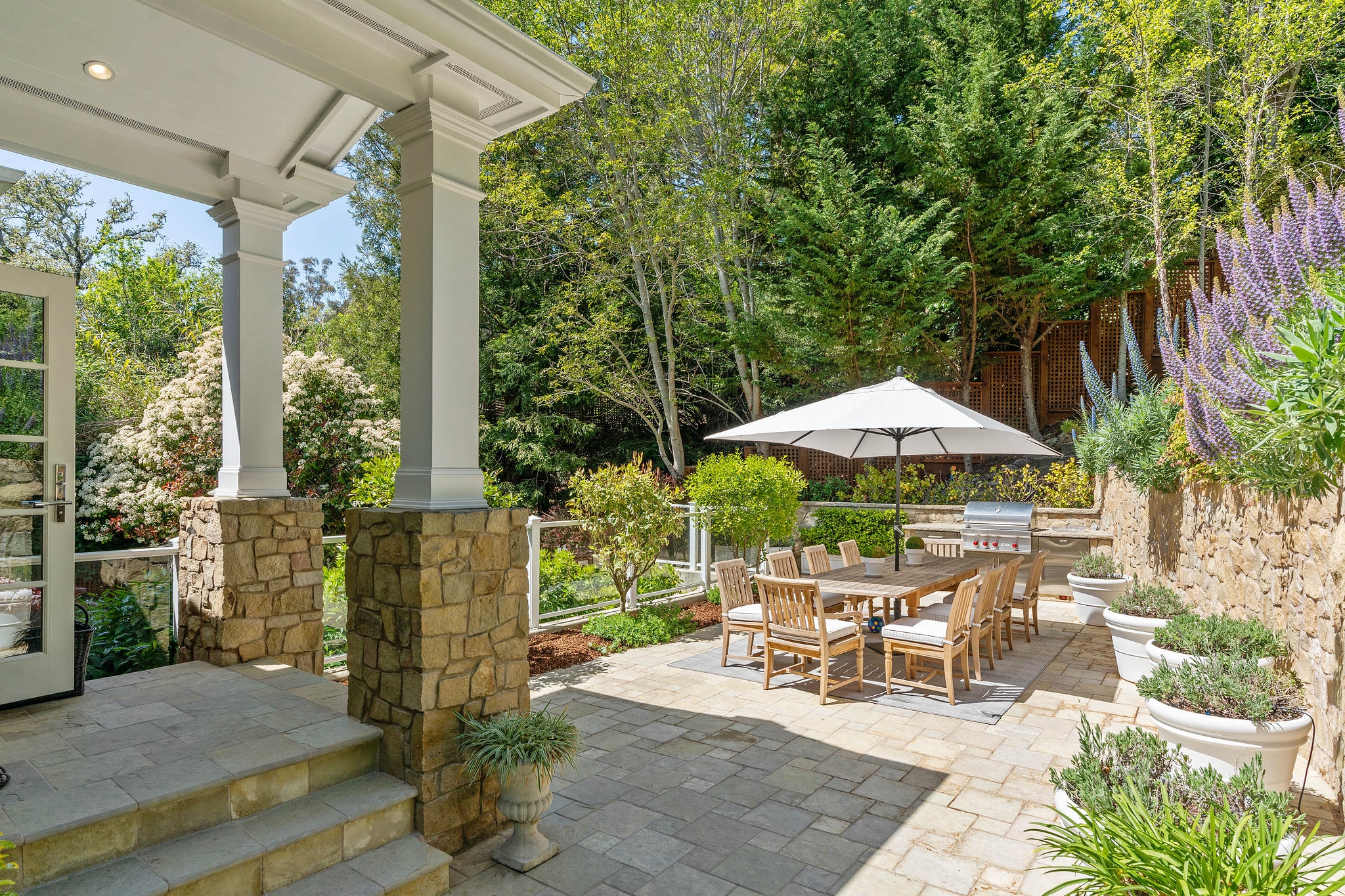 A lower Connecticut blue stone patio for quiet respite. The laundry room is in a walk-in closet. Additionally there is a wine room with metal storage holders.