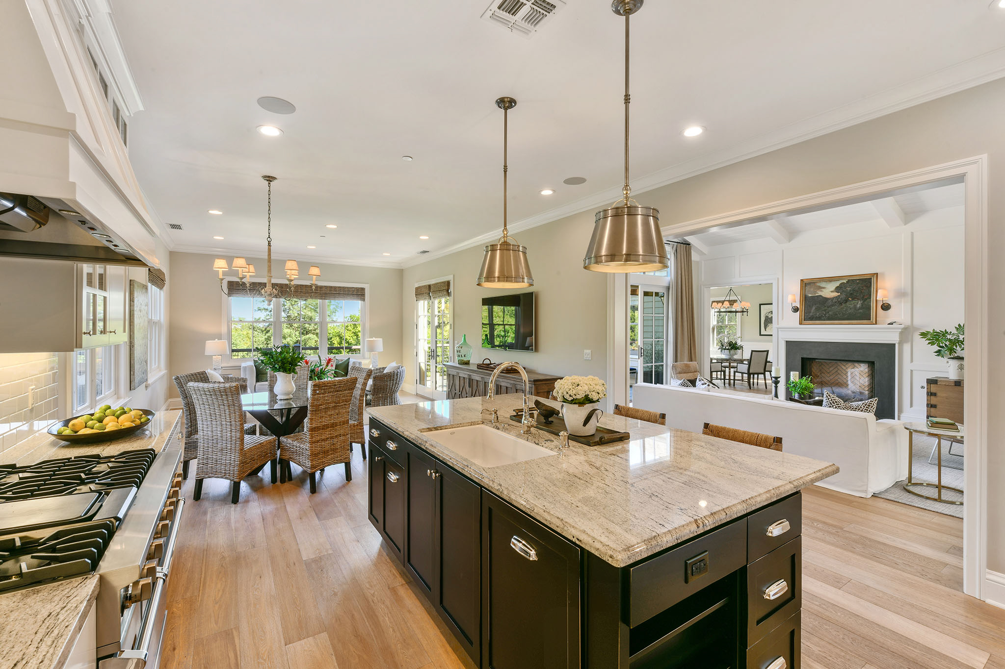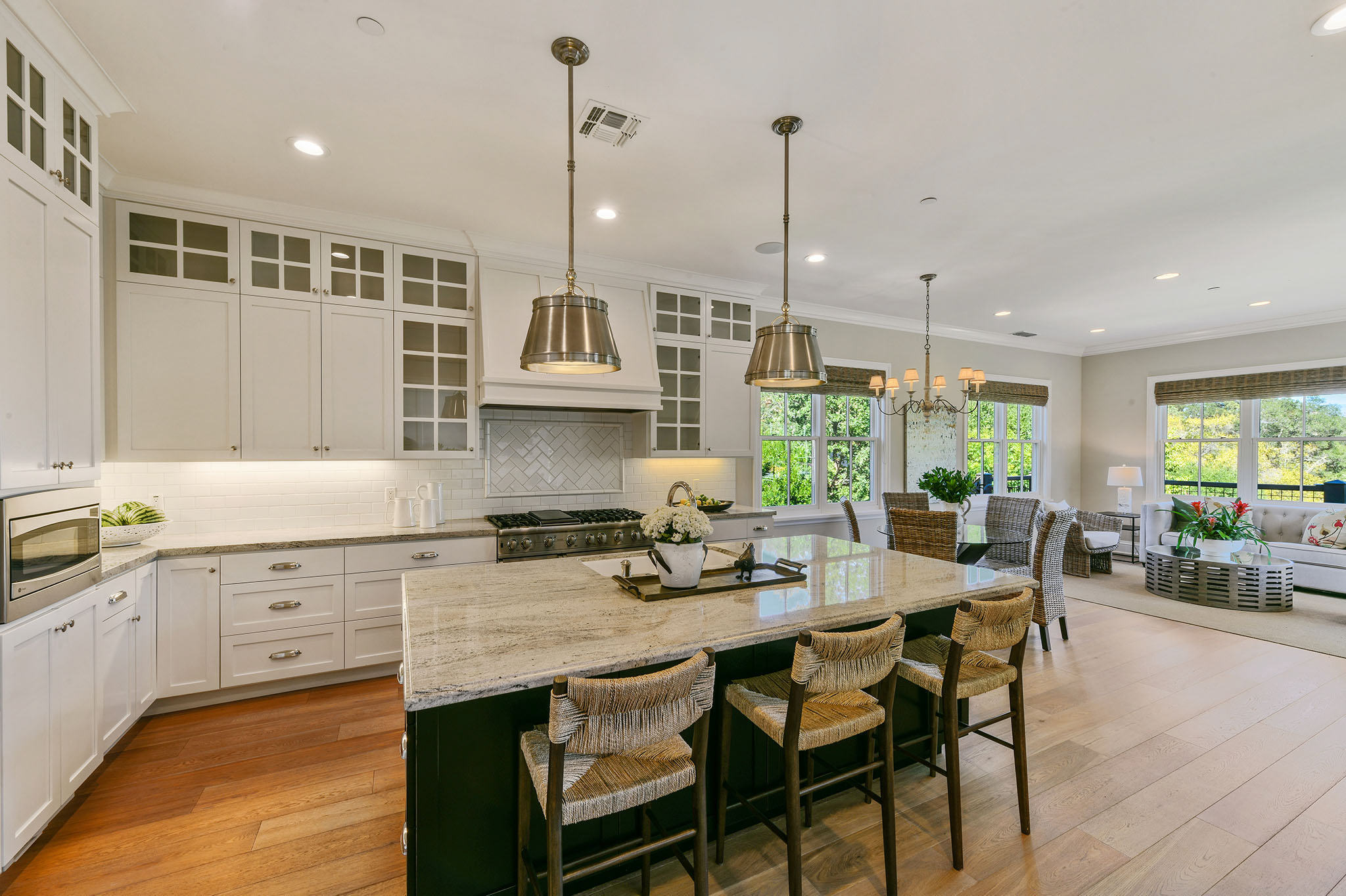 The open and light-filled floor plan embraces nature through every window and door. The beautiful white washed oak flooring presents the tone for a relaxed style amongst the fabulous white millwork, high ceilings, soothing designer wall colors and highest quality finishes.;