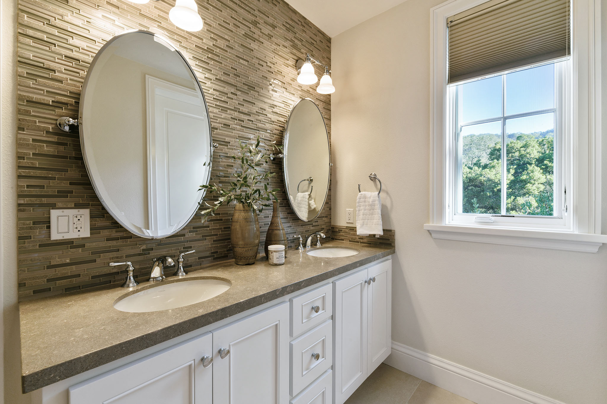 - Chrome Kohler plumbing futures in secondary baths;