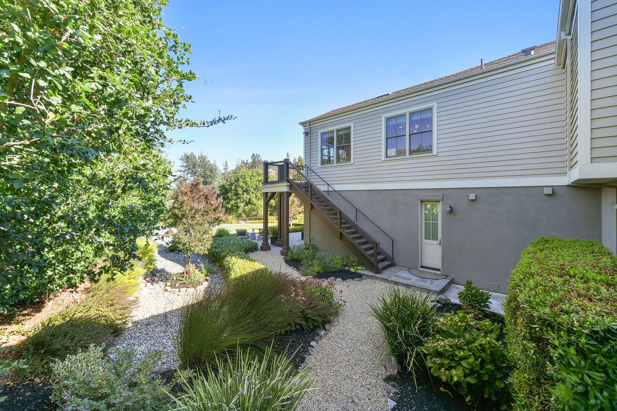 Also located on the Entry level is the primary suite with an elegant oversized bathroom and grand closet featuring a stackable washer/dryer. The three car garage with entrance through the mud room contains a built-in bench and cabinetry and access to the veggie gardens behind. Read or relax in the cozy library with custom built-in located near the primary suite. The main floor also boasts a guest suite with a walk-in closet and full bath.;