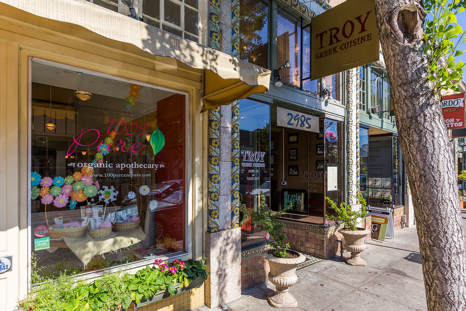 Rockridge offers an easy commute into San Francisco via the Bay Area Rapid Transit (BART) station, as well as access to the University of California, Berkeley Campus. The 100-year-old, four-acre campus of the California College of Art and Crafts is nearby. Food-and-drink purveyors in Rockridge provide the best from around the world and local farms. Rockridge Market Hall, which takes its cue from the French Marché, offers numerous individual food and flower shops open to the sidewalk. Dozens of restaurants, cafes, and boutiques line bustling College Avenue, Rockridge's main drag. ; ;