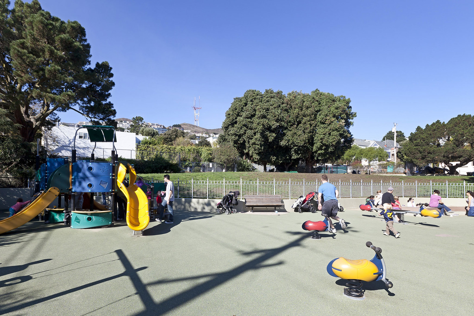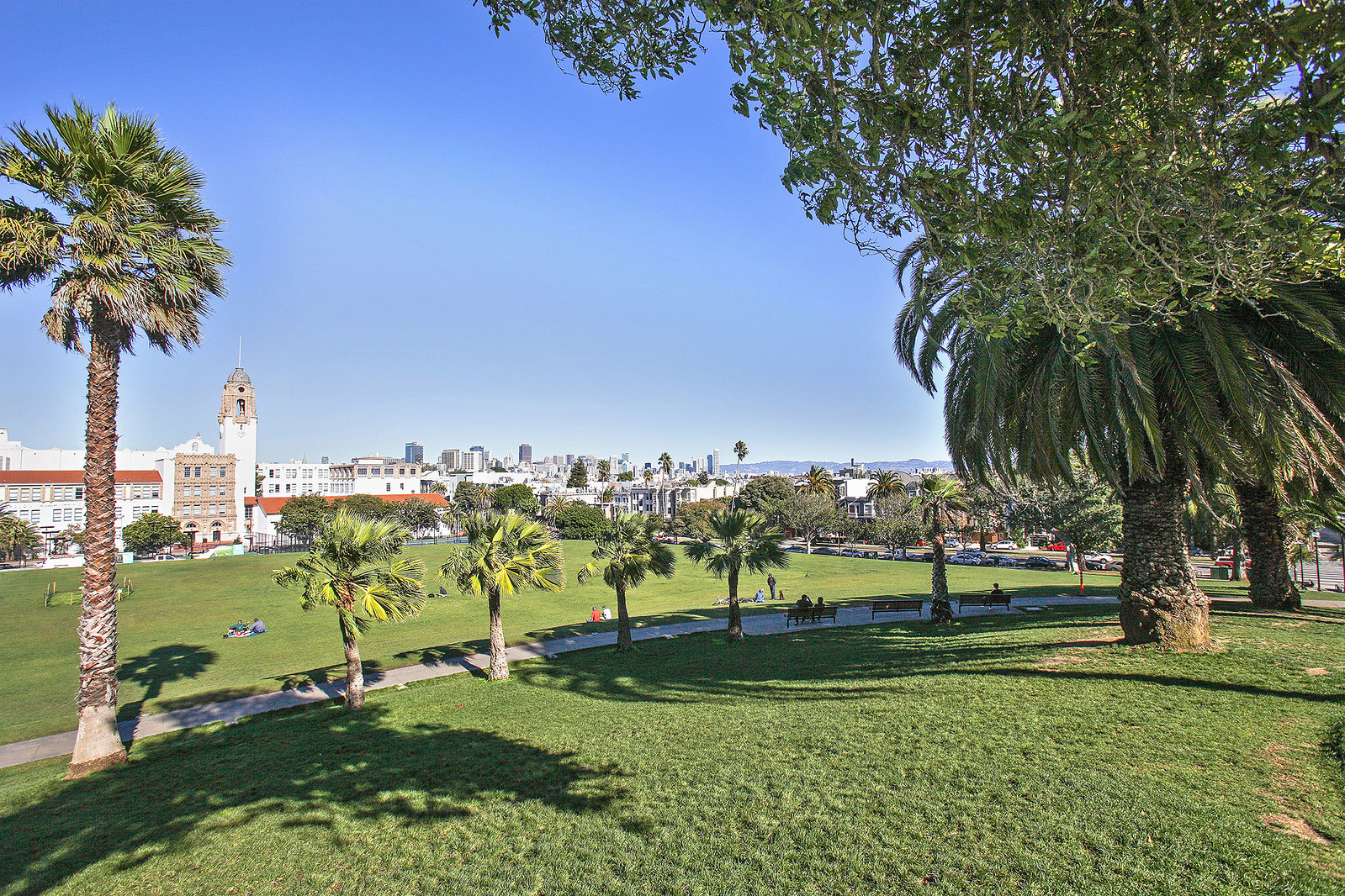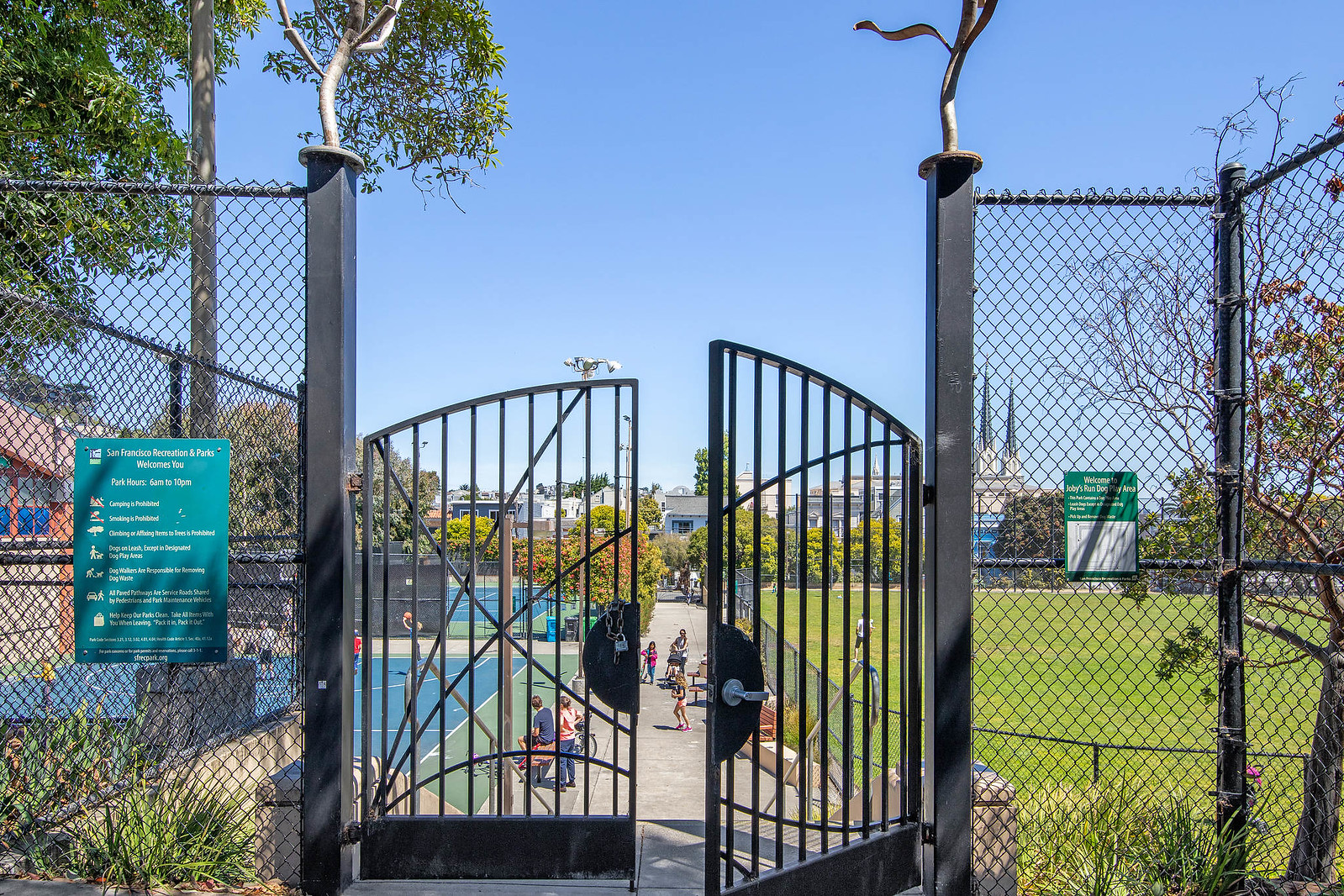 On warm days, locals head for Dolores Park, where they enjoy the sun and stunning views of the City & East Bay.; Families flock to the park for picnics, barbecues, and spontaneous games of soccer or tennis.