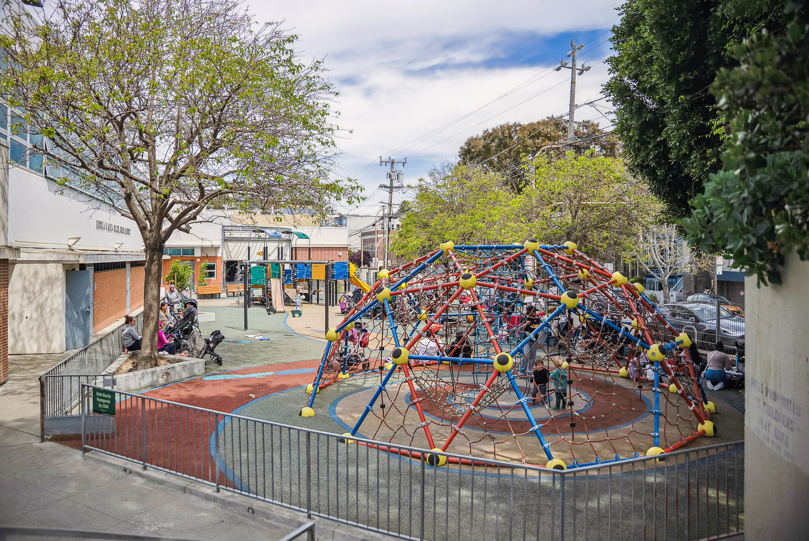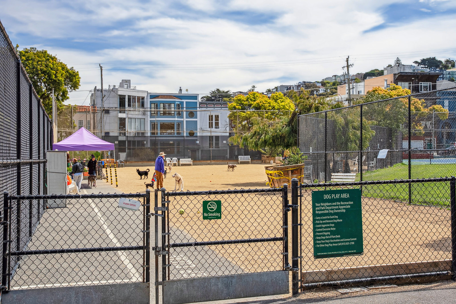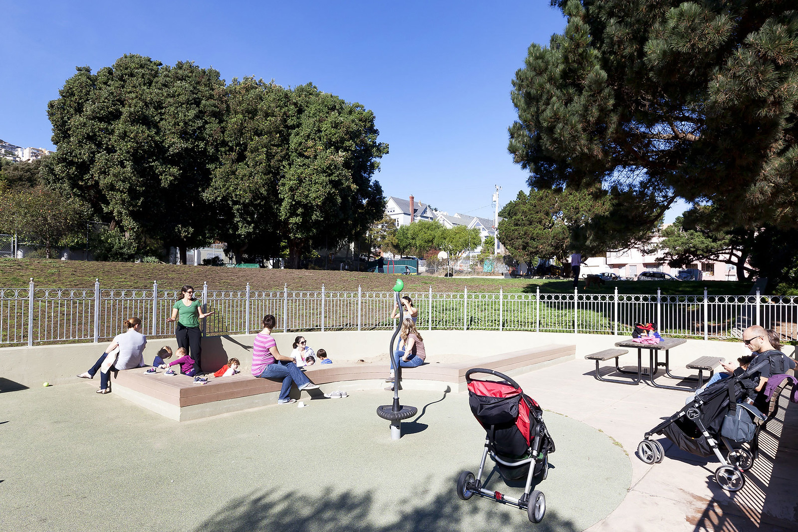 On warm days, locals head for Dolores Park, where they enjoy the sun and stunning views of the City & East Bay.; Families flock to the park for picnics, barbecues, and spontaneous games of soccer or tennis.