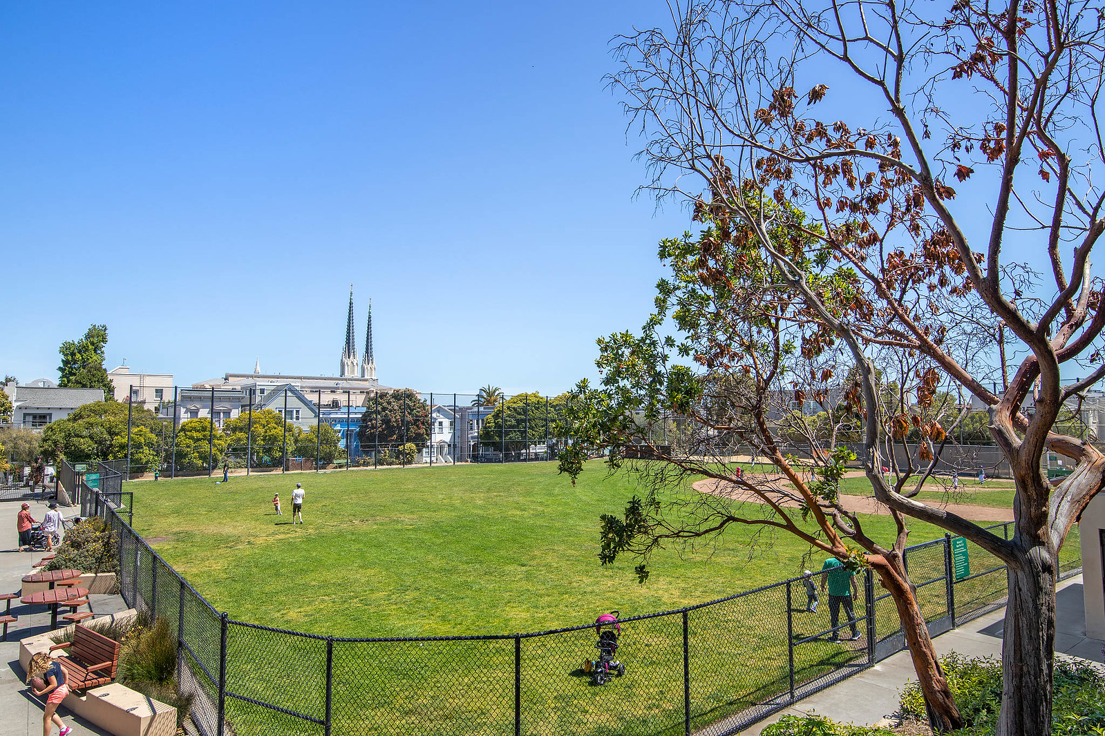 Mission Dolores Park hugs the eastern border of Dolores Heights, and is a popular gathering place for outdoor activities and festivals. The grassy lawns are ideal for afternoon picnics or kicking around a soccer ball. Amenities provided at Mission Dolores Park include tennis courts, basketball courts, a playground, and two off-leash dog areas. The park also hosts a variety of events including Film Nights and live performances.