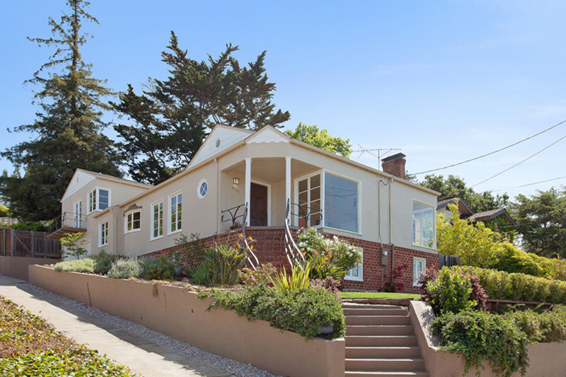 Captivating views of the San Francisco Bay and Golden Gate Bridge create an enchanting setting for this beautiful 1938 Monterey Revival in historic Upper Oakmore. A gracious layout encompasses 4 bedrooms, 2.5 baths, living room and family room with views, remodeled kitchen and baths, a courtyard patio, and spacious front and backyards.