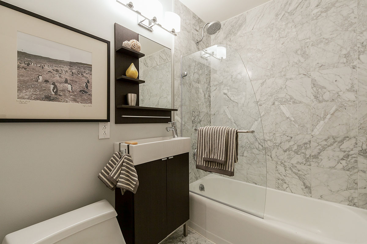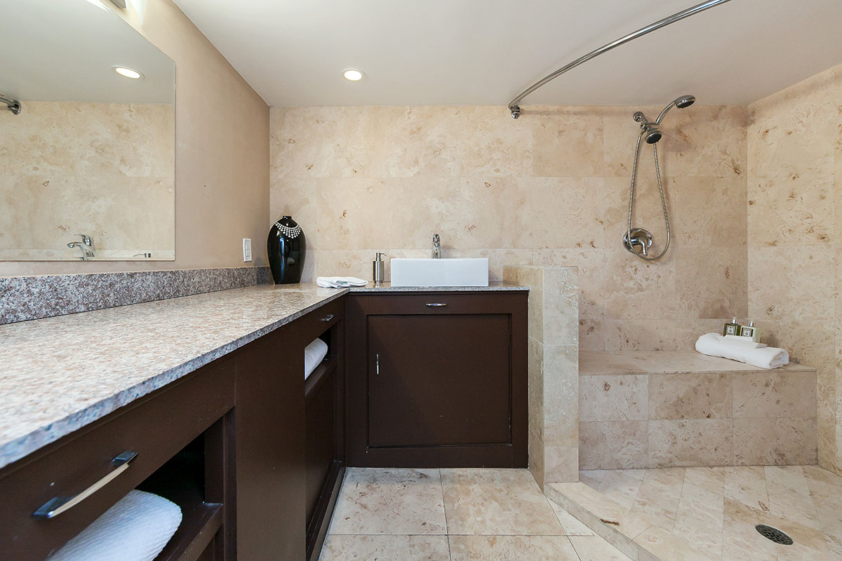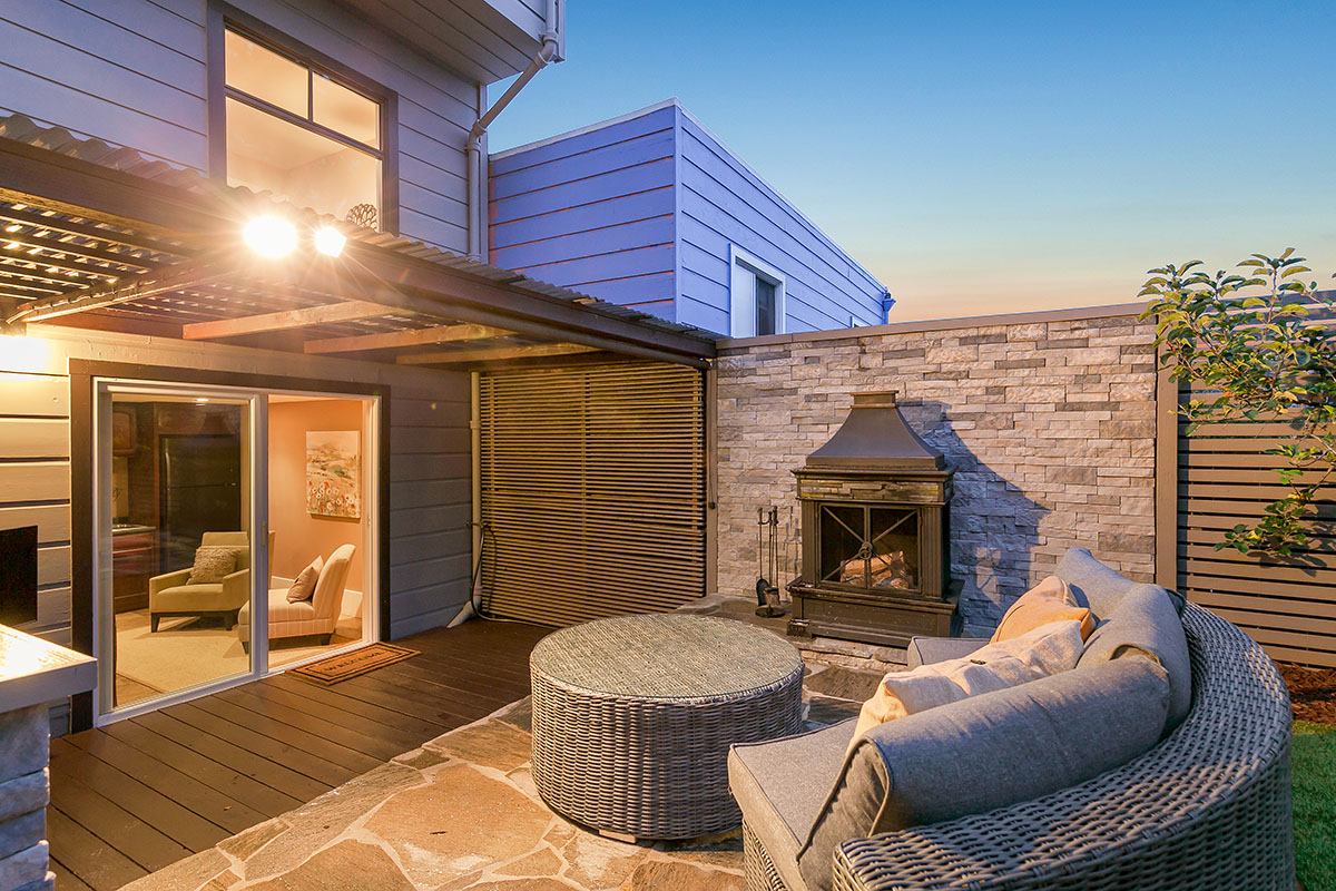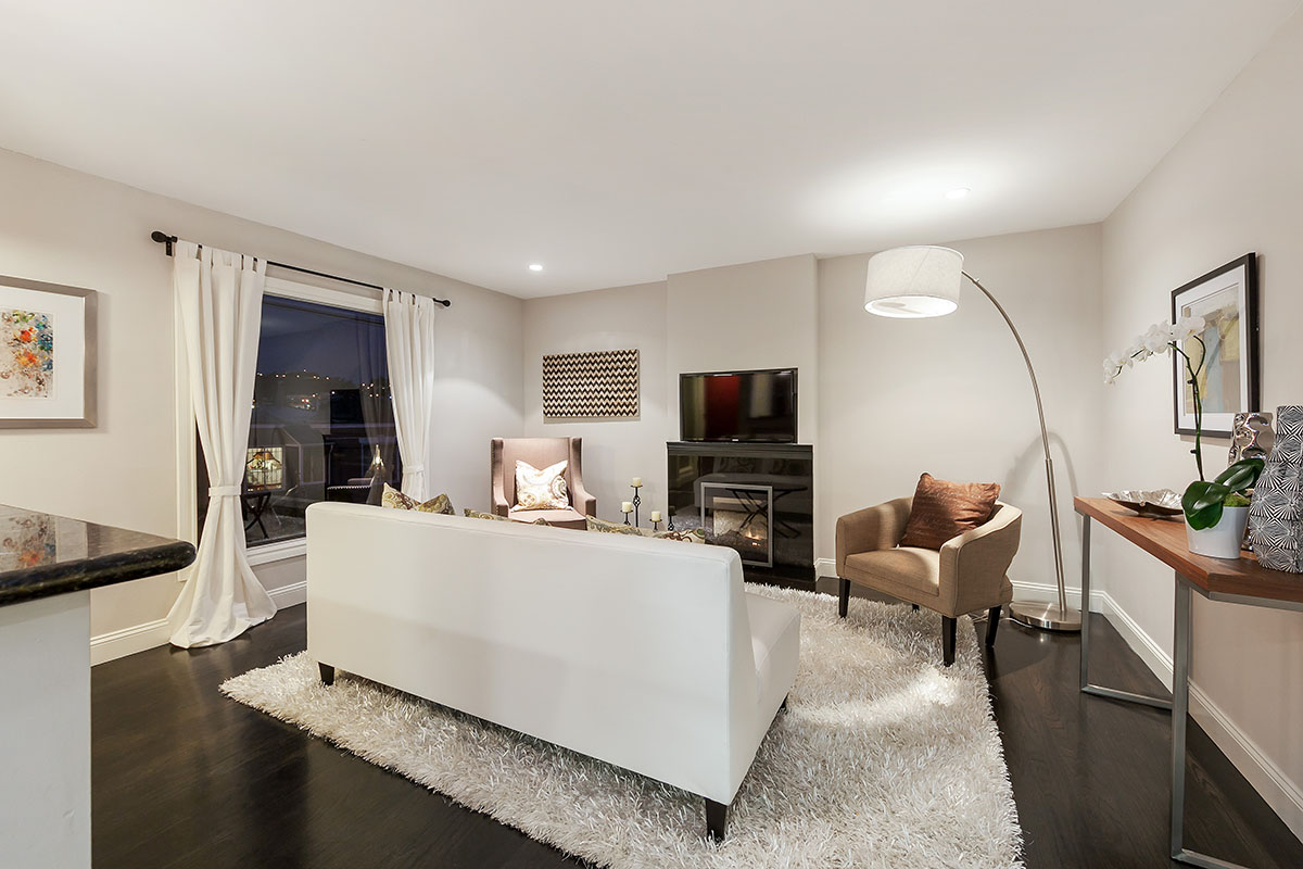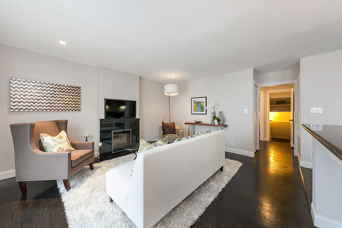 The open and flowing living area, dining area, and kitchen are bright and inviting offering the ultimate place to unwind and entertain. The luxurious state-of-the-art kitchen is well-appointed with sleek granite counters, stone tile flooring, professional stainless steel appliances, and rich wooden cabinetry. Casual countertop stool seating and the fresh, mod-style backsplash - make for a near perfect spot to pull-up with your morning cup-of-brew and MacBook Air to read the paper.;The open living room showcases a bright burning fireplace with a prominent granite surround. Completing the main living-level is a bedroom overlooking the rear garden and a full bath with a luxurious marble encased shower-over-tub and an attractive contemporary sink.