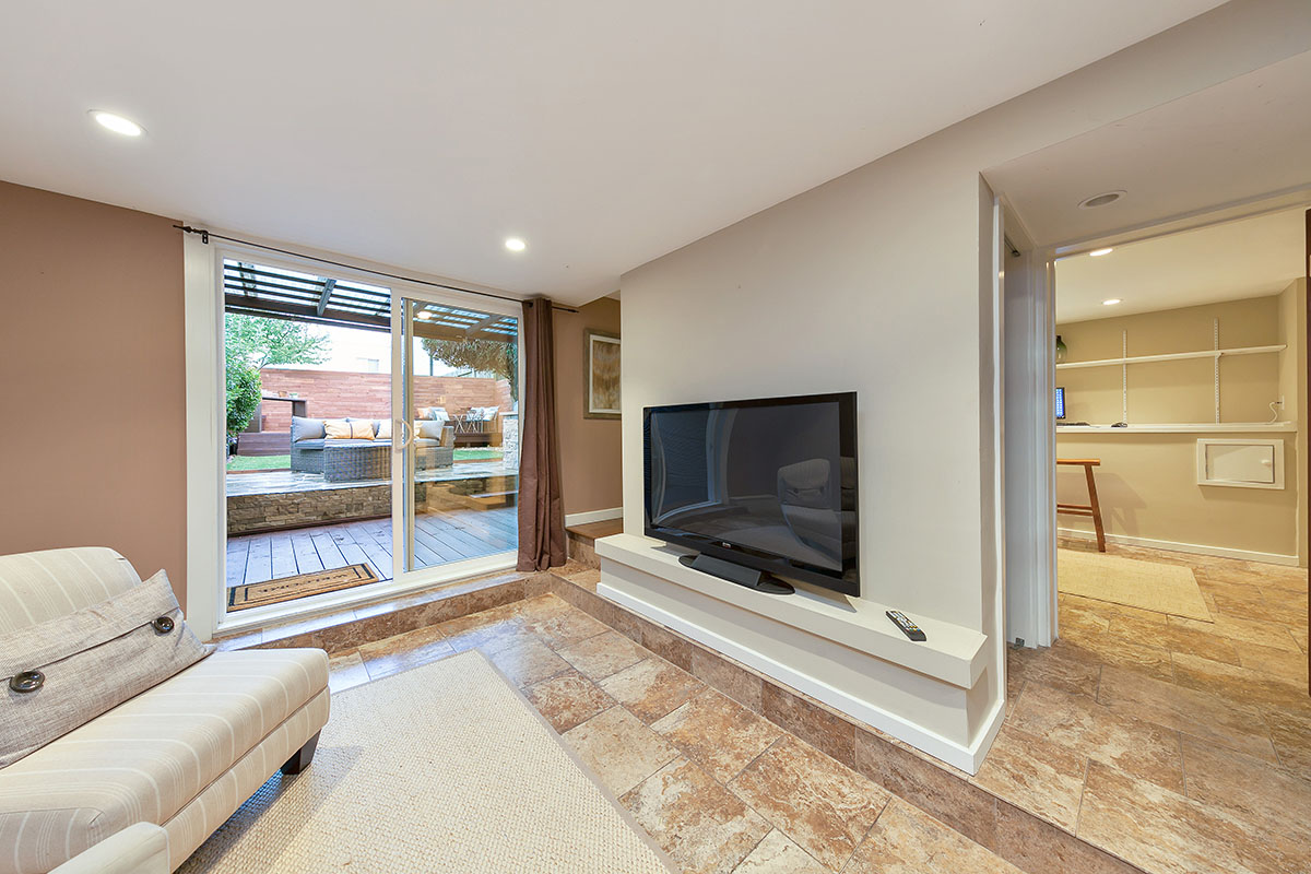 At the lower level;is a fully-remodeled bonus in-law unit including an open kitchen-living area, a deluxe full bath with beautiful Travertine stonework, and bedroom. This unit opens outside to the backyard amenities and entertaining area, hot tub, etc... A pristine attached single-car garage offers laundry and additional storage.